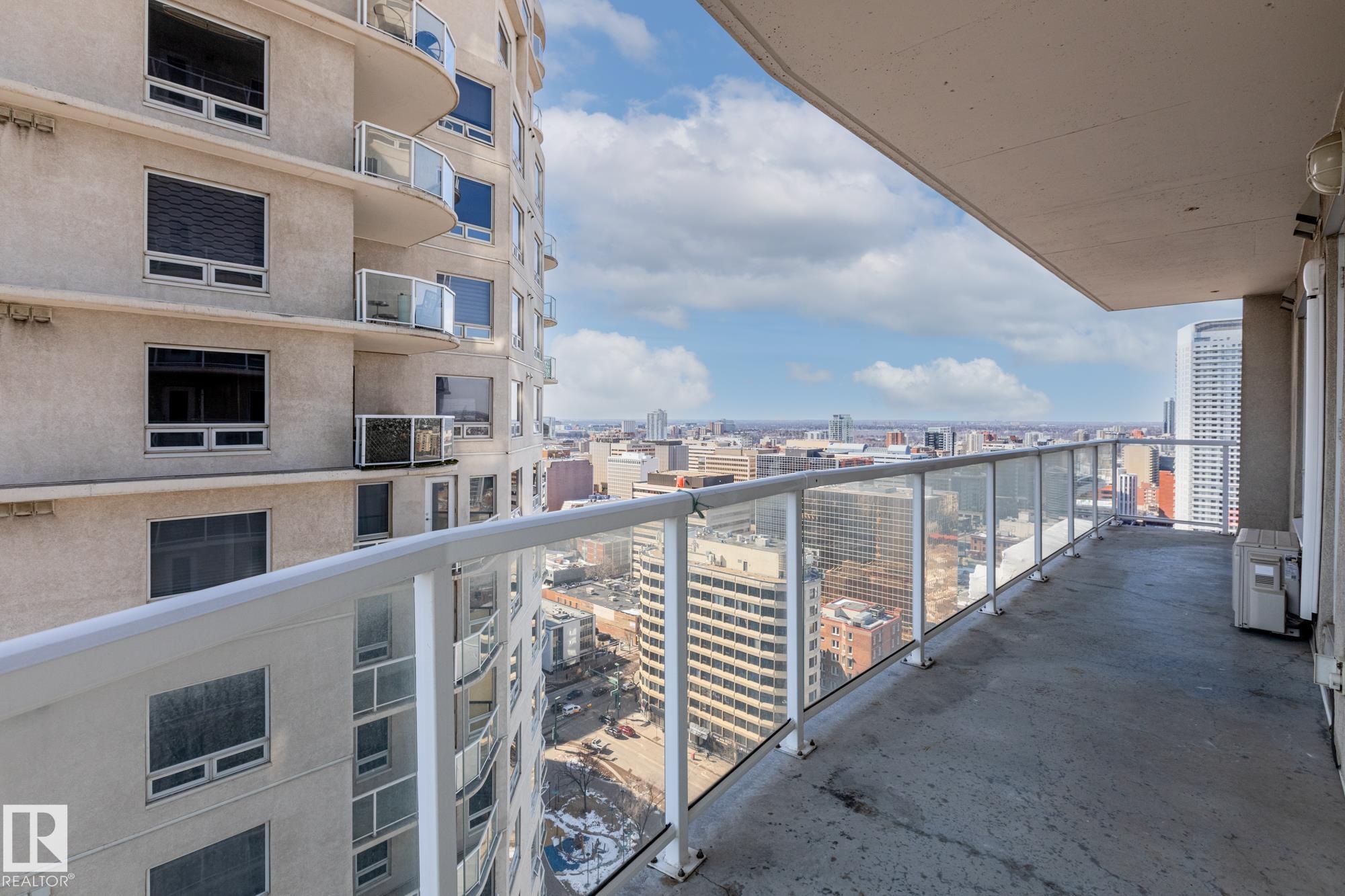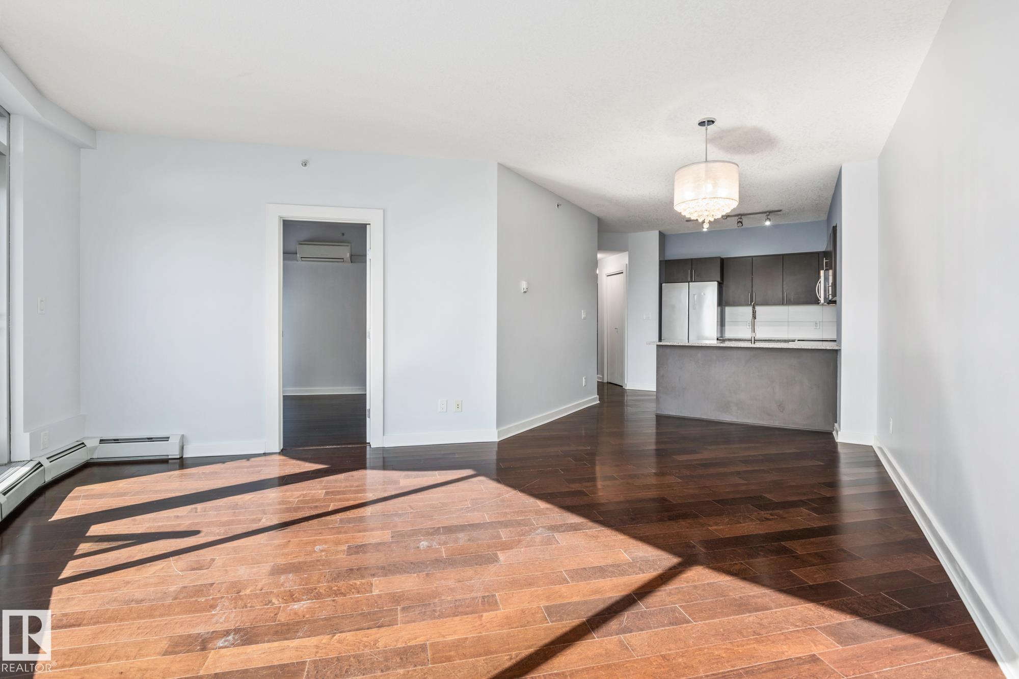 Experience luxury urban living in the heart of Edmonton’s vibrant 104 Street. This stunning south-facing condo in Icon II offers a sophisticated lifestyle with the farmers market, river valley trails, and top-tier dining right at your doorstep. Inside, gorgeous engineered hardwood floors span an open-concept layout, complemented by 9ft ceilings and floor-to-ceiling windows that bathe the home in natural light. The gourmet kitchen features modern cabinetry, granite countertops with an eat-in bar, and upgraded appliances. Retreat to the primary suite featuring built-in A/C, blackout blinds, and a walk-in closet with premium California Closet organizers. The spacious second bedroom is perfect for guests or a home office. Additional highlights include two full bathrooms, in-suite laundry, and a massive south-facing balcony with a gas hookup. Complete with secured titled underground and heated parking with visitor stalls, this premier residence offers breathtaking city views and unmatched convenience.