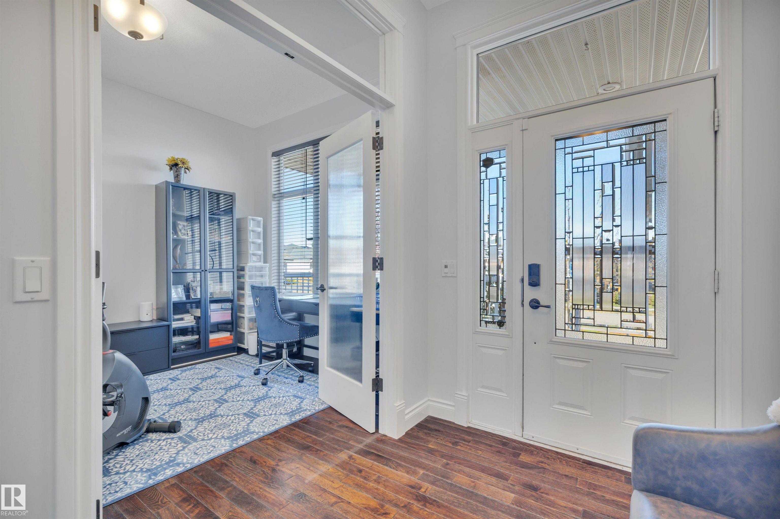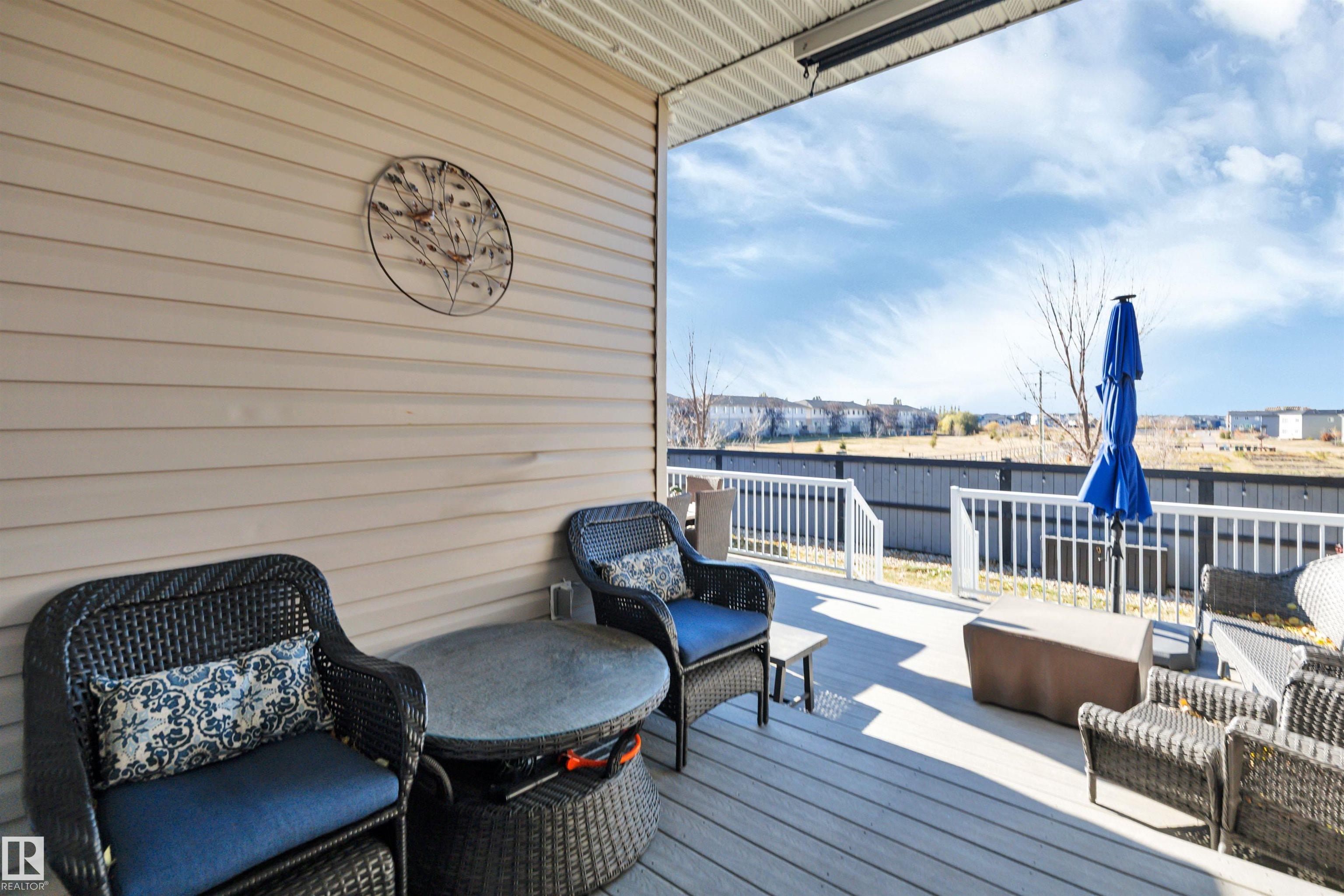 Welcome to your elevated Home2Love bungalow in Leduc—designed for comfort, connection & effortless living. The bright open-concept main floor showcases 10’ ceilings, rich hardwood floors, A/C & an abundance of natural light. The chef-inspired kitchen features a massive granite island & flows seamlessly into the spacious living area—perfect for everyday living & entertaining. Escape to your king-sized primary retreat with a large walk-in closet & relaxing soaker tub. A private home office, second bedroom & full bath complete the main level. The fully finished basement with 9’ ceilings is built to impress—featuring a stunning wet bar, space for a pool table & the ultimate setup for movie nights, game days or hosting guests. Two generous bedrooms & another full bath included below. Step outside to your maintenance-free deck with no rear neighbours—ideal for BBQs, quiet mornings & evening sunsets. The oversized heated garage offers incredible space & includes a mobility lift for easy access.