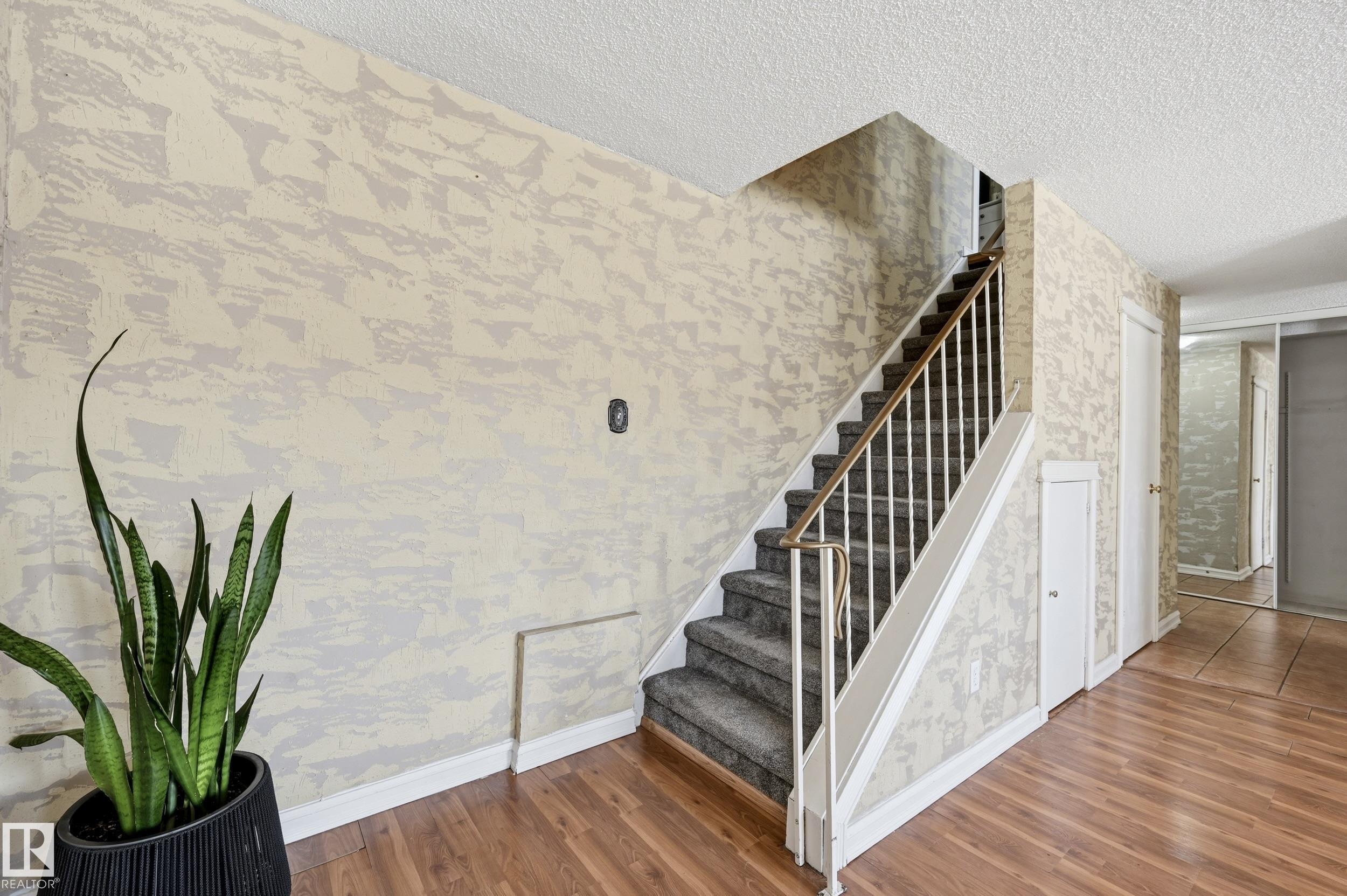 ** ATTENTION INVESTORS & FIRST TIME HOME BUYERS ** Why rent when you can own and build equity?! Updated and affordable, this stylish 2 storey home offers over 1248 sq ft of comfortable living space complete with 3 bedrooms PLUS DEN, 1.5 bath and IN-SUITE LAUNDRY. Step inside to a bright and expansive living room that creates a warm, welcoming atmosphere. Spacious kitchen features white cabinetry, NEWER stainless steel appliances and ample room for a dining table, just perfect for family meals and entertaining! Primary bedroom with large walk-in closet & laundry, two additional bedrooms, a full bathroom, and a versatile den/storage room complete the upper level. Access your unit from either the fenced & private patio area or the main building, adding flexibility and ease to your daily routine. PRIME LOCATION, only minutes away from Costco, Manning Town Centre, schools, parks, Manning freeway & the Anthony Henday. Immediate possession available. ** vinyl replacement levy already paid by seller **