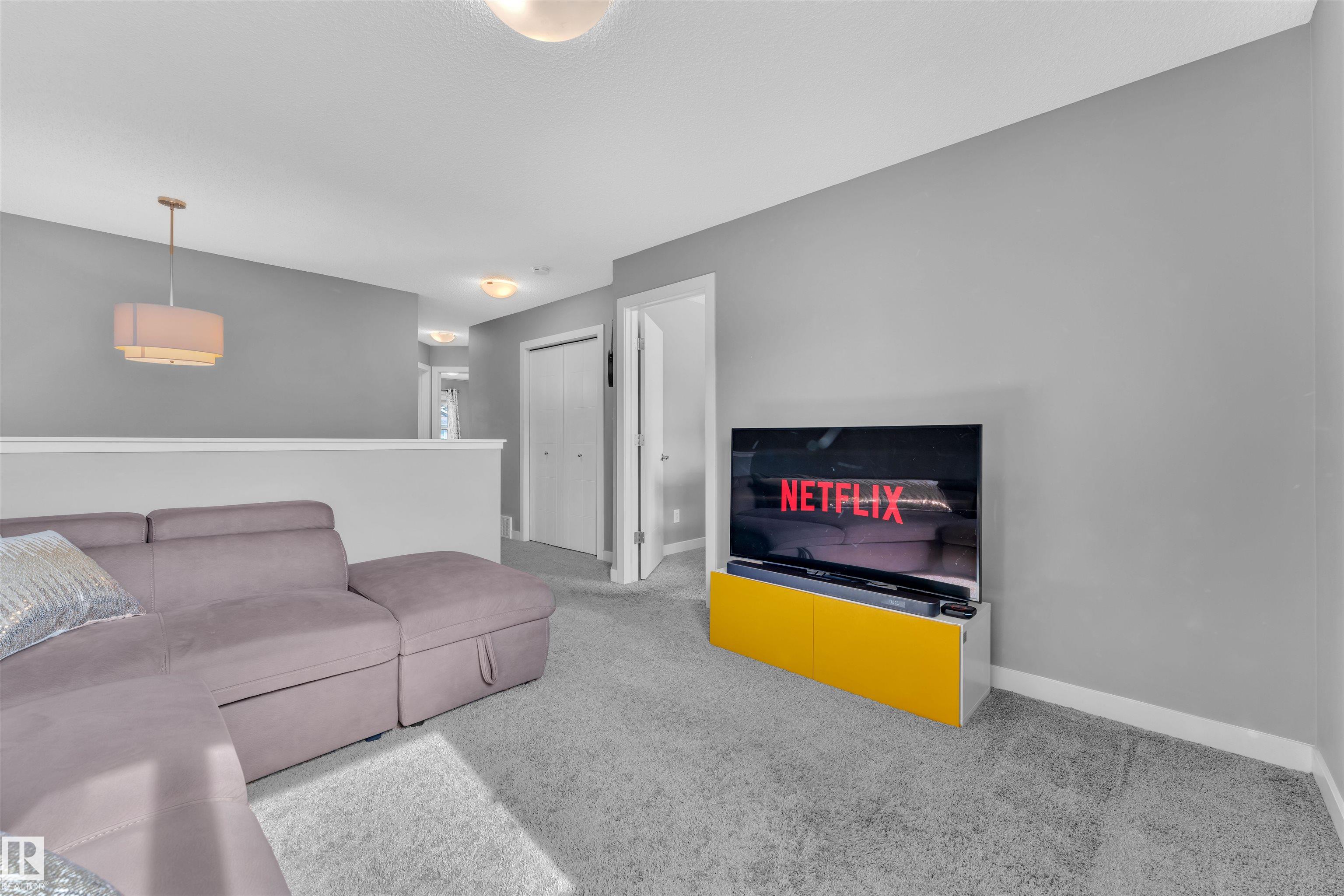 Located in the sought after community of Rosenthal in West Edmonton, this spacious 4 bedroom home is perfect for large families! This home has been meticulously maintained and is a pet free, smoke free home. As soon as you enter you are greeted by expansive VAULTED CEILINGS and several windows the allow the open-concept layout to shine. Upstairs you will find 3 great size bedrooms, a large bonus room, and in the basement you'll find another rec area that can be used for games, a home office or even a gym! Next to that, the basement also has another living room which is currently being used as a home theatre, a full bathroom, and an extremely massive bedroom. The home is situated on a large reverse-pie shaped lot with beautiful landscaping and a yard that offers an extended deck and extra trees for additional privacy! Located just 5 minutes from the city's largest Costco, and a few minutes from West Edmonton Mall, this home is fully turnkey and an absolute no brainer for any family!
