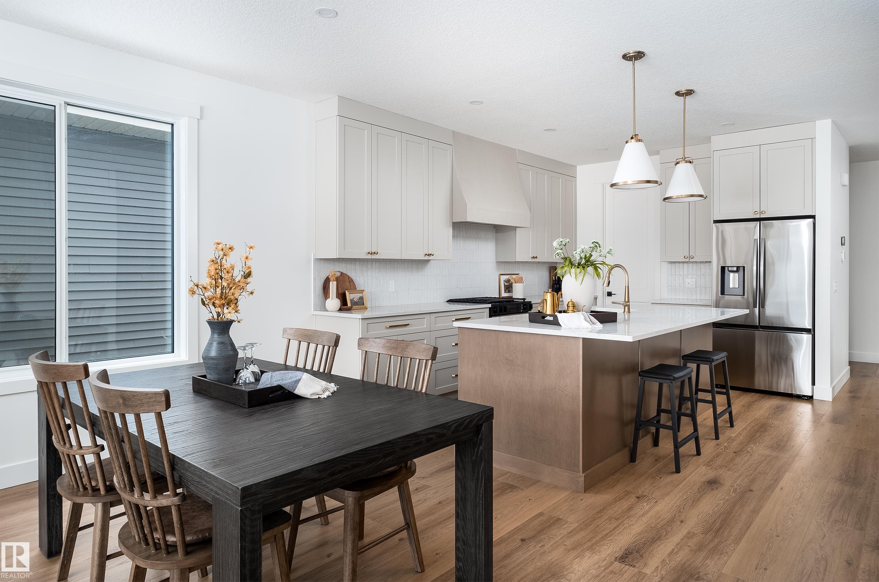Tucked away in the sought-after community of Fenwyck and backing a walking trail awaits another timeless creation by HRD Homes. With custom details and craftsmanship around every corner this elegantly designed 2 bed - 1.5 bath bungalow features over 1,500sqft of living space, vinyl plank flooring, 9ft ceilings w/ 8ft solid core doors, gas stove w/ stainless steel appliances, under cabinet lighting, walkthrough pantry, European inspired plaster range hood and gas fireplace, main floor laundry w/ sink, central A/C, heated garage, tankless hot water, custom built ins throughout, quartz countertops, fully tiled ensuite shower, his/her sinks, walk-in closet and beautifully accented bronze fixtures & lighting. Location is key as you're steps from walking trails, parks, shopping, schools, the Energy City Metro Ball Diamond and a quick 15 min drive to West Edmonton.