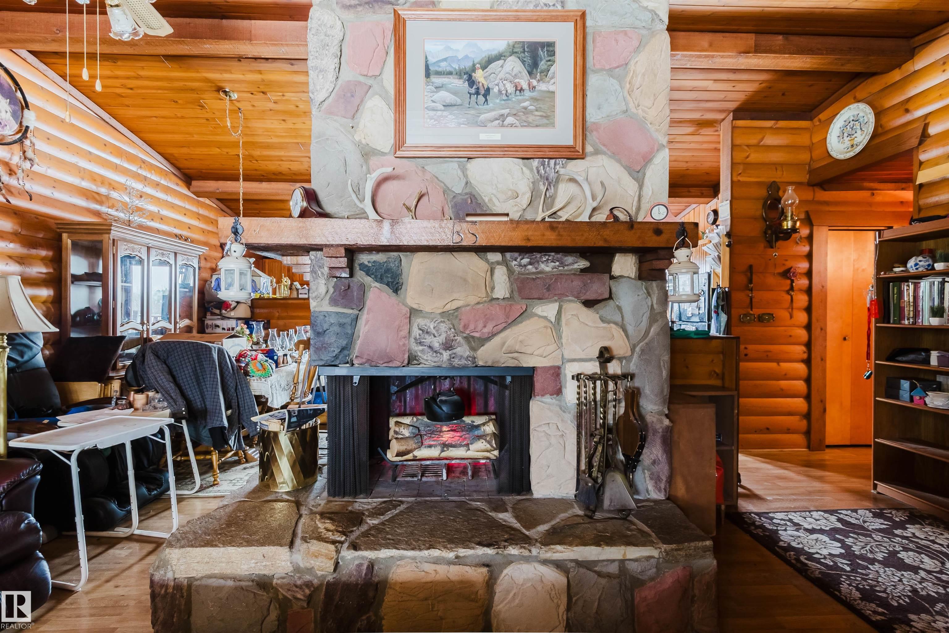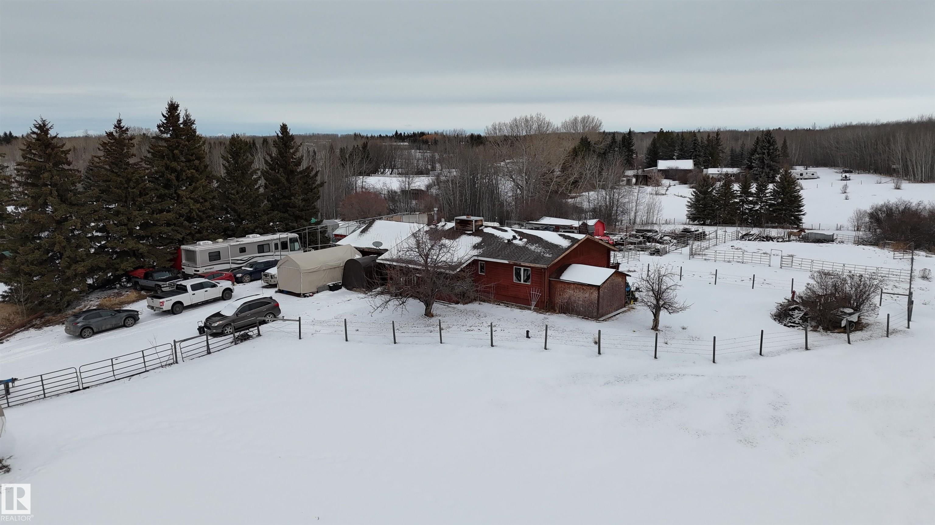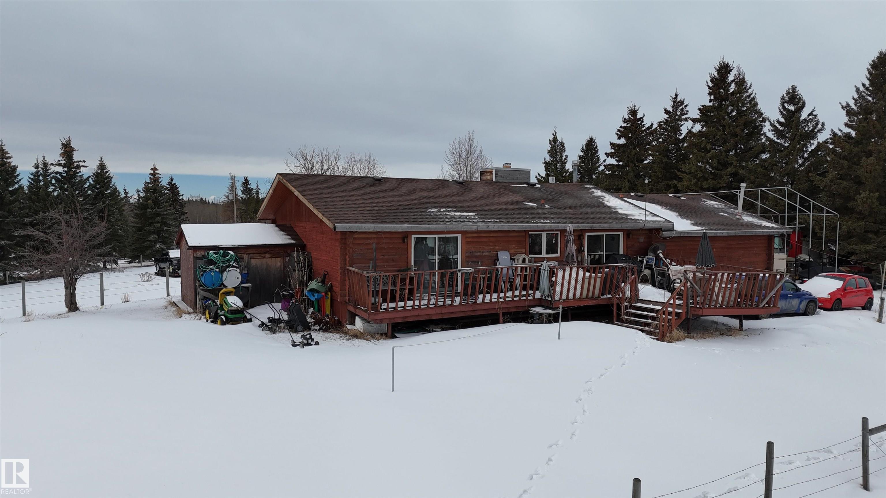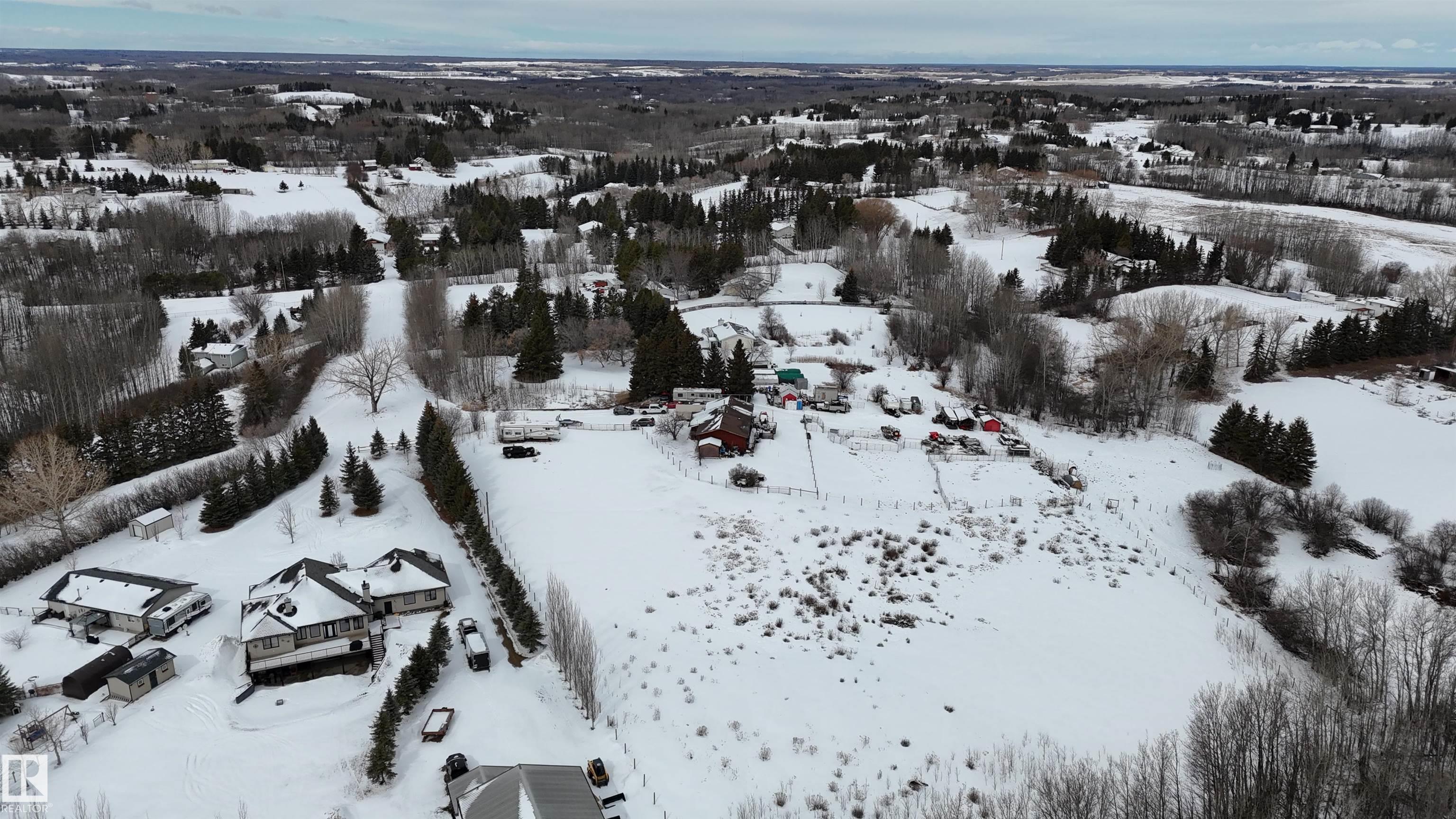 ACREAGE LIVING JUST MINUTES TO TOWN with SPACE, PRIVACY & POTENTIAL Welcome to this BUNGALOW ON 4.77 ACRES, ideally located just 10 MINUTES TO STONY PLAIN and 20 MINUTES TO EDMONTON, offering the perfect balance of PEACEFUL COUNTRY LIVING with EASY ACCESS TO AMENITIES. Tucked into a quiet CUL-DE-SAC with NO THROUGH ROAD, this property delivers PRIVACY, OPEN SPACE, and ROOM TO GROW. Inside, you’ll find a functional layout featuring 2 BEDROOMS and 2 BATHROOMS, a bright kitchen with eating bar, and a spacious living area centered around a STONE WOOD-BURNING FIREPLACE, perfect for cozy evenings. Enjoy your morning coffee on the COVERED FRONT VERANDA or take in the views from the BACK DECK OVERLOOKING ROLLING LAND. The OVERSIZED HEATED DOUBLE ATTACHED GARAGE adds everyday convenience and functionality, and the ROOF WAS UPDATED IN 2023. This home has been WELL LIVED IN and OFFERS OPPORTUNITY FOR UPDATES AND PERSONALIZATION, allowing you to add value and truly make it your own. Some photos digitally decluttered.