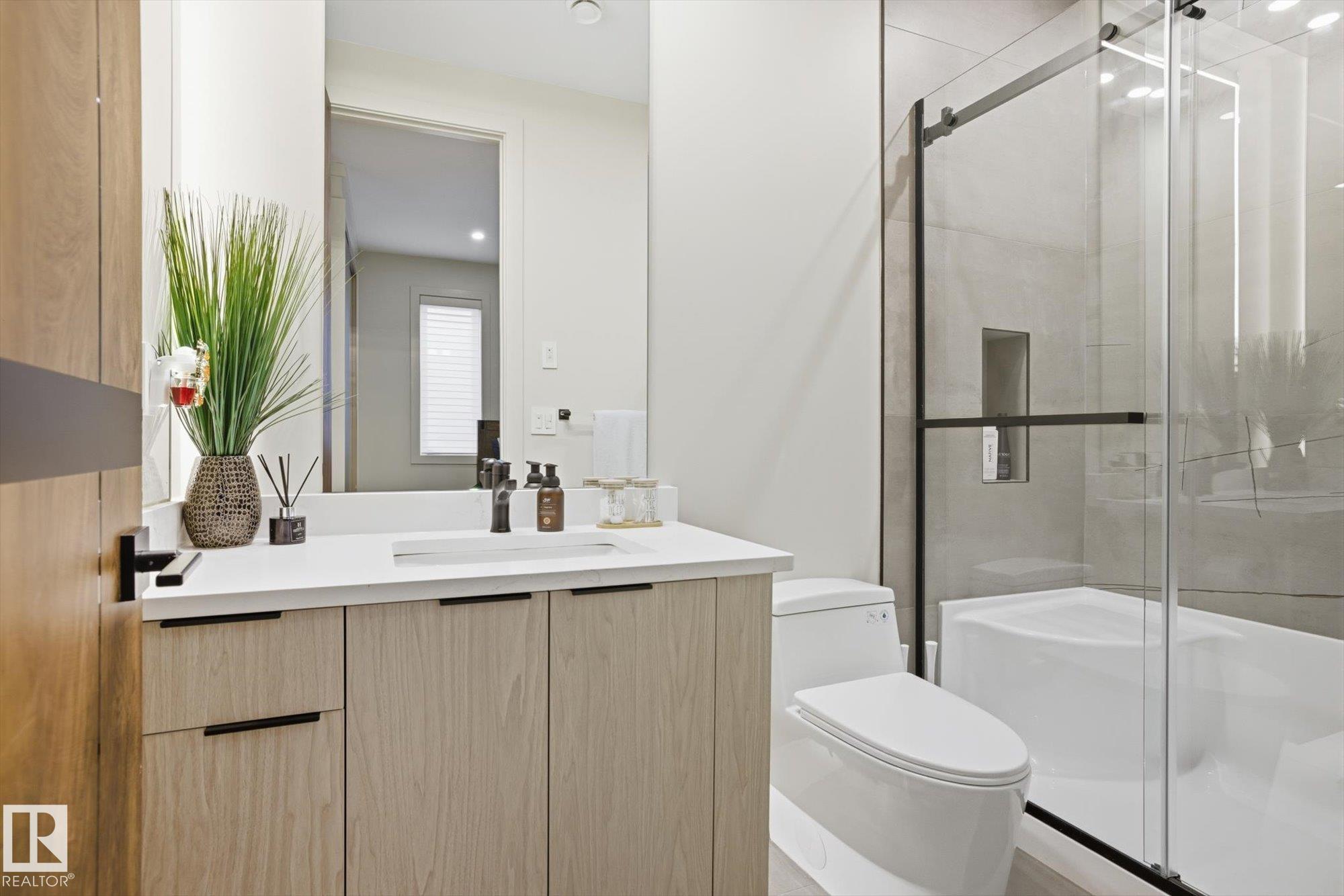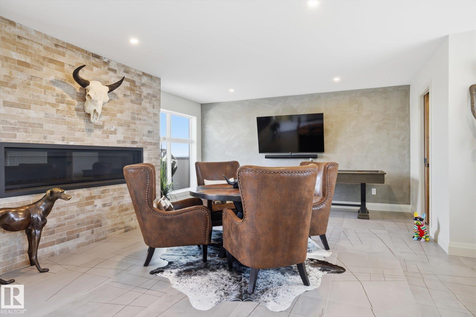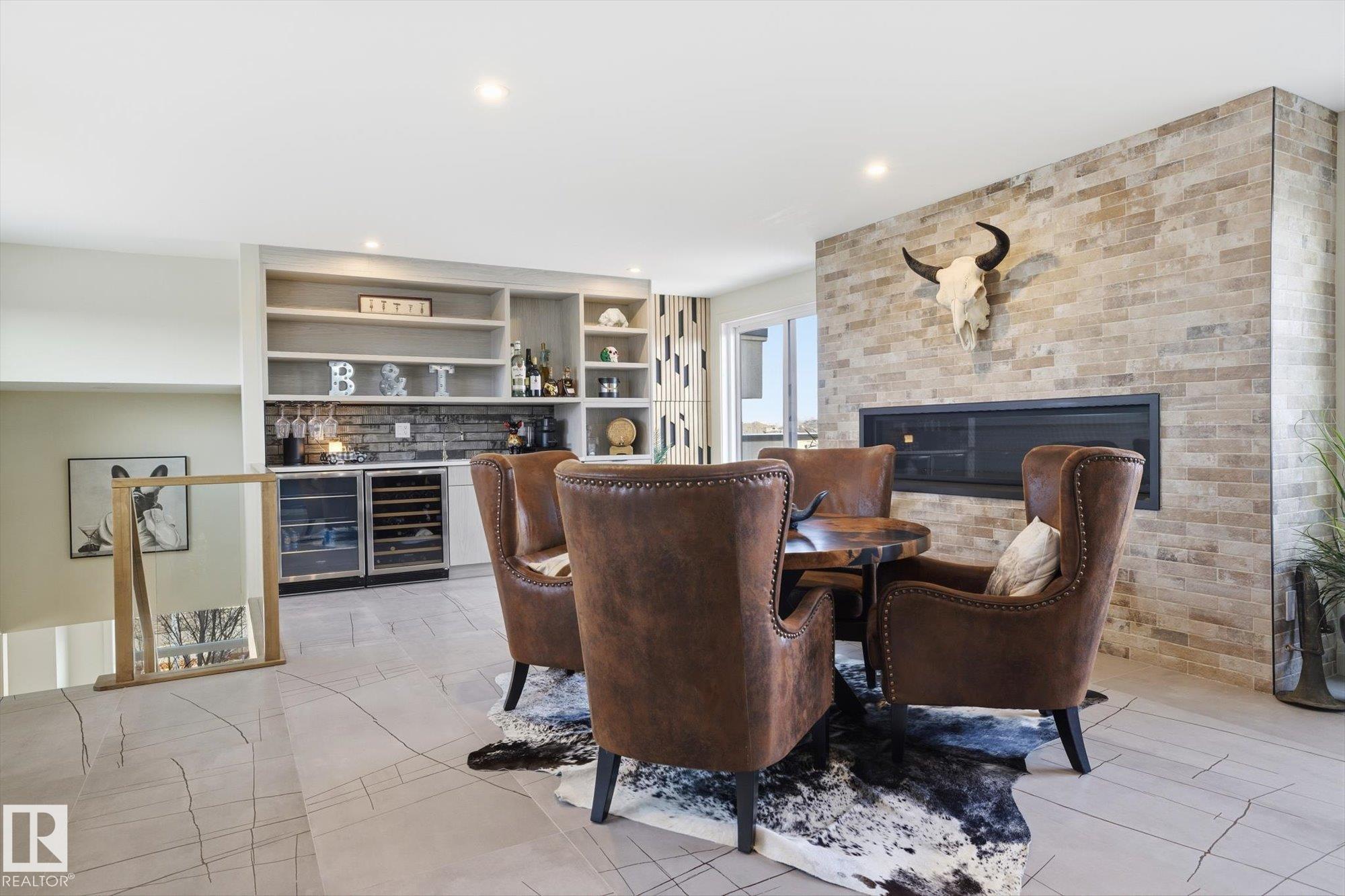 Spectacular City View from the roof top in this Contemporary Executive home in family friendly Cameron Heights. Steps to ravine, river, pond & outdoor rink. Luxury finishes throughout. 19' ceilings welcomes you through this naturally lit, open floorplan w/beautiful craftsmanship. Open to above great room features a custom linear fireplace feature wall & ceiling detail. Oversized kitchen w/ample storage, upgraded appliances, exotic stone, secondary prep kitchen, extended cabinetry & beverage station. 16' dining nook w/direct access to deck for evening bbqs. Main floor bedroom w/ensuite for convenience. Home office w/dual entry, mudroom, powder room & oversized triple garage complete this level. Glass railing staircase & open treads leads you to upper levels highlighting a bonus room, spacious laundry room & 3 bedrooms each w/ensuites including a 640sf primary suite w/private balcony. Trendy upper loft provides a large lounge area, wet bar, 2 sided fireplace & access to private rooftop balcony. Shows a 10!