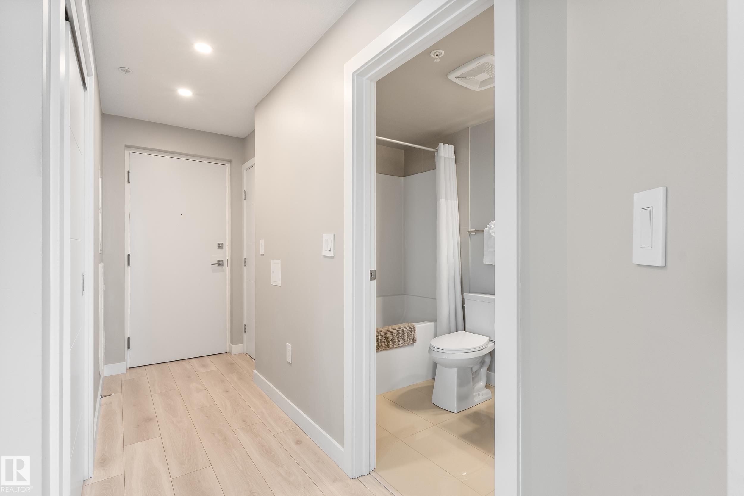 Location, Location! Encore Tower - Modern 2 Bedroom, 2 Full Bathroom Corner Suite with some of the best Downtown views the city has to offer! Enjoy true floor-to-ceiling windows, an efficient split-bedroom design and private sheltered balcony with plenty of morning sunshine. Appreciate durable finishes throughout - sleek quartz counters, plank-style floors bright and tidy tub-surrounds and neutral roller shades (w/ black-out shades in bedrooms). Modern design includes a stylish kitchen with full-size Whirlpool appliances (SS), a spacious island with seating, 9-foot ceilings and in-suite laundry (full-size). Life at Encore includes many conveniences - friendly concierge, an inviting party-room, 4th floor sundeck and a private fitness room. Did we mention steps from ICE District, numerous dining choices, and an al fresco market?... Do not miss this opportunity at the city's ultimate central location!