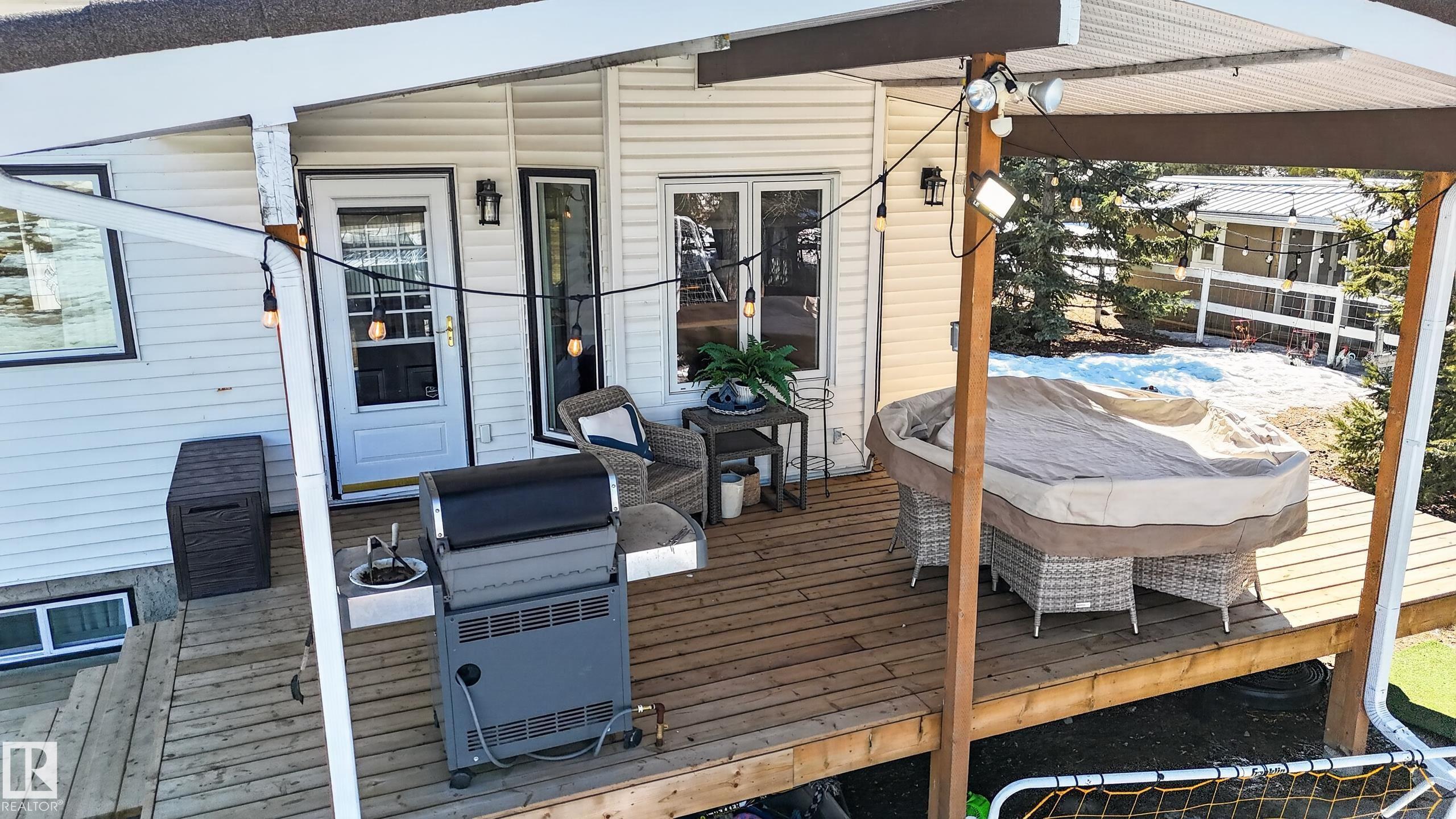 Beautifully renovated bungalow & attached double garage (28Wx22L, 220V, heated) on 3.56 acres in Princess Estates subdivision, only 5 mins northwest of Devon. This 1,270 sq ft (plus full basement) home features vaulted ceiling, engineered hardwood & LVP flooring and plenty of upgrades throughout. Living room w/ gas fireplace; central dining area w/ deck access, NEW kitchen w/ high end appliances, eat-up island & bay window. Finishing off the main level are 2 full bathrooms & 3 bedrooms including the owner’s suite with 4-pc ensuite. Fully finished basement with 2 additional bedrooms, 3-pc bathroom, laundry room w/ plenty of cupboard/counter space, storage room and a huge family room w/ built-in bar. The exterior of the home boasts stamped metal roofing & NEW decks. New well & water systems installed in 2022. Fully fenced lot, cross fenced for horses, 34x12 stable/tack room, chicken coop and plenty of space to build a shop. Fantastic location with plenty of privacy and 15 mins to Edmonton & YEG airport.