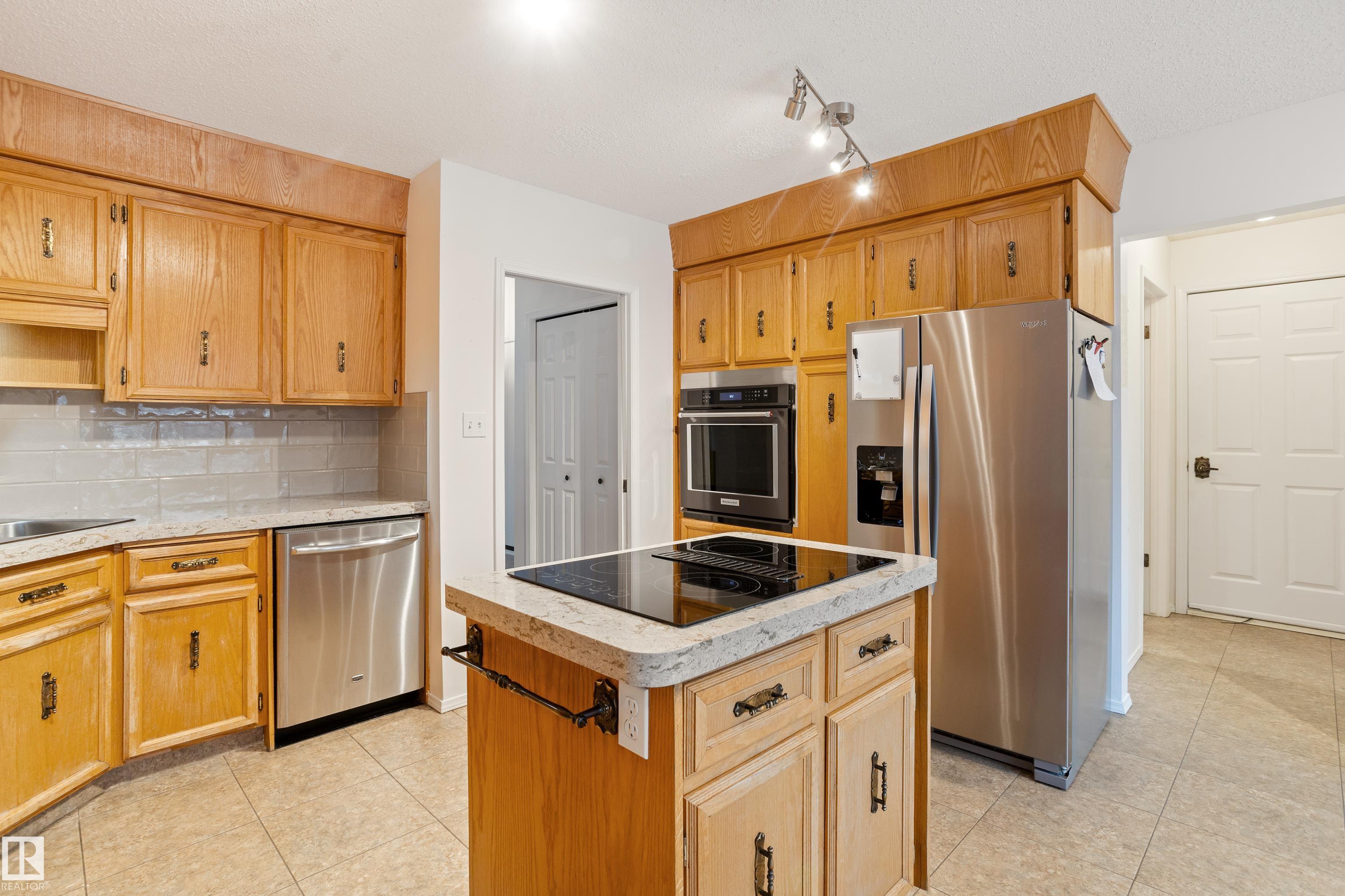 Amazing location! Set on a rare golf course lot, this original-owner home backs onto the 9th tee box of the Mill Woods Golf Course, offering a truly unmatched setting. Enjoy long summer evenings on the expansive west-facing deck, where sunset views & a peaceful green space create a daily retreat. Inside, the spacious living room is anchored by a striking brick-facing wood fireplace, soaring ceilings, & rich wood beam accent, while large windows fill the home with natural light. The kitchen offers generous space with a bright breakfast nook, complemented by a separate dining room for more formal gatherings. Three well-sized bedrooms include a primary suite with walk-in closet and private ensuite. The fully finished basement adds even more living space with a second brick wood-burning fireplace, plus two additional rooms, 3-piece bathroom & lots of storage space. Complete with a double attached garage and located close to schools, shopping, and quick Whitemud access, this is a truly special opportunity.