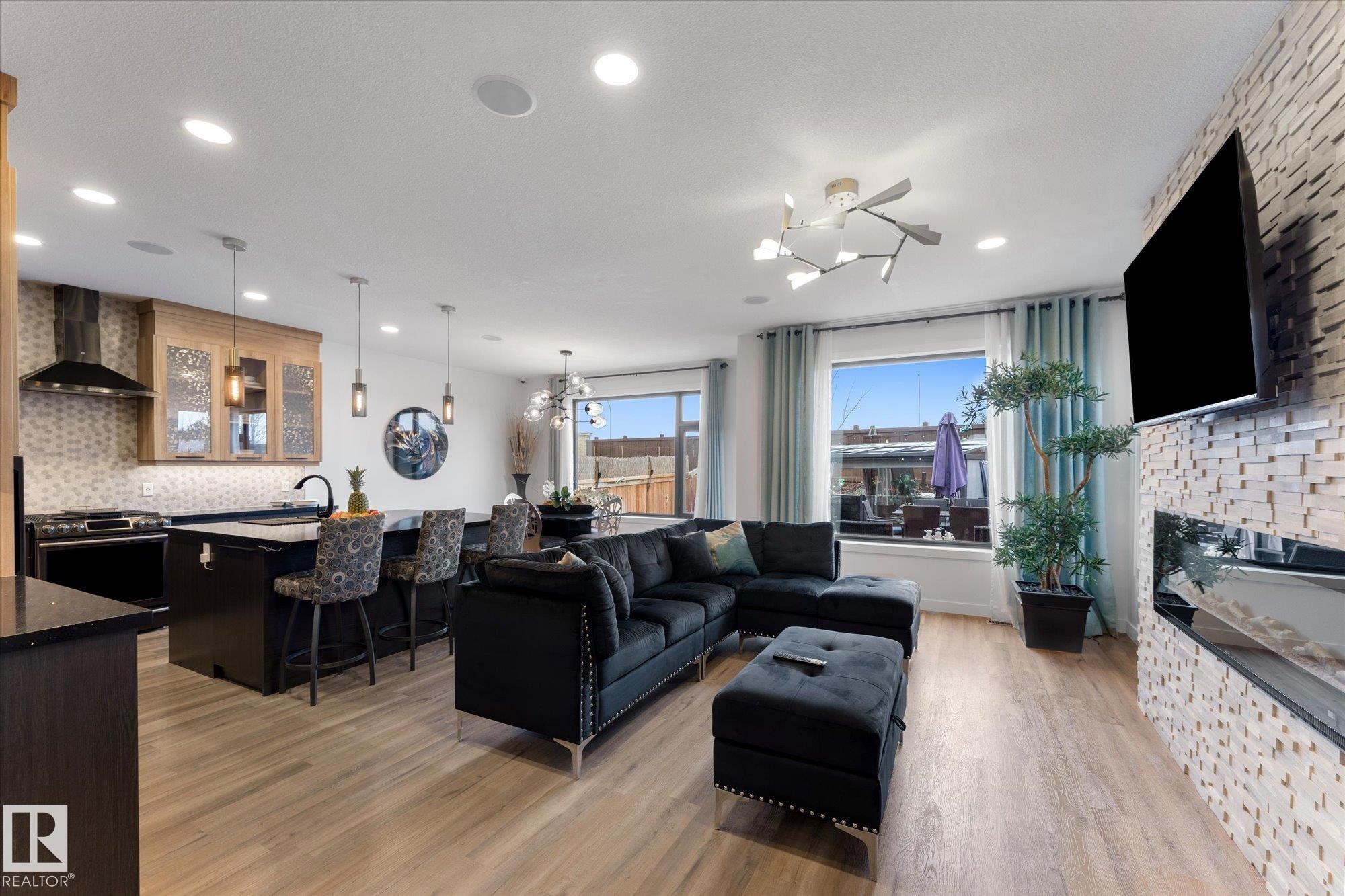 Welcome to 9 Brunwyck in Fenwyck. With almost 2800 sq ft of luxurious living space, this stunning home is perfect for the family w/4 spacious bdrms & a ton of upgrades. Custom quartz kitchen boasts floor-to-ceiling 2-tone cabinetry, under-cabinet lighting, single-level waterfall island, premium vinyl flooring, walk-through pantry, black SS appliances, soft-close drawers, & beautiful mosaic backsplash. Stunning stone-surround fireplace in LR. Dining area provides access to spacious deck w/glass railings. On main floor, you'll find a grand entrance, half bath, & 8-ft doors that add to overall appeal. Upstairs, there are 3 generous sized bdrms, bonus rm, office space & laundry rm. King-sized primary has luxurious ensuite w/standalone tub & custom shower. Fully developed bsmt has fully equipped kitchenette, bdrm & spacious area for family time. Triple-pane windows, surround sound throughout, stair lighting, garage w/epoxy flooring & drain, beautiful landscaping, hot tub & gazebo, & A/C. It won’t last long!