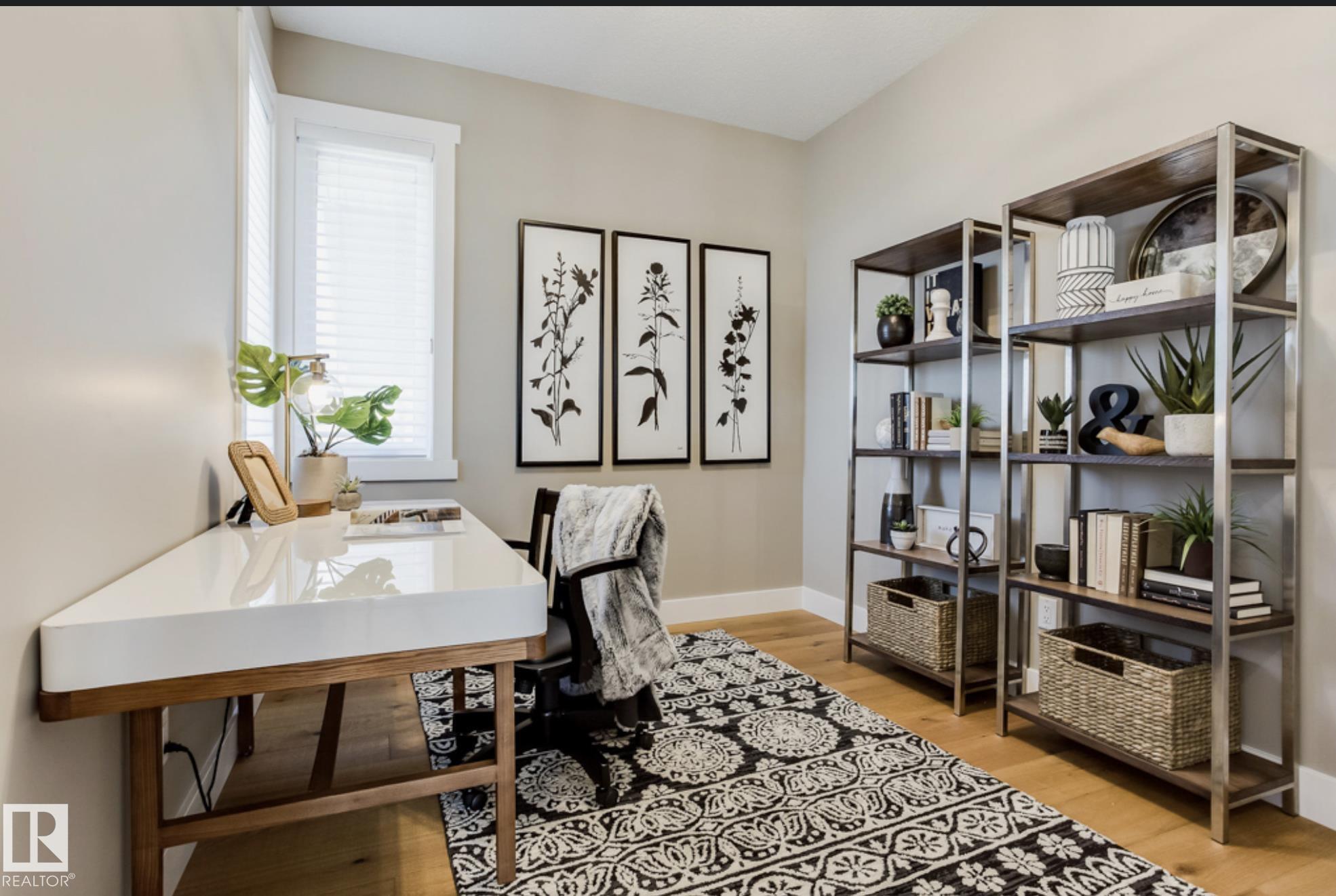 Introducing the “MESA” by MasterCraft builder, Homes By Avi. A LUXURY HALF-DUPLEX bungalow villa nestled on pie lot in the heart of Riverside, St. Albert. LOVE where you LIVE surrounded by tranquil walking paths, ponds & green-space. A hop away from St. Albert Mall & Lacombe Dog park. Designed for comfort living w/everything you need on main level; primary suite w/luxury 4pc ensuite & walk-thru WIC, spacious laundry room w/cabinets, front flex space (guest room/office), walk-thru mudroom off garage & convenient powder room. Sophisticated finishings throughout include luxury vinyl plank flooring & electric fireplace in GREAT ROOM. Entertaining kitchen showcases abundance of 39" upper cabinets, soft close pot & pan drawers, upgraded quartz countertops, eat-on centre island, hood fan, microwave, MDF shelving in pantry & generous appliance allowance. Finished basement with 792 sqft of developed space that includes rec rm, bdrm & 4pc bath. Entertaining back deck w/aluminum/glass. PHOTOS OF SIMILAR SHOW HOME.