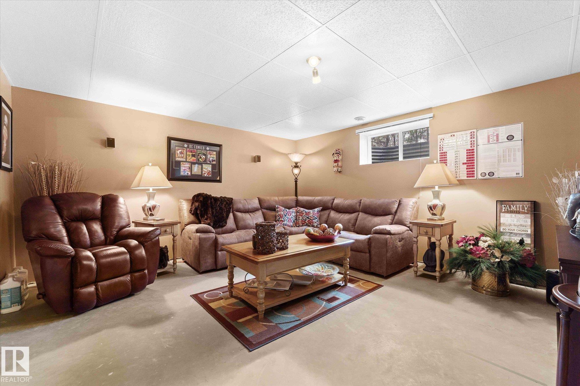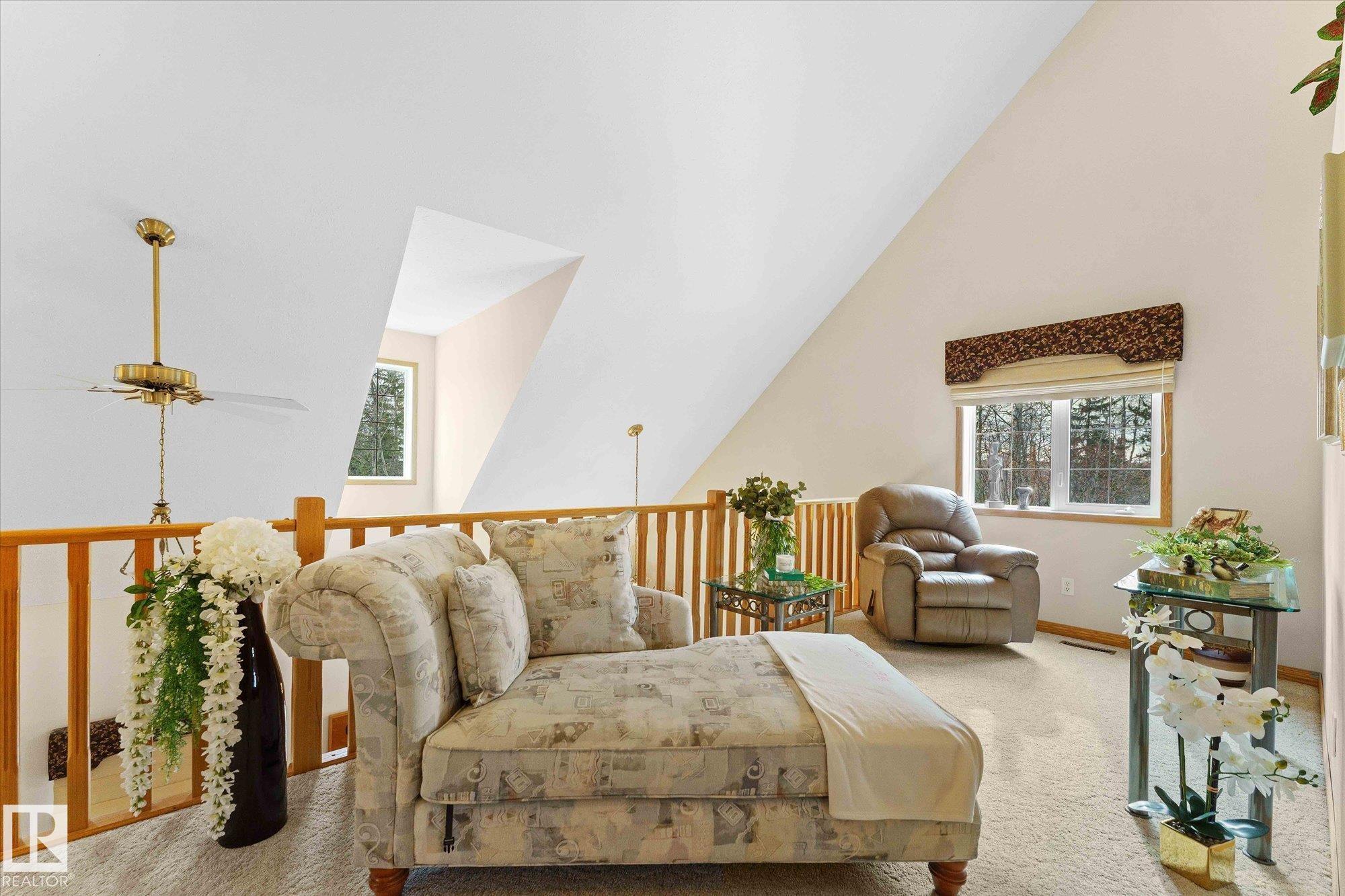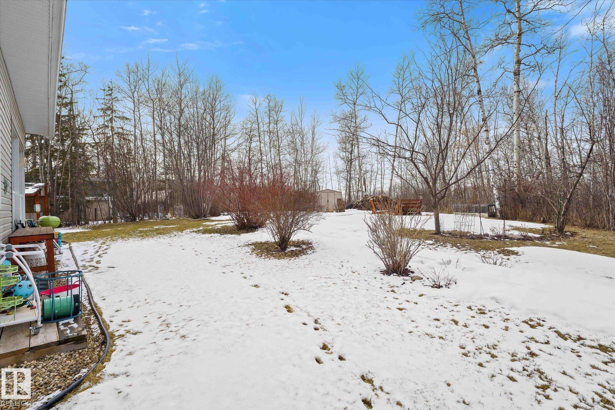 Acreage living just steps from the lake, less than an hour from the city! Welcome to Wizard Lake, a true hidden gem. This well maintained home makes a stunning first impression with its inviting covered front porch and incredible landscaping. Step inside to soaring ceilings and a striking river rock, wood-burning fireplace. The open concept living, kitchen, and dining area is perfect for entertaining. The main floor also features a bedroom and a 3-piece bathroom, ideal for flexible living. Out back, enjoy a second covered deck with a gas line for BBQs, plus your very own Tiki Bar perfect for hosting summer evenings. Upstairs, you’ll find a charming loft, a full bathroom, and an impressive primary retreat complete with a massive walk-in closet and a cozy fireplace for those winter nights. The basement offers a spacious rec room, an additional bedroom or den, rough-in for a future bathroom, and plenty of storage. Enjoy your private yard with raised garden beds, fruit trees and more after a day on the lake!