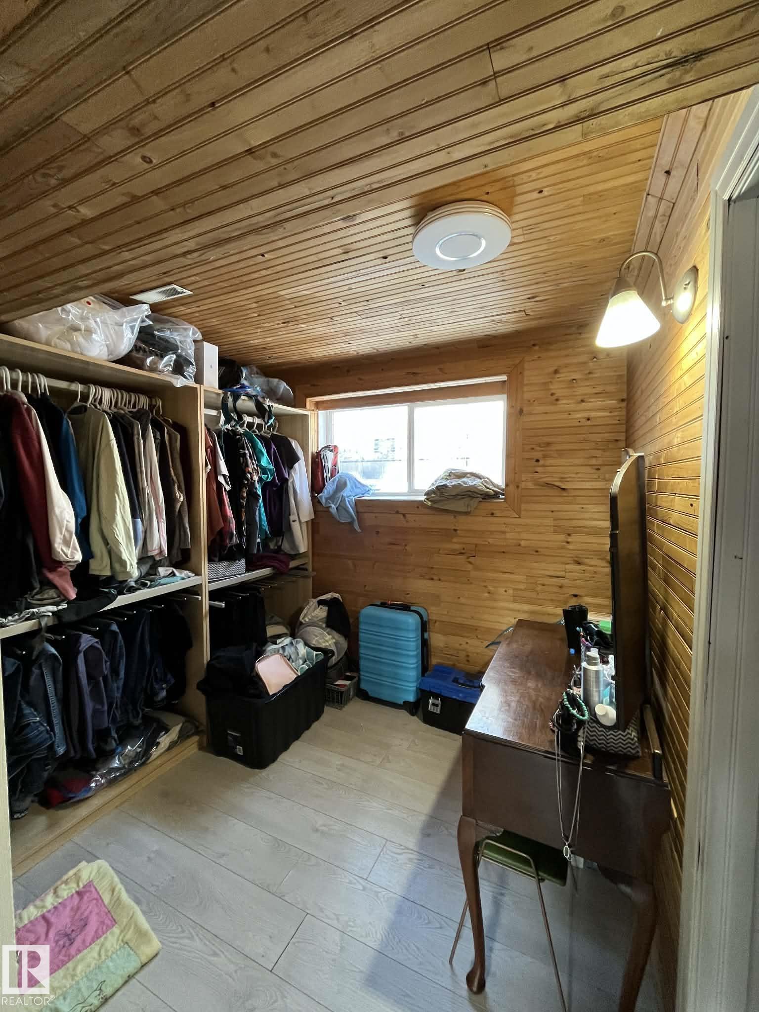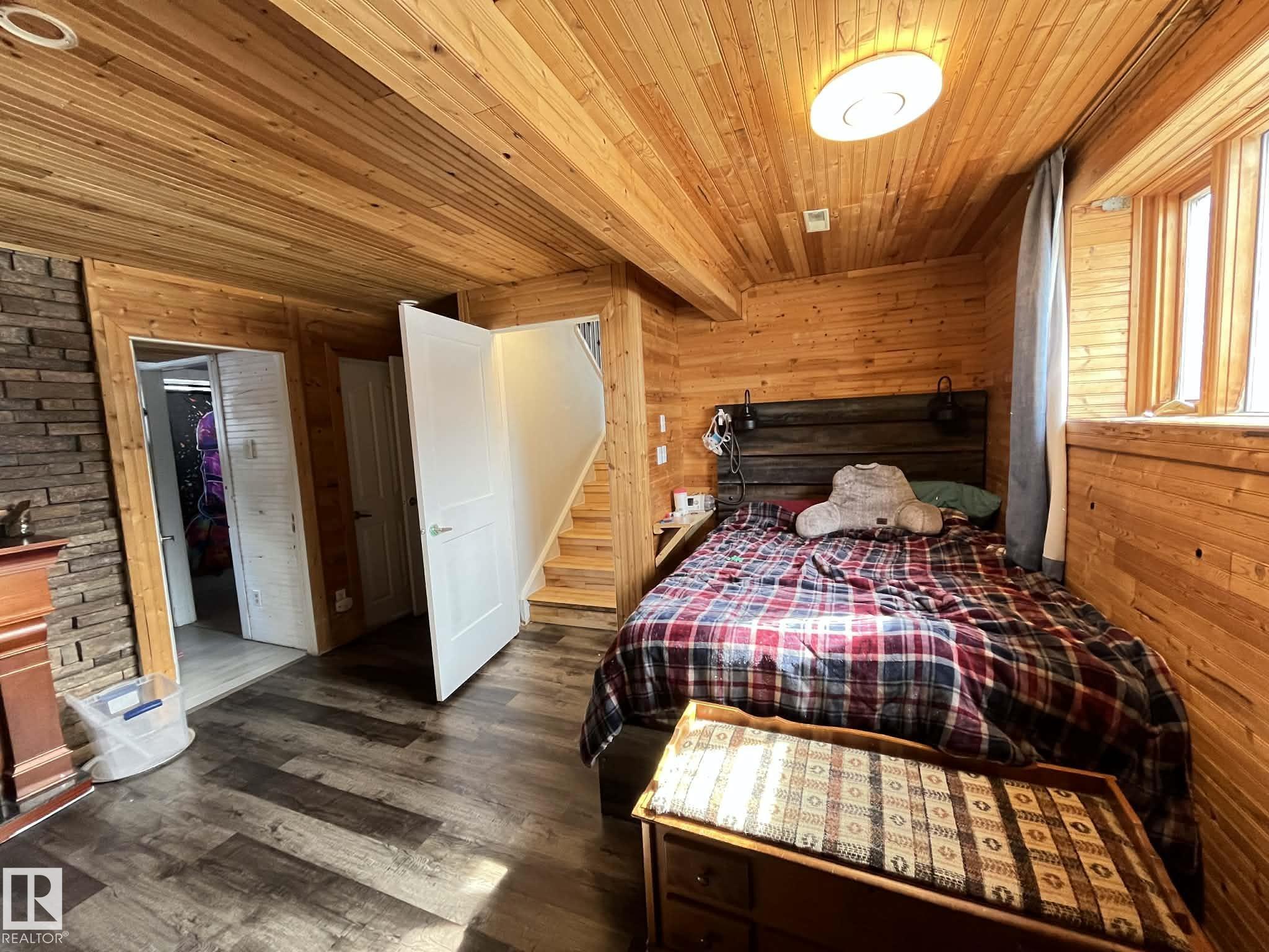 TAKE A LOOK AT THIS! Beautiful updated 1978, 3 bedroom, 2 bathroom, 4 level split. On the main level you will find the heart of the home, the warm and inviting kitchen features ample cabinetry, generous counter space, and a functional layout perfect for everyday living and entertaining. The living area has plenty of natural light and a wood burning fireplace. The upper level you will find a tastefully updated 4 piece bathroom, and 2 bright and spacious bedrooms. Head down to the third level and find the large primary bedroom, walk in closet and 4 piece ensuite. The rich wood walls offer a charming rustic feel with natural character and warmth and an electric fireplace making this room your favorite place to unwind. Go down into the fourth level to find the large rec room, a gym or flex area and the slightly unfinished utility/laundry room. New paint and light fixtures throughout the home and updated flooring. Outside enjoy the fenced backyard, deck, plenty of parking and a double detached heated garage.