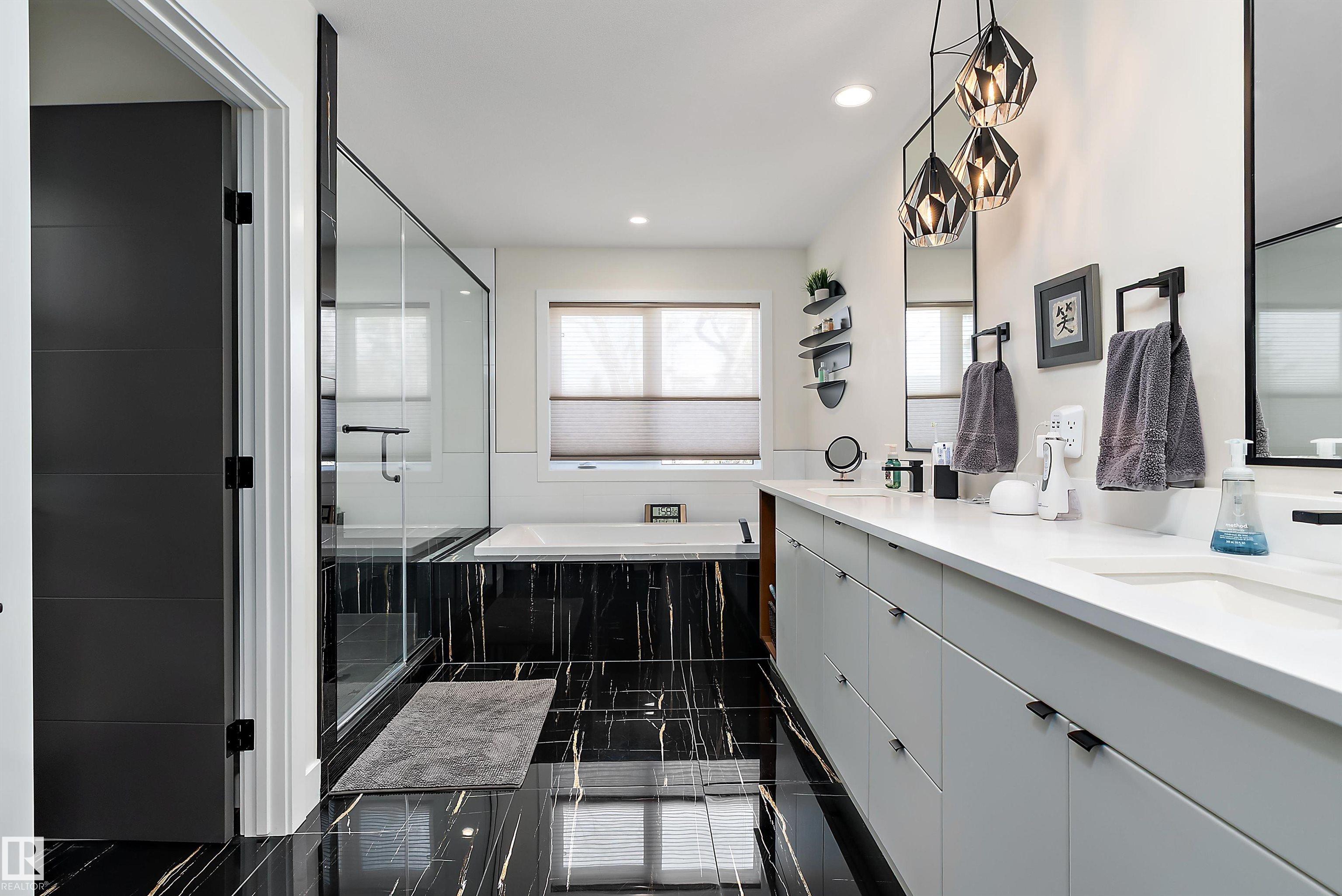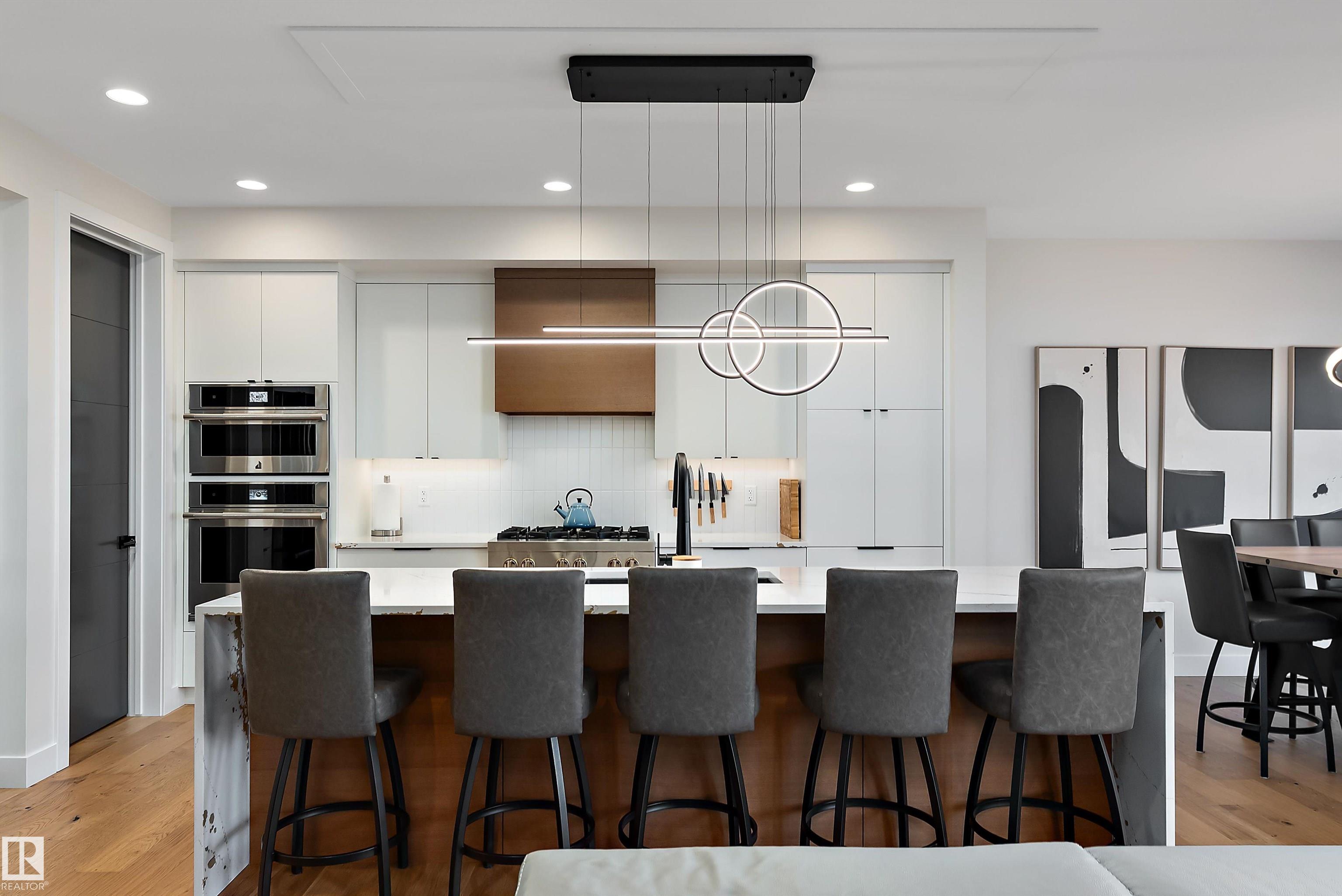 Experience a masterclass in West Coast-inspired luxury in the heart of Aspen Gardens, one of Edmonton's most premier family communities. This custom executive two-story home immediately impresses with an abundance of natural wood, expansive windows, and organic elements that flow through the open-concept main floor. The entertainer’s kitchen and wide-plank flooring set the stage for sophisticated living. Upstairs, discover three spacious bedrooms plus a large bonus room, and a spa-like primary ensuite featuring heated floors. The lower level offers a fourth bedroom, full bath, and a stylish built-in bar. Outdoor living is elevated by a park-like yard with new composite decking, dual gas hookups, and Gemstone lighting. The heated triple tandem garage features a floor drain and is currently utilized as a private gym. Steps from Whitemud Creek Ravine trails and minutes from top-tier schools and the Derrick Club, this home is a timeless classic in an amazing location. Don't miss this opportunity!