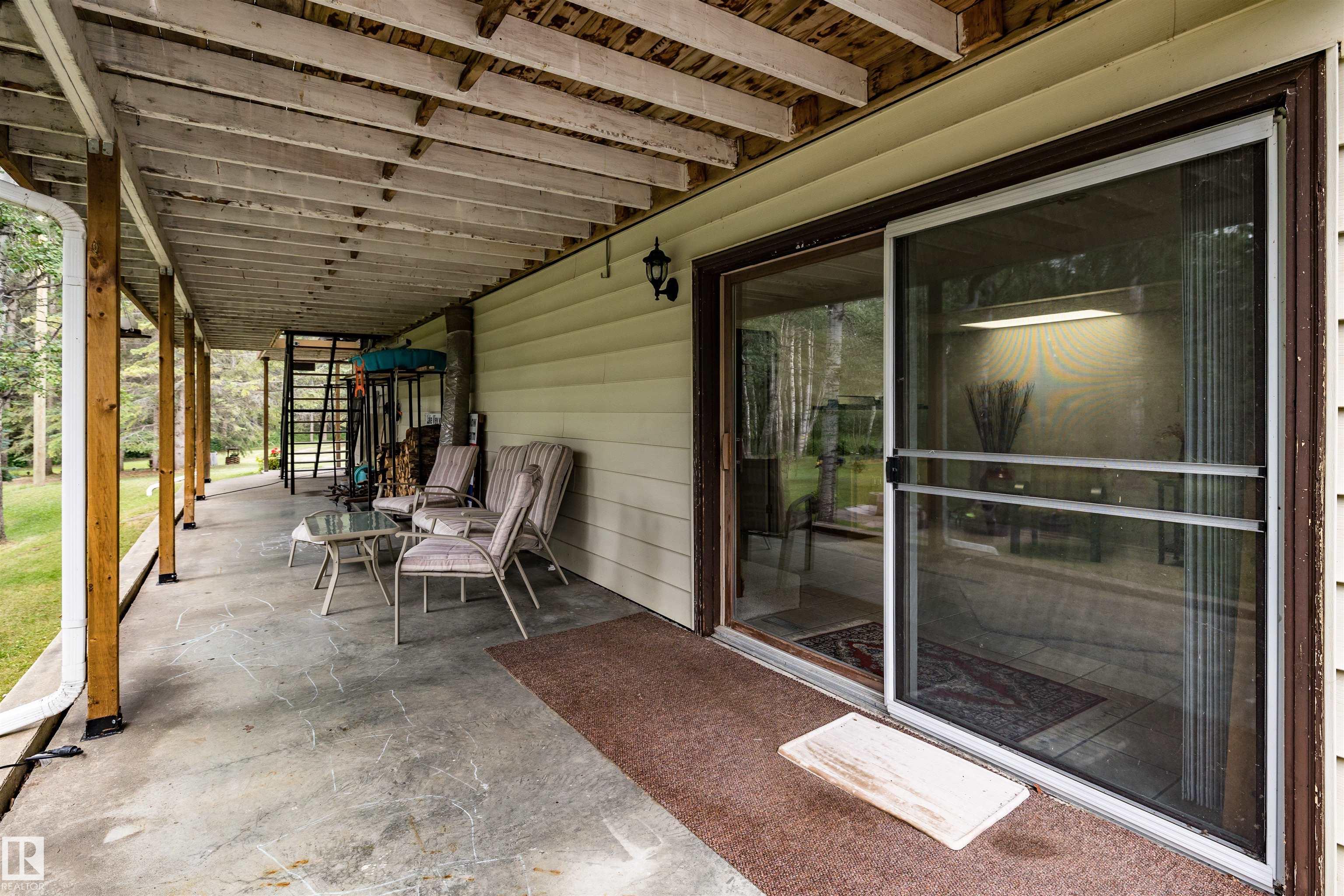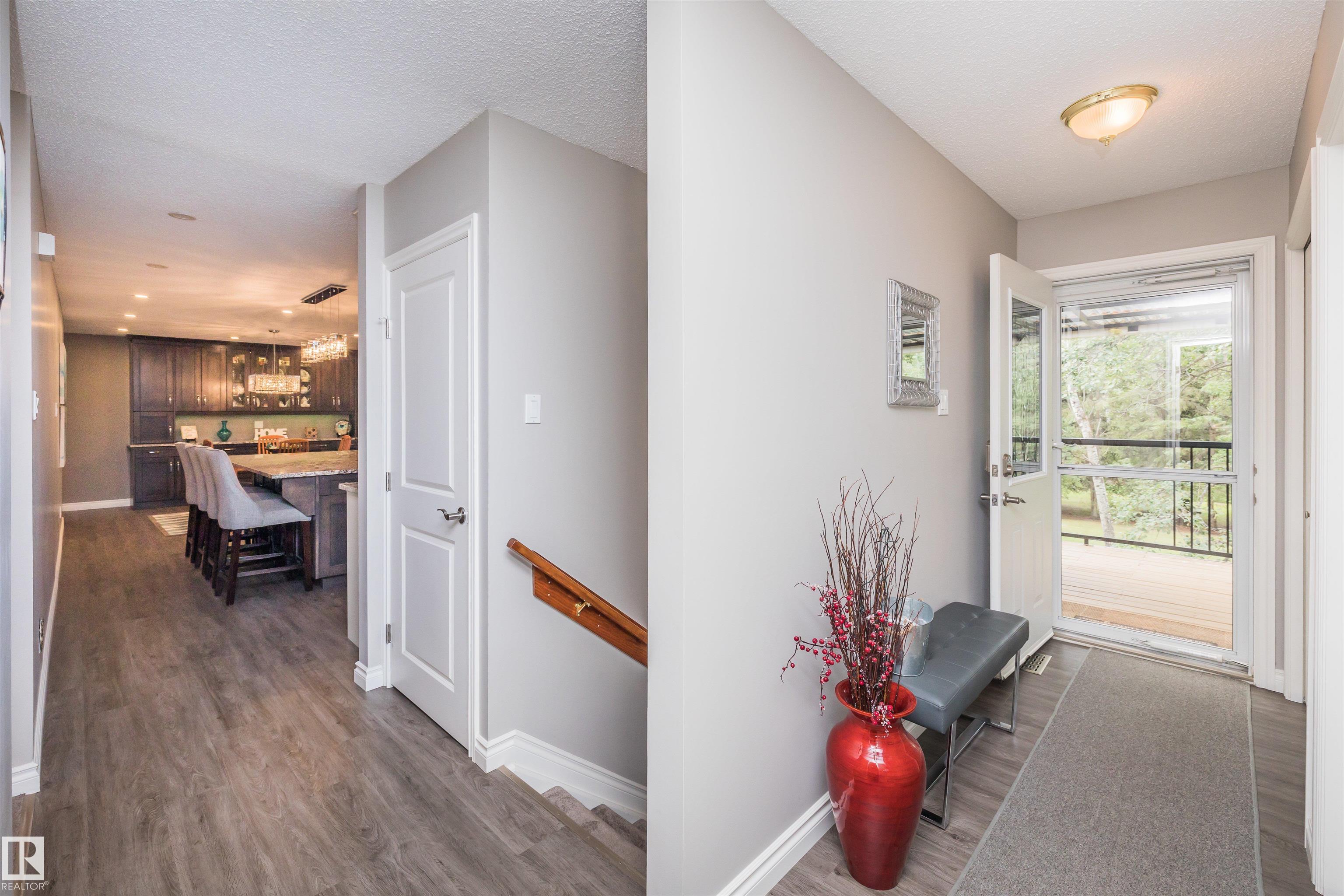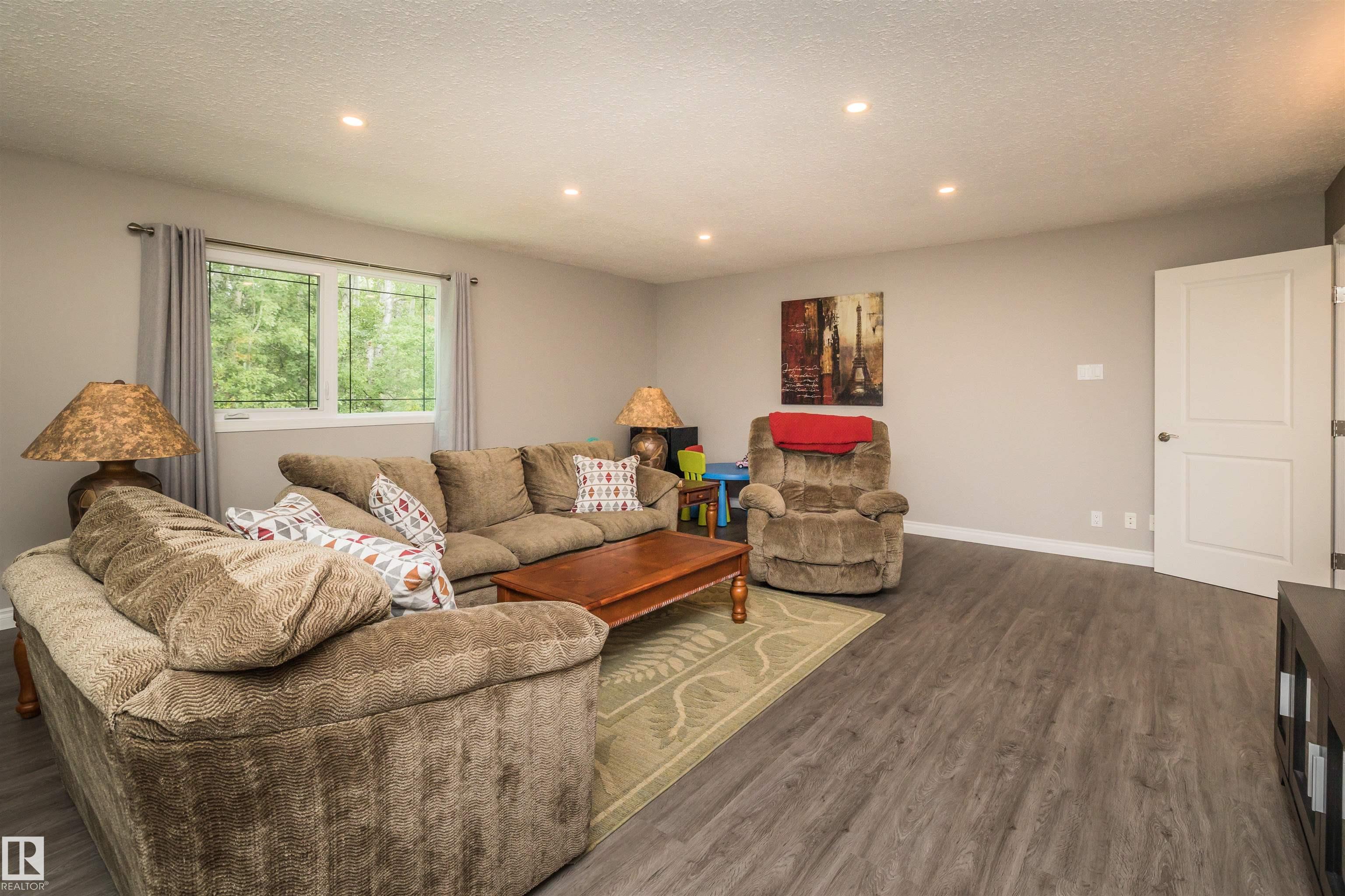 4.93 Acres & total 4000 SqFt updated walkout bungalow privately nestled among trees & secluded within the nature surrounding it! Luxury vinyl plank floors lead you into a stunning kitchen, gorgeous granite counters, tons of cabinetry, a massive island & inviting eating bar. Nearby, 2 options for dining spaces offer flexibility. The primary is its own retreat with lots of closet space & a 3-pce ensuite. A spacious living rm w/fireplace & massive family rm provide areas to relax or entertain. 2 more bdrms, 4 pce bath(Jacuzzi tub), an option for 4th bdrm(den) & 2 pce powder/Laundry rm finish off the main level. Step outside to a massive covered deck, perfect for a morning coffee or unwinding at the end of the day. The walkout basement offers a huge rec room, theatre/flex rm & 3rd bath w/sauna. Heated double garage & the expansive yard invites endless possibilities for your family to enjoy. Perfectly positioned in a peaceful setting siding a park reserve, this sanctuary offers a lifestyle that’s unbeatable.