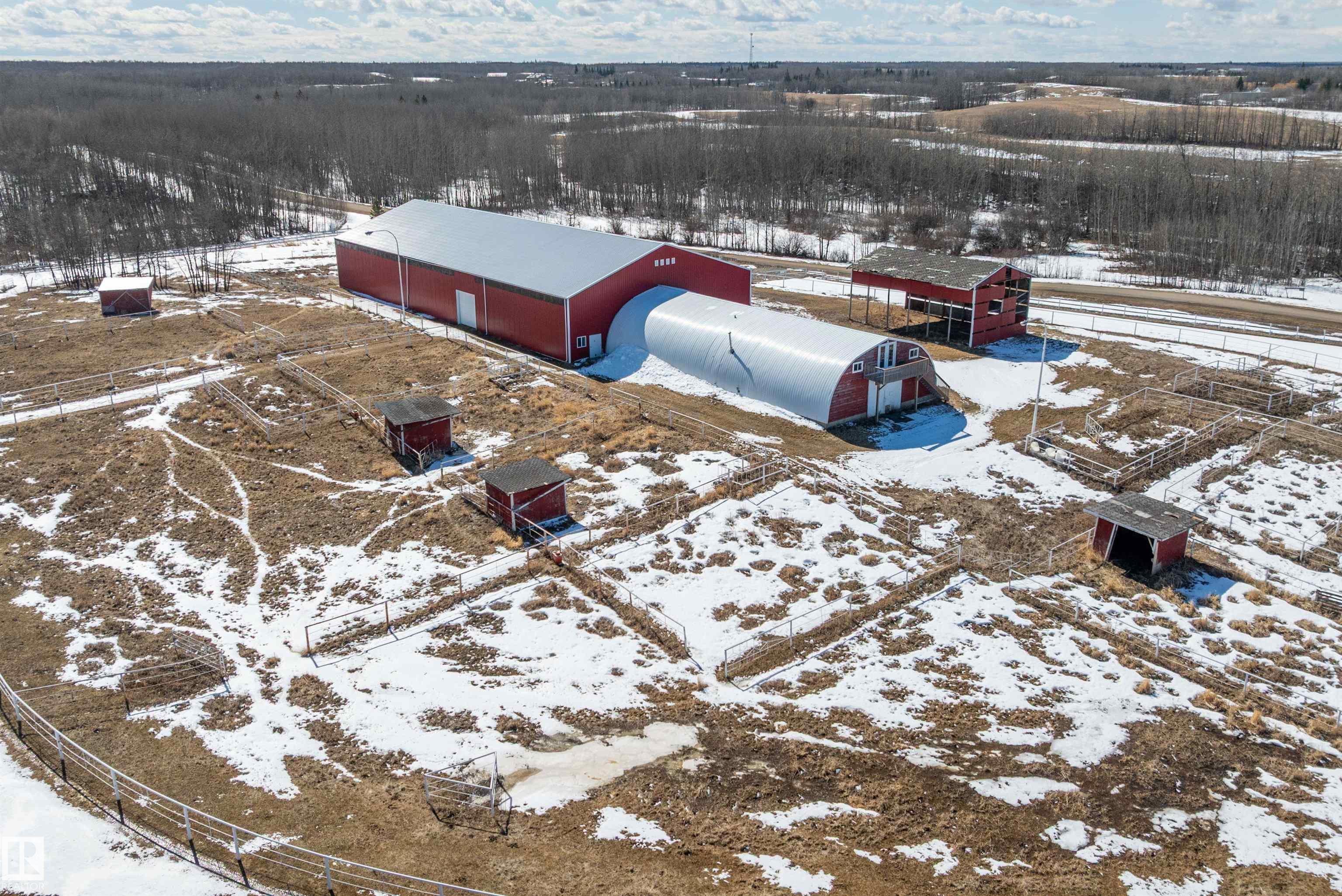 This property is a DREAM COME TRUE for EQUINE ENTHUSIASTS! Spanning 40.53 Acres, it offers everything you need for thriving equine activities! A 160 x 70 heated INDOOR RIDING ARENA, INSULATED & HEATED BARN w/septic, THIRTEEN-12 x 10 rubber matted stalls, WASH BAY, LAUNDRY/LUNCH ROOM, TACK RM & LOCKERS, & 2 pce bathrm. Outside you'll find numerous paddocks, 3 AUTO WATERERS, HAY & EQUIPMENT SHEDS, and an OVAL TRACK around the perimeter! The lrg 35 x 78 STORAGE QUONSET has 2x14 ft drive thru overhead doors & new vinyl cover. The FULLY RENOVATED house w/ WALKOUT exudes charm w/ vaulted ceilings boasting a cosy living area w/stone fireplace, 2 spacious bedrms, 2 bathrooms, and a GORGEOUS KITCHEN! Upper level has a MASSIVE PRIMARY SUITE w/4 pce ensuite, and is completed with a den w/fireplace overlooking the main level and AMAZING view out the west facing windows. Fully developed lower level is complete w/3 pce bath, bedrm, kitchen and flex areas. AMAZING HORSE PROPERTY on a beautiful and PRIVATE 40.53 Acres.