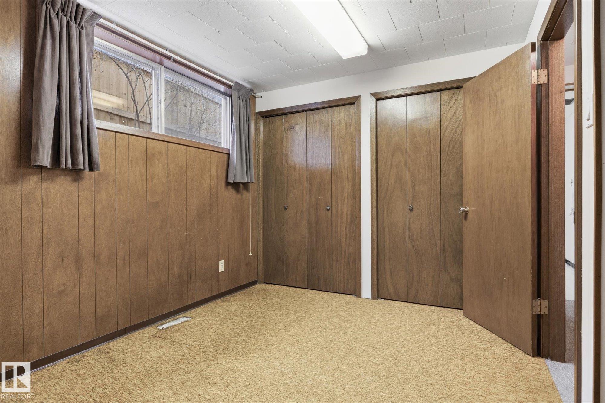 Welcome to this stunning mid-century modern home in the heart of Ottewell! This beautifully maintained 3-level split offers timeless character with vaulted ceilings finished in rich wood and unique custom built-ins throughout. The functional layout features 3 bedrooms and inviting living spaces perfect for families or entertaining. The standout feature is the incredible garage setup—an oversized heated double detached garage plus a tandem attached garage (single wide, double deep), providing space for up to 4 vehicles under cover. A true dream for car enthusiasts or hobbyists! Situated on a large pie-shaped lot with new vinyl fencing, beautiful landscaping, a garden, and a massive rear parking pad. Additional upgrades include a high-efficiency furnace and hot water tank, the home also features metal roll-down shutters for the bedroom windows and a metal roof on the home and garage. Centrally located close to schools, parks, shopping, and just minutes to downtown and the Edmonton River Valley.