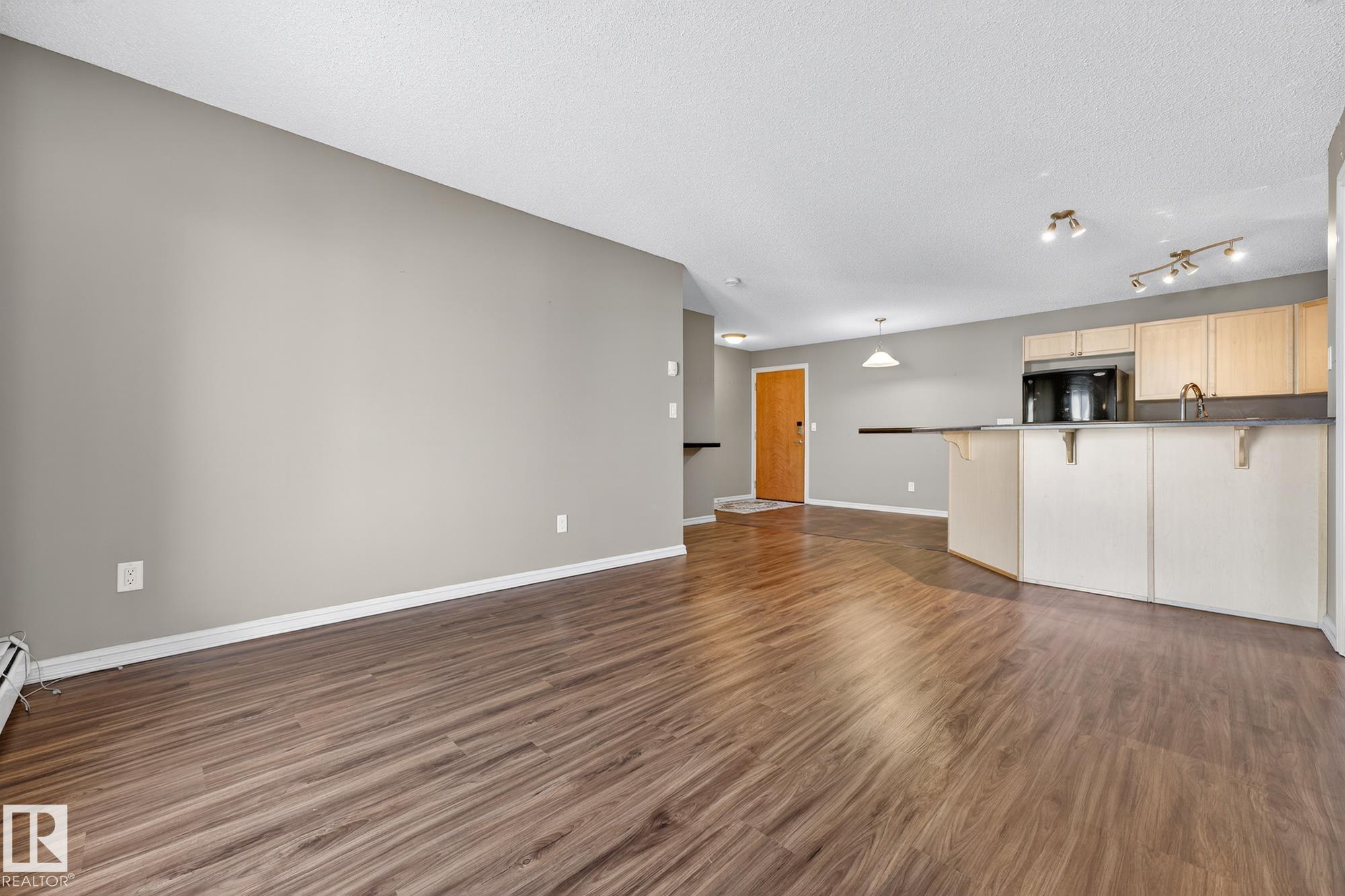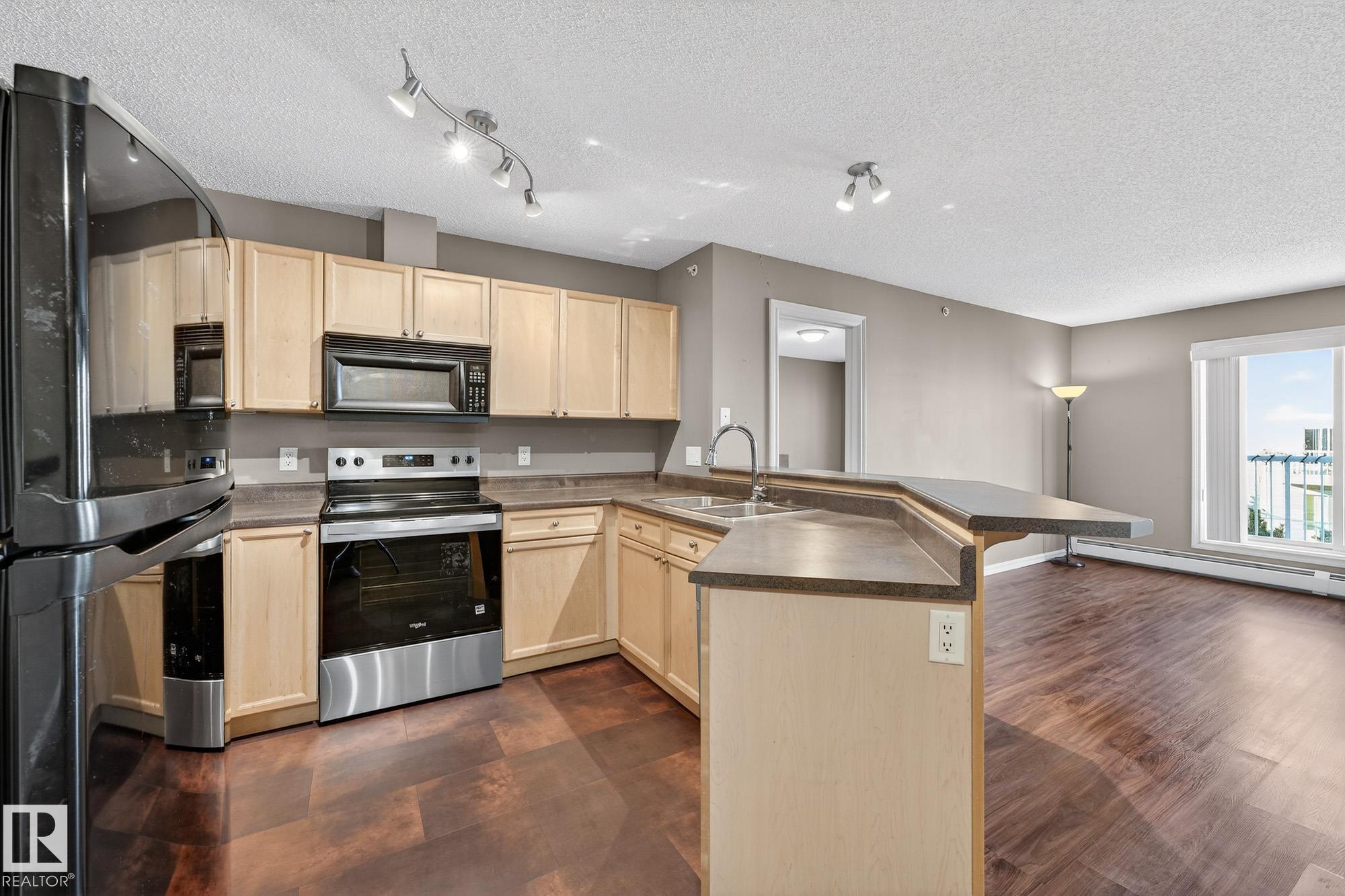 Welcome to this sun-drenched, top-floor sanctuary in Cumberland. This west-facing 2-bed, 2-bath condo perfectly balances modern style with functional design. An inviting foyer provides effortless organization with in-suite laundry & dedicated storage. The heart of the home is a U-shaped kitchen featuring sleek black & stainless appliances, a raised eating bar, & ample cabinetry, perfect for morning coffee or evening hosting. An airy, open-concept living room extends to a private balcony, ideal for enjoying golden hour sunsets. The clever floor plan places bedrooms on opposite sides for maximum privacy. The primary suite serves as a true retreat, boasting a dual-sided walkthrough closet & a 3-piece ensuite. Residents enjoy premium amenities including heated underground parking & a fitness room. Ideally located near shopping, essential services, & the Anthony Henday, this home offers a seamless urban lifestyle. Whether you’re a professional or a small family, this is the fresh start you’ve been looking for.