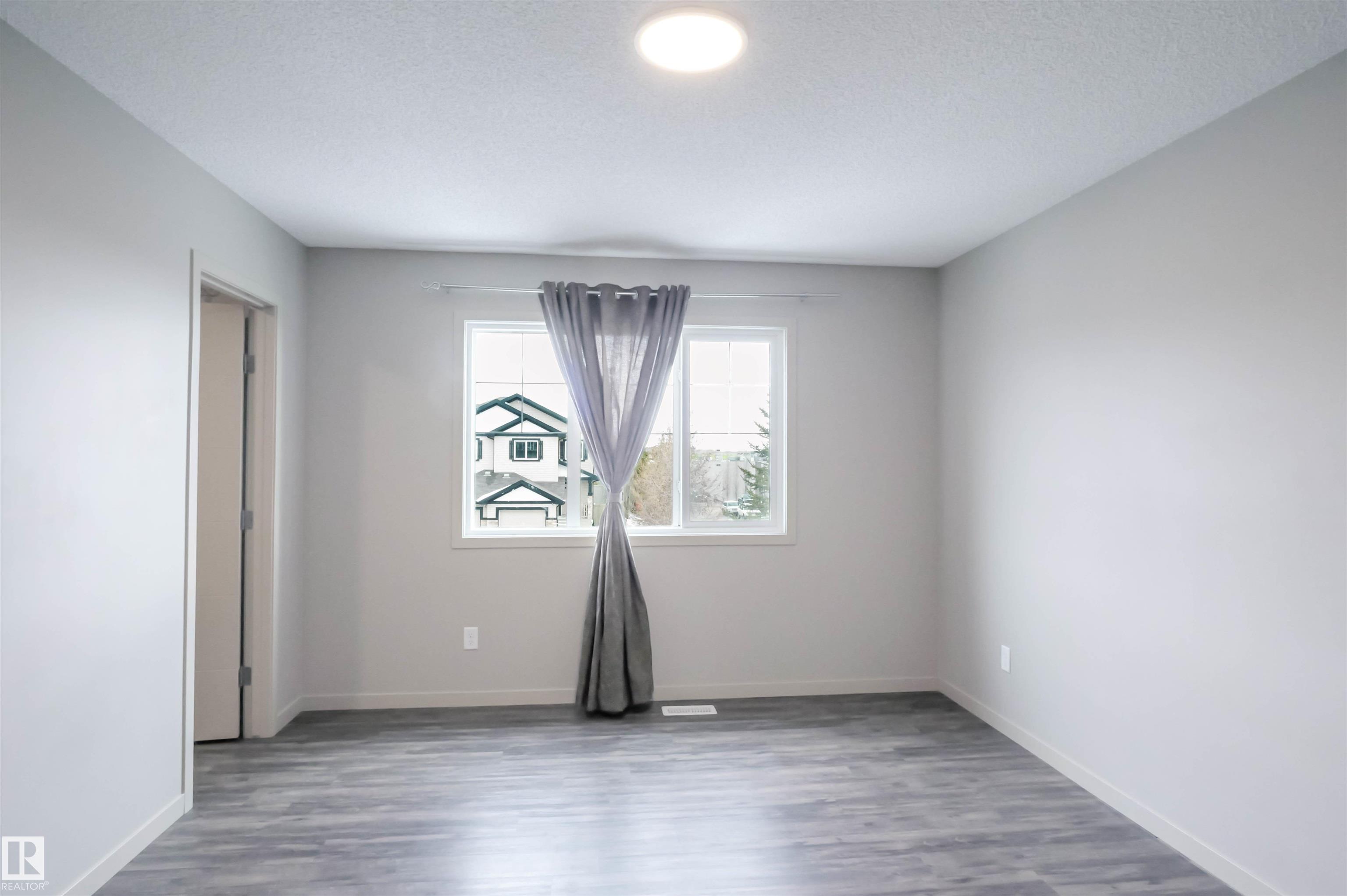 Welcome to this immaculate 2017-built half-duplex in Tamarack! Offering over 1,600 sq. ft. of stylish living space, this home feels like a true single-family house with modern upgrades throughout. Inside, enjoy a bright, open-concept main floor featuring spindle railings and luxury vinyl plank flooring—no carpet anywhere! The stunning kitchen boasts quartz counters, a gas range, stainless steel appliances, and ample cabinetry. The dining and living areas are perfect for entertaining. Upstairs, three generous bedrooms await, including a primary suite with walk-in closet and spa-like 4-piece ensuite. Upstairs laundry adds convenience. The basement is a blank canvas, waiting for your personal touch. Enjoy year-round comfort with an HRV system and water softener. The fully fenced backyard features a deck, ideal for summer BBQs. Located in a quiet complex, you're steps from schools, parks, and shopping. Commuters love easy access to Whitemud Drive and Anthony Henday. This upgraded gem won't last long.