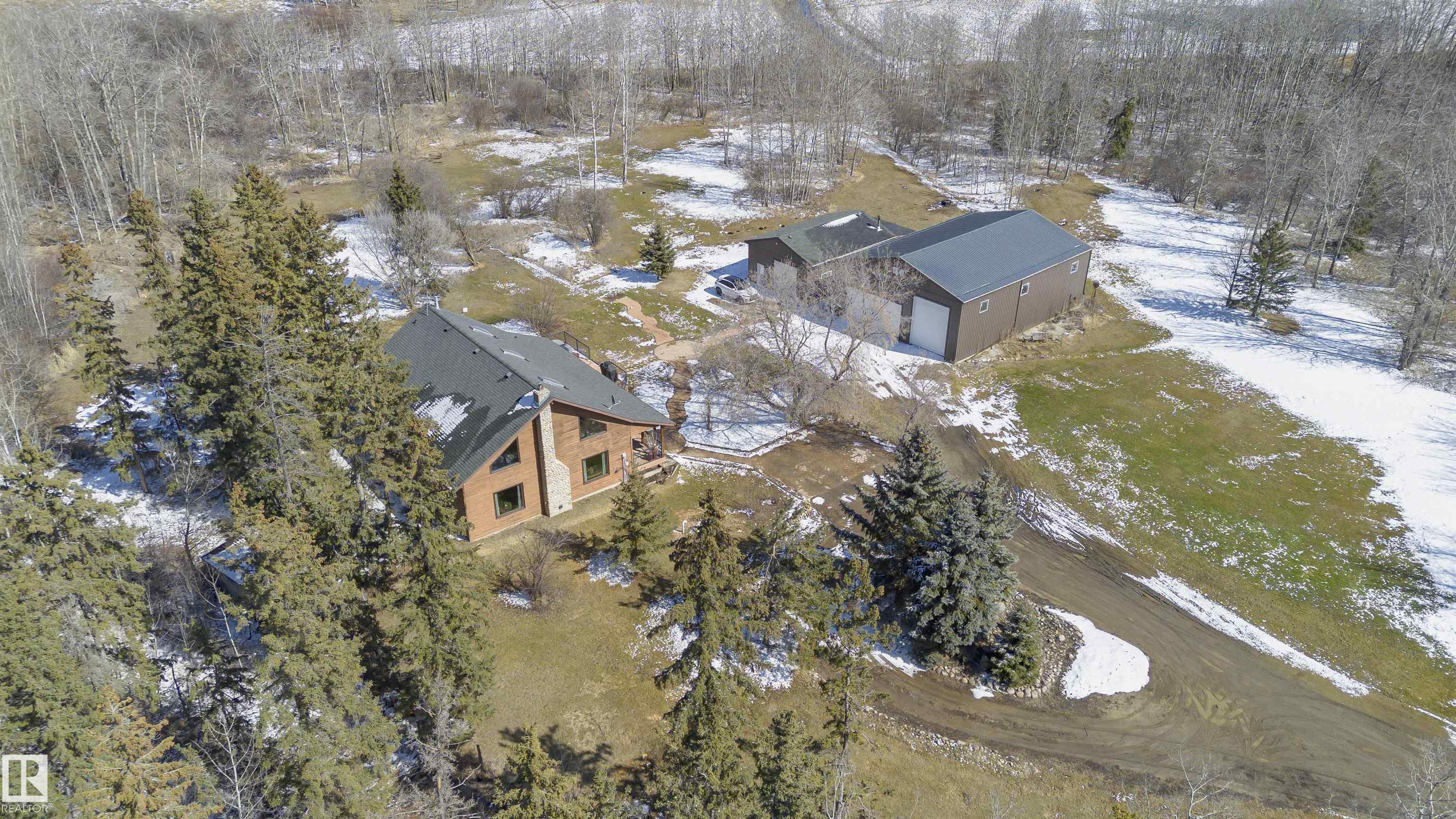 Offering over 2,800 sqft of living space, this lodge-style home features soaring vaulted ceilings, warm wood throughout, and a stunning open-to-below design that makes an immediate impression. The main living area is anchored by a beautiful stone fireplace, while the open kitchen and dining space are ideal for hosting and everyday living. Upstairs, the primary suite feels like a private retreat, complete with a freestanding wooden tub and rustic finishes that add to the home’s character. Two additional bedrooms provide great space for family or guests, and the loft overlooking the main level offers flexible space for relaxing or accommodating visitors. Outside is where this property really separates itself. A massive 42x60 pole shed offers incredible storage, while the 24x36 heated shop is perfect for anyone needing a workspace—whether for projects, toys, or hobbies. With space, privacy, and features that are getting harder to find, this property delivers both lifestyle and utility in one package.