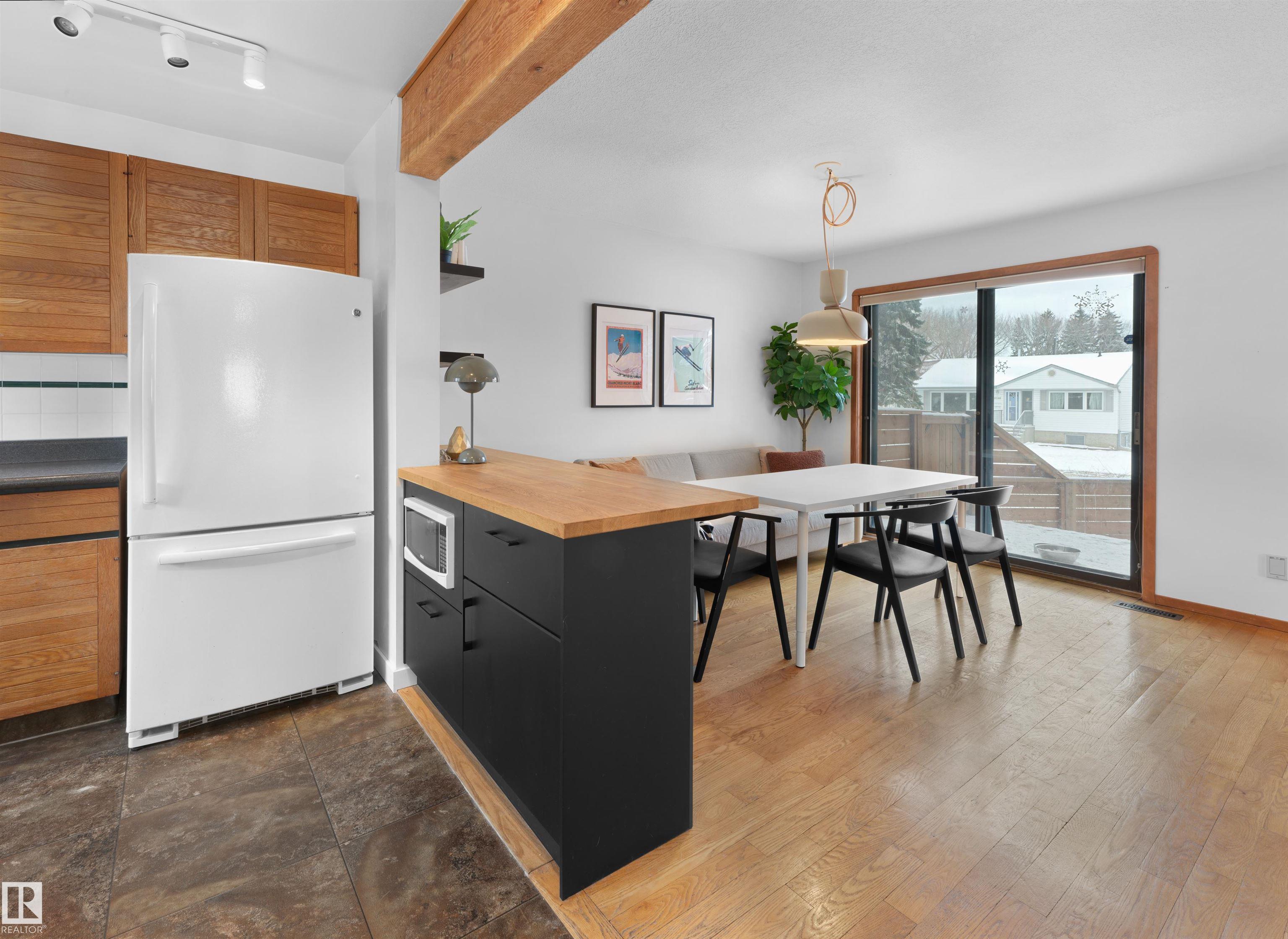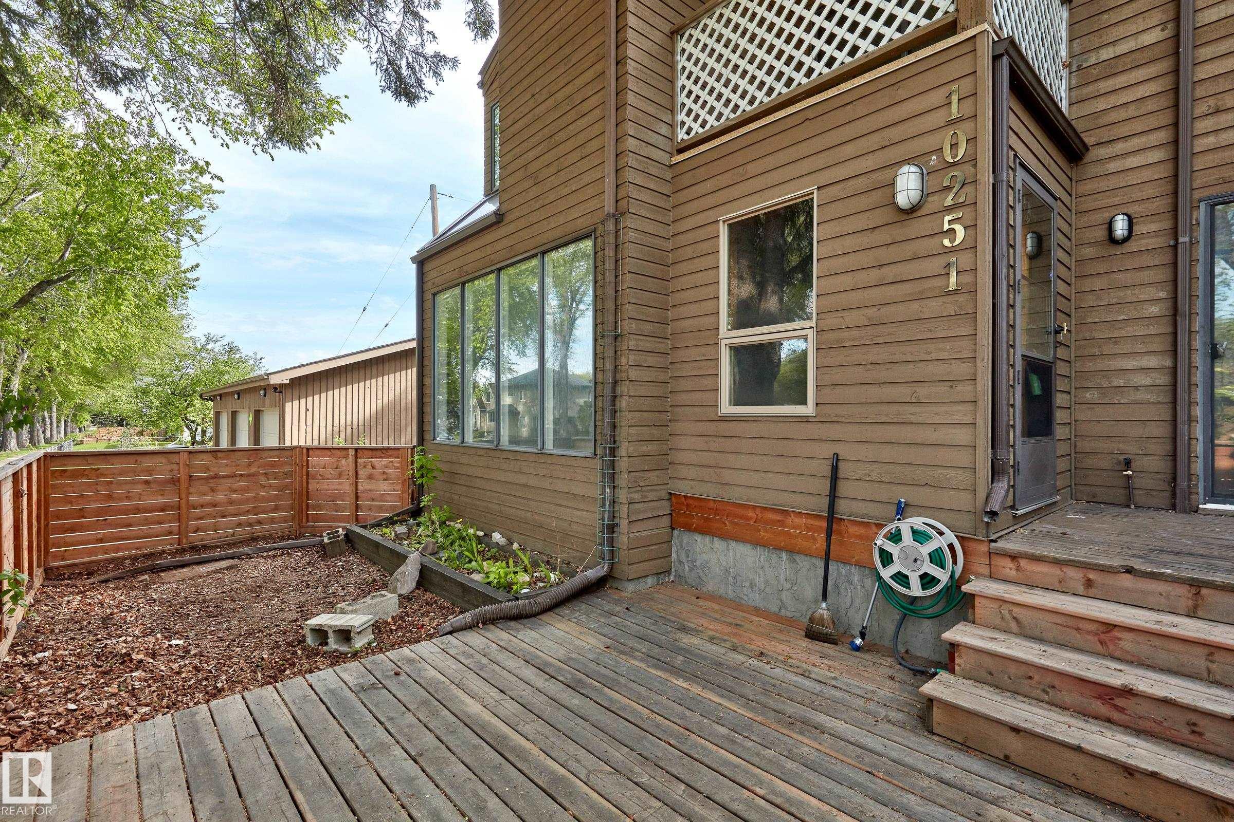 Vaulted cedar ceilings. Walls of glass. A ravine two blocks away. This isn't your typical townhouse. One of 3 units in a boutique 2-storey executive project, this Scandinavian-inspired home delivers over 2,350 sq ft, 4 beds, 2 full & 2 half baths, & unique N/W/E exposures. More finished space & more bathrooms than most single-family detached homes in the area, with the design aesthetic to back it up. The main floor opens to a living room w/ wood-burning fireplace, open-concept kitchen, dining room, & half bath. Upstairs, the primary suite features vaulted cedar ceilings, large windows, a 3-pc ensuite, & his/her closets. Two more generous bedrooms & a full bath complete the upper level. The finished basement adds a rec room, large flex room or 4th bed, storage, & half bath. Outside: a west-facing private courtyard w/ turf, a 2nd-level balcony, a gas BBQ hookup, & a single detached garage. Steps from the ravine, minutes to downtown, U of A, & Whyte Ave. Low fees. Low maintenance. More home than expected!
