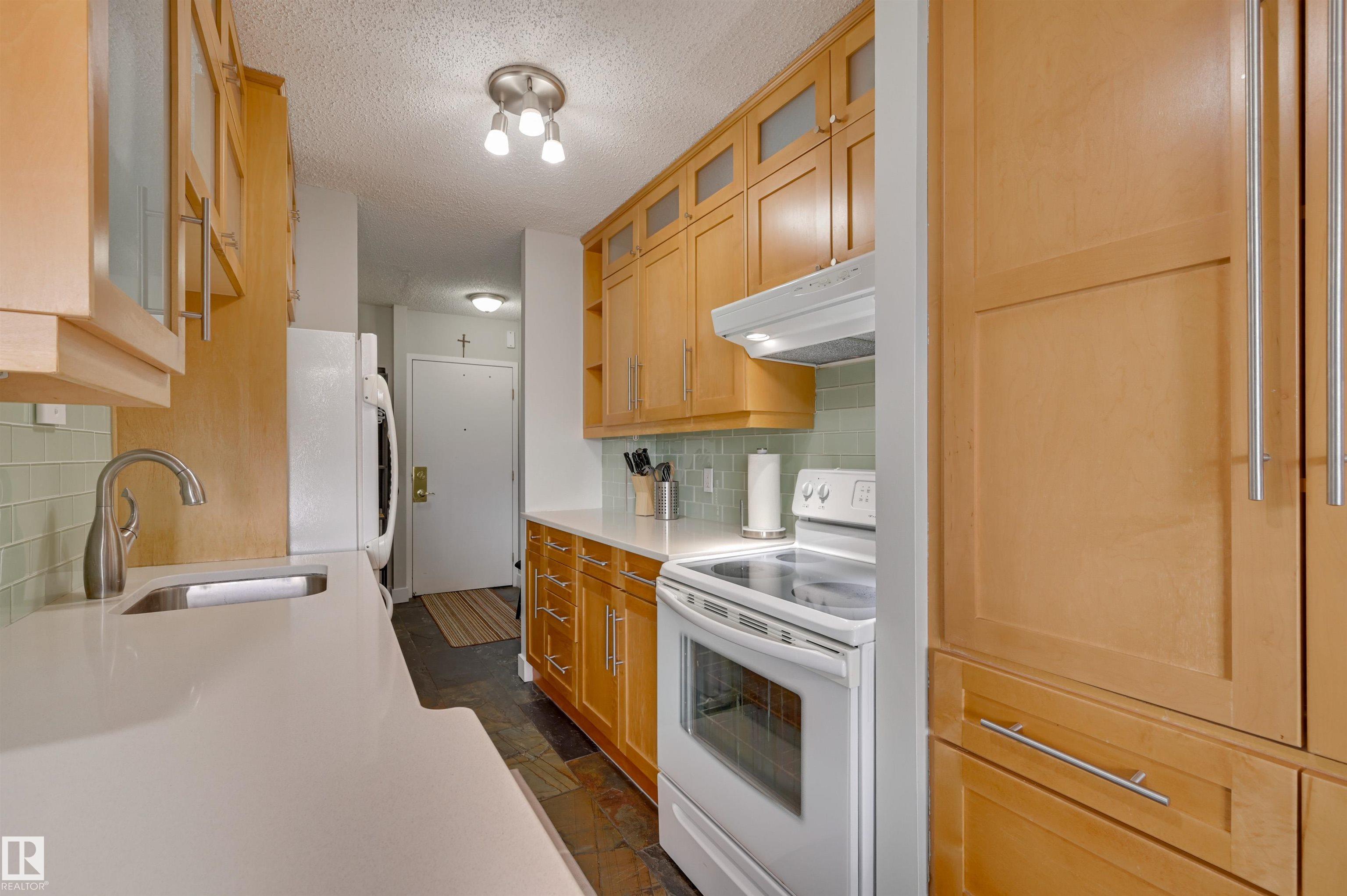 Bright, spacious, and beautifully updated 2-bedroom condo just steps from the Government Centre LRT—offering effortless access to the U of A, downtown, and beyond. Ideally situated near the River Valley trails, this condo combines urban convenience with outdoor living. Both bedrooms are generously sized, with the primary featuring a full ensuite. Recent upgrades include newer flooring, a modernized kitchen, updated bathrooms, and fresh paint throughout. Enjoy the east-facing views of the Legislature and River Valley from the large private balcony. The building features excellent amenities, including a social room with outdoor patio, plus a lounge with billiards, darts, and shuffleboard. Complete with in-suite laundry and additional storage—an exceptional opportunity in a prime location.