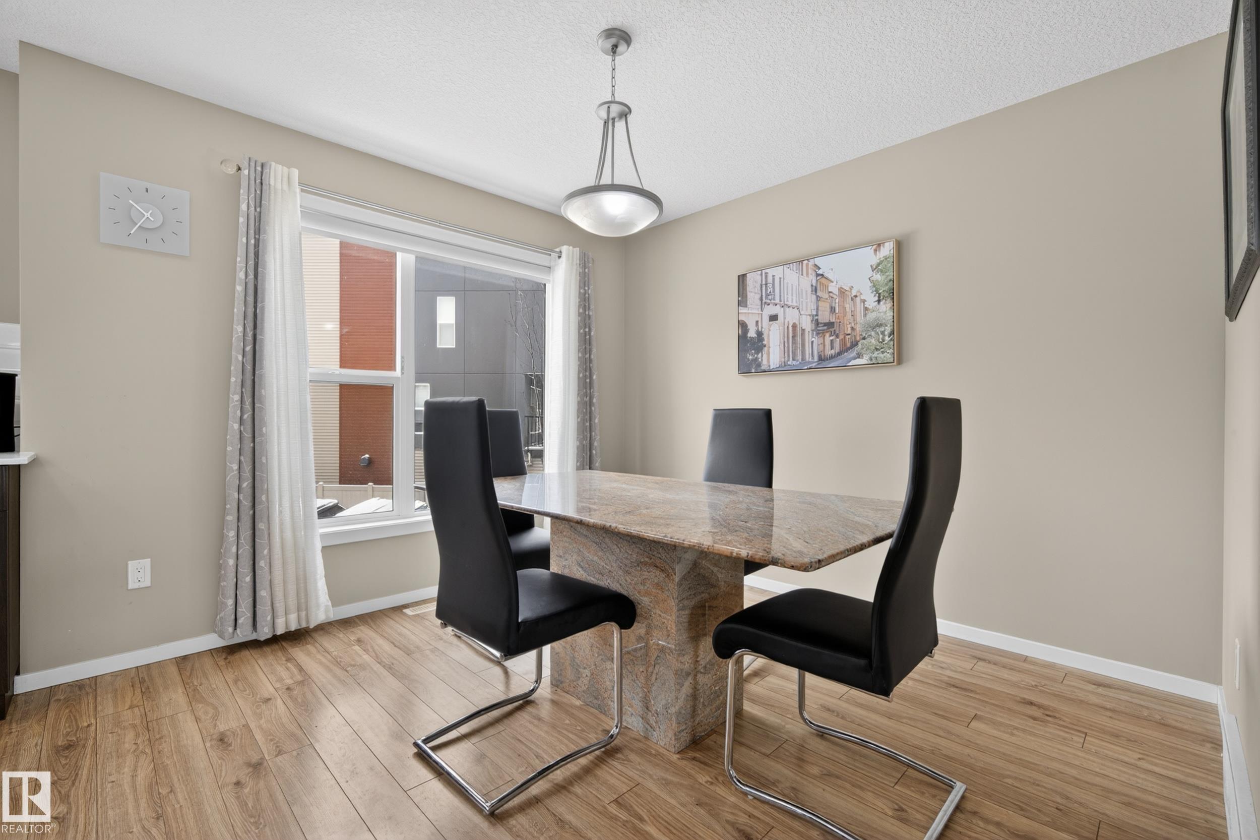 END UNIT townhouse in Rosenthal with high ceilings and windows bringing in all the natural light. The OPEN-CONCEPT main floor is made for hosting—or pretending you have your life together while guests are over. Upstairs offers 3 bedrooms, including a primary with ensuite and CENTRAL A/C keeping things cool when summer hits. With 2.5 bathrooms throughout the home, sharing is officially optional. Original owner home loaded with an upgraded builder package—think upgraded carpets, appliances, and blackout blinds already done for you because who has time for that after moving? The OVERSIZED double attached garage fits a full-size truck AND your extra stuff—no sacrifices required. Backing onto a walking trail to the lake, with a SOUTH-facing balcony that’s about to become your personality trait. Morning coffee, sunset wine, repeat! With quick access to two lakes, parks, future school & sports centre and easy commute routes to get you where you need. Stylish, functional, and just the right amount of extra!