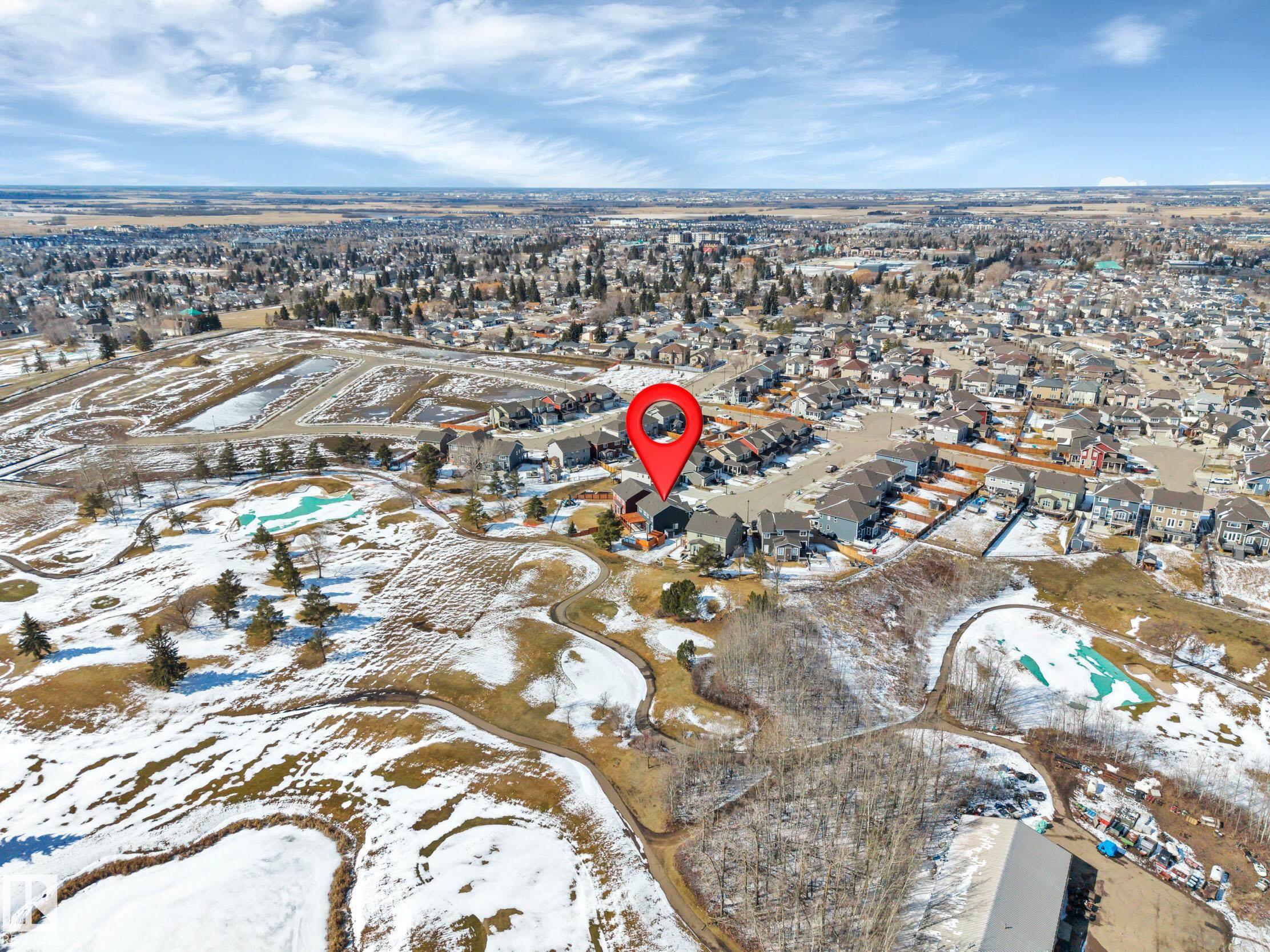 Tucked away in a quiet cul-de-sac on a rare pie-shaped lot, this exceptional 2-storey in Beaumont backs directly onto Coloniale Golf Club, offering privacy and stunning views. With over $150,000 in upgrades, this home showcases a bright, open-concept layout designed for both everyday living and entertaining. The dream kitchen features two-tone cabinetry, quartz countertops, a double farmhouse sink, oversized pantry, and island wine fridge. A striking barn door leads to the heated double attached garage. The main floor is complete with a cozy gas fireplace and remote-control blinds throughout. Upstairs offers a sun-filled bonus room, two bedrooms connected by a 5-piece Jack & Jill bath, and a spacious primary retreat with walk-in closet and luxurious 5-piece ensuite, including a jetted tub and oversized shower. Step outside to an incredible backyard oasis with an expansive 1,800 sq ft deck, hot tub, and outdoor heaters—perfect for year-round enjoyment.