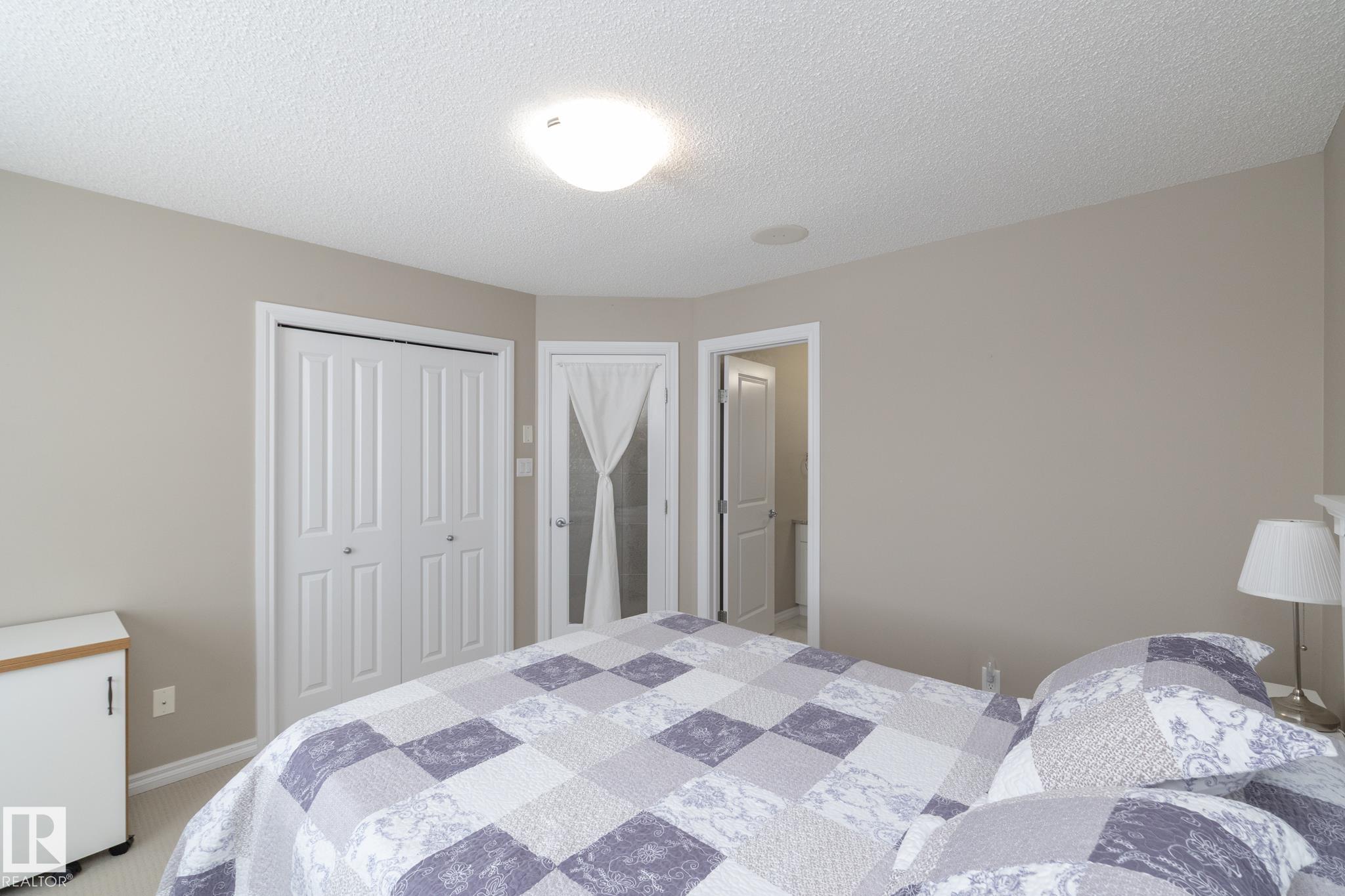 Downsizing? Professional couple? Affordability without compromise. Immaculate, original-owner home built by Encore Homes offering upgraded, move-in-ready living in a prime Leduc location. Spacious kitchen perfect for the aspiring chef w/granite counters & corner pantry, gleaming hardwood floors, cozy gas fireplace & added windows that flood the main floor with natural light. The upper level offers DUAL PRIMARY SUITES, each w/full ensuite—one w/a spa-inspired bath, corner soaker tub, oversized glass shower & walk-in closet; the other w/a 4-pc ensuite & oversized closet. A generous flex space is ideal for a home office. The FULLY FINISHED basement includes a family room, 4-pc bath & laundry w/sink & built-in storage. Enjoy west-facing SUNSET VIEWS from the large deck BACKING GREEN SPACE, fully fenced yard & direct side lane access—perfect for future RV or boat storage. HEATED oversized garage & CENTRAL A/C complete the package. Quick access to EIA, shopping & walking trails. Virtually enhanced