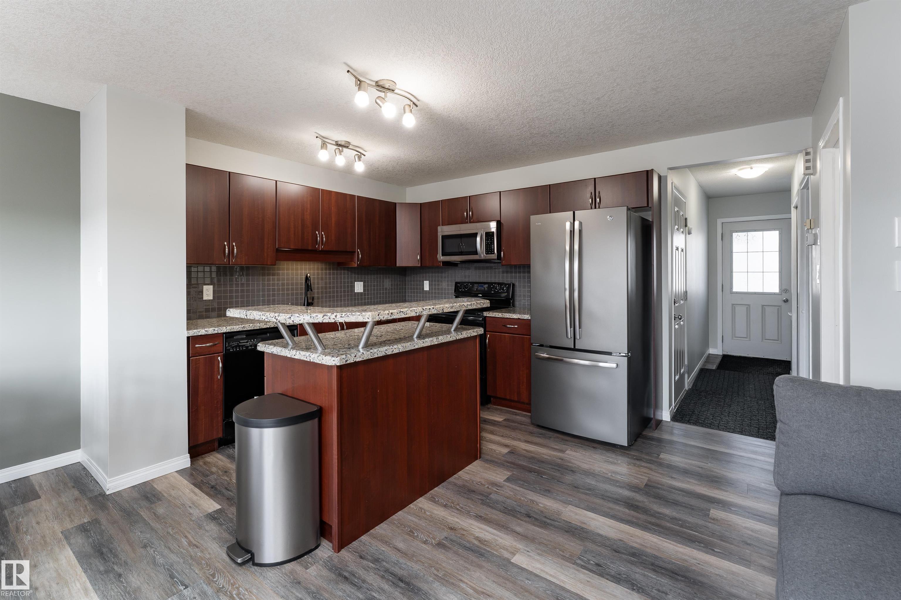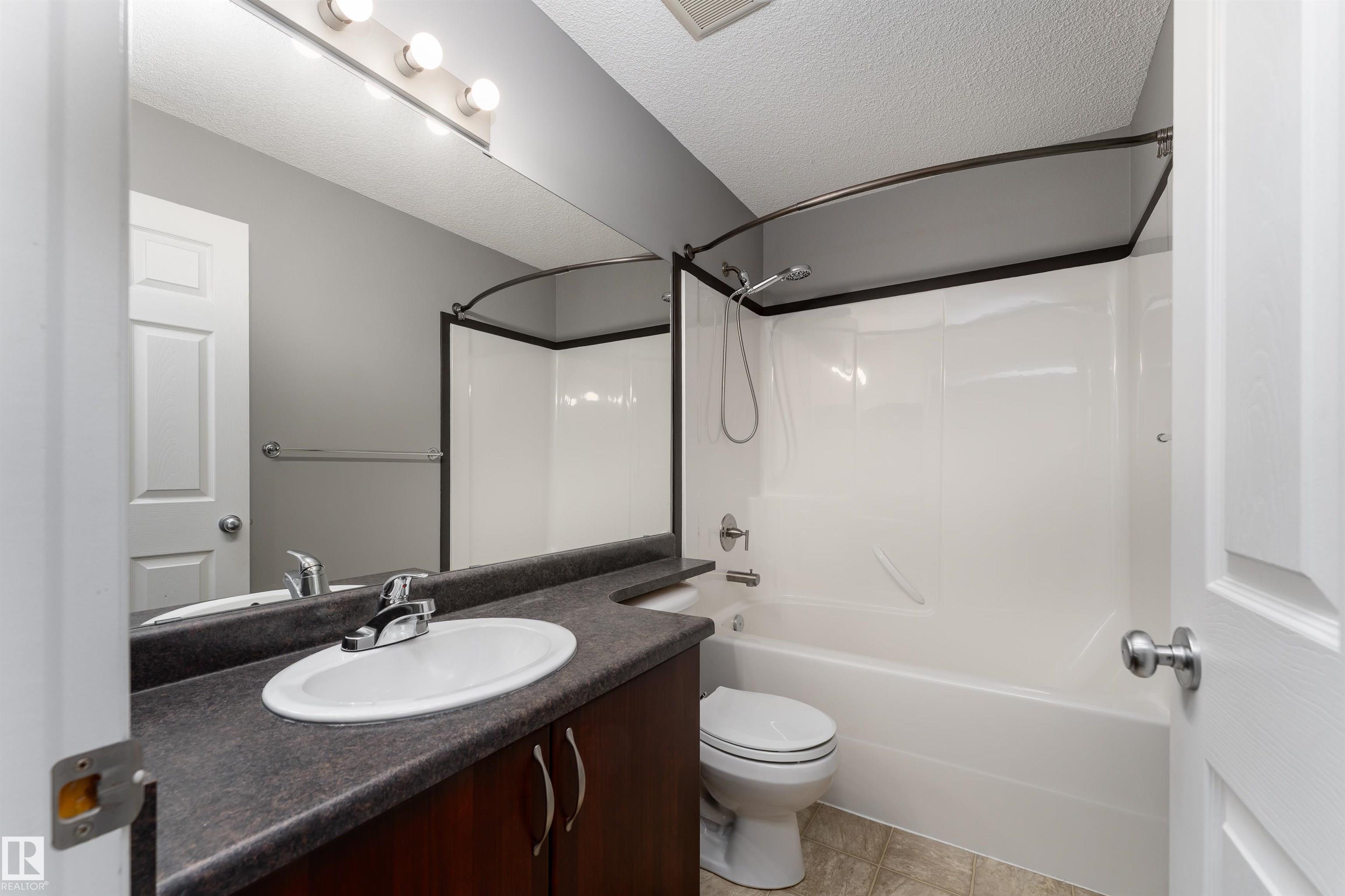 Calling all FIRST TIME HOMEBUYERS and growing families! Situated in the desirable community of Charlesworth, come see this turnkey starter home complete with a FINISHED BASEMENT, CENTRAL A/C, and fully landscaped SOUTH FACING backyard with an eye-opening two-tier composite and cedar deck, along with your own fire pit. Inside, the main floor greets you with an open concept design, complemented by abundant natural lighting, luxury vinyl plank flooring, and gas fireplace. The kitchen boasts GRANITE COUNTERTOPS with a matching kitchen island, stainless steel appliances, and plenty of cabinet space. Upstairs, the generously sized primary bedroom contains TWO WALK-IN CLOSETS and 4PC ENSUITE, while the equally spacious secondary bedroom features his and hers closets. The fully finished basement completes the home with a renovated modern family/rec room, and a spacious laundry room for additional storage. Very accessible to Anthony Henday, shopping, schools, and other amenities.
