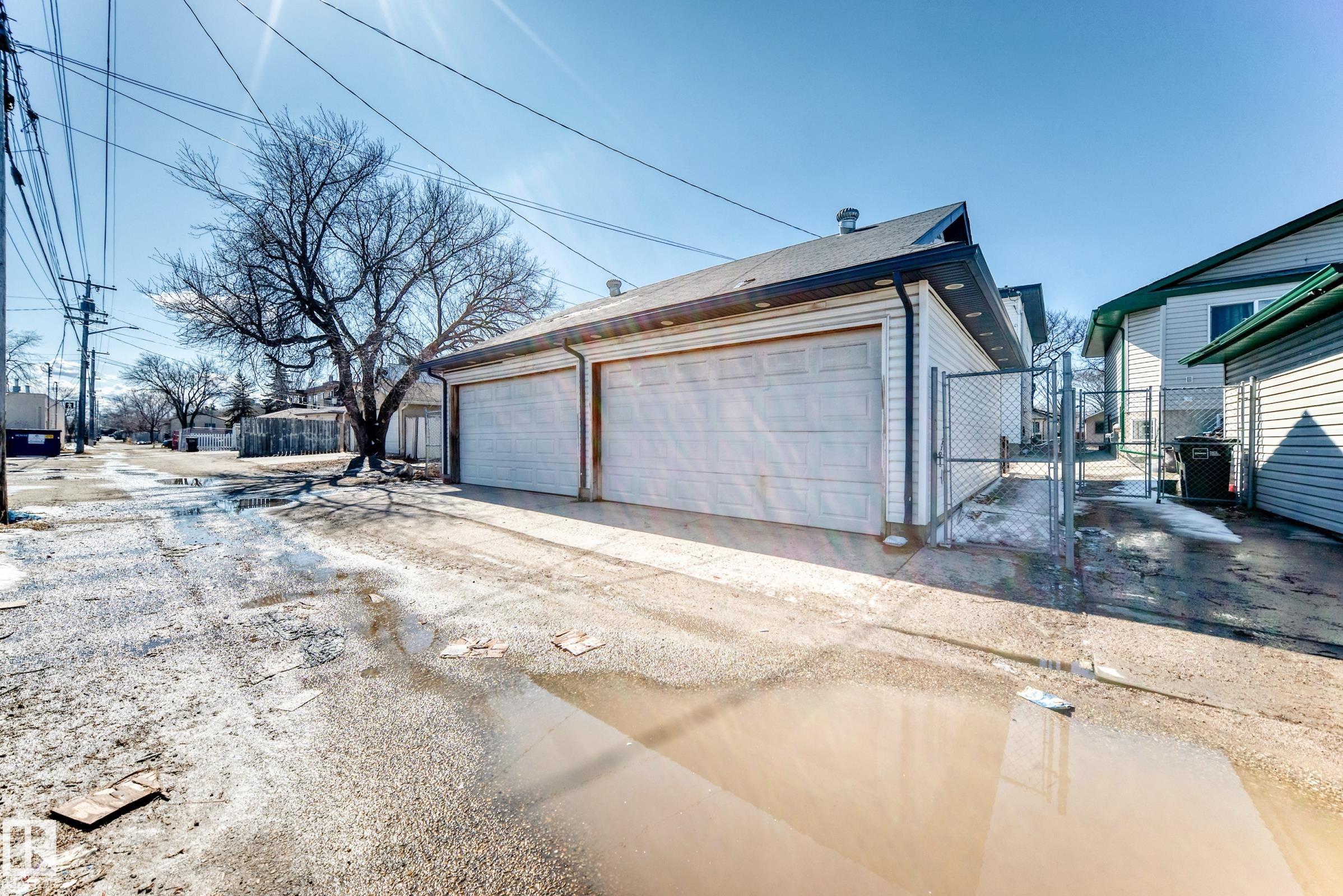 Parkdale 3+1 bedroom 2 storey half duplex just waling distance to all shopping, schools, and transportation. This home has fresh paint throughout the entire home which gives it a very welcome the bright and welcome feel. The main floor has a large living room area with a cozy fireplace. The kitchen offers and open feel with NEWER appliances, oak cabinets and a formal eating area. The upper level has 3 spacious bedrooms and 4 piece bathroom. The basement is partially finished with NEW hot water tank in 2024, and open area and an additional bedroom. The property is fully fenced outside with a private yard and the double detached oversized garage has opener and controller with a LOFT for additional storage. The home is centrally located near downtown, NAIT, major amenities, and transit. This is a great opportunity to move into a newer home in a mature neighborhood. Great investment property or for the first time buyer