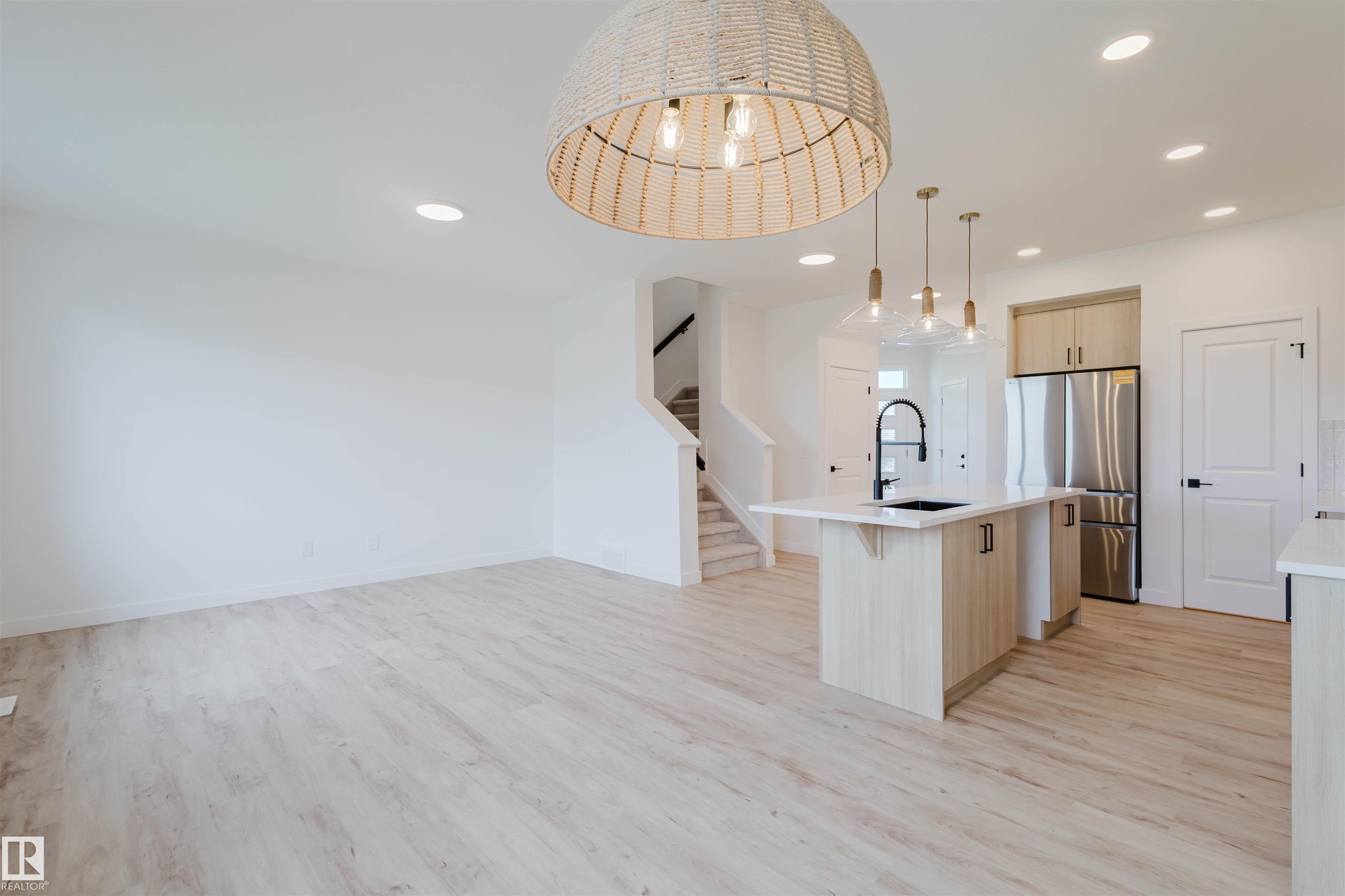 GREENSPACE BACKING! Experience the best in the community of Cherot, connected to trails and nature. This exquisite 3-bedroom, 2.5-bathroom duplex offers the perfect blend of style and functionality. Step into the open-concept main floor with soaring 9’ ceilings and half bath. The upgraded kitchen boasts quartz countertops, sleek cabinets, a pantry, and a waterline to the fridge for added convenience. Upstairs, you’ll find a versatile flex area, a spacious laundry room, a full 4-piece bathroom, and 3 generously sized bedrooms. The master suite is a private retreat, complete with a walk-in closet and ensuite with double sinks! Additional features include a separate side entrance, legal suite rough ins, FULL LANDSCAPING, DOUBLE attached garage, unfinished basement with painted floors, 3K appliance allowance, triple-pane windows, and a high-efficiency furnace. Buy with confidence—built by Rohit. UNDER CONSTRUCTION! Photos may differ from actual property. Appliances NOT included.