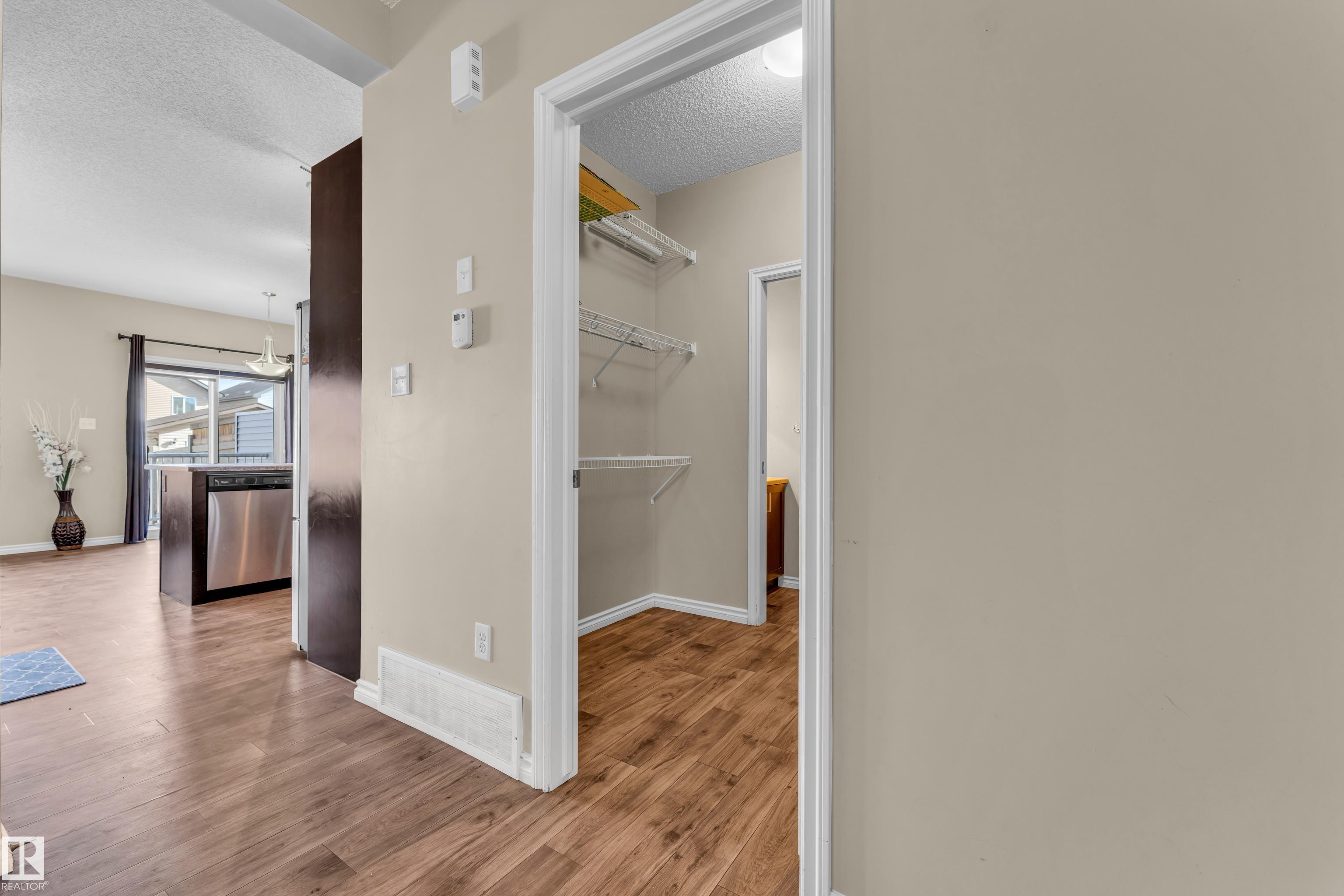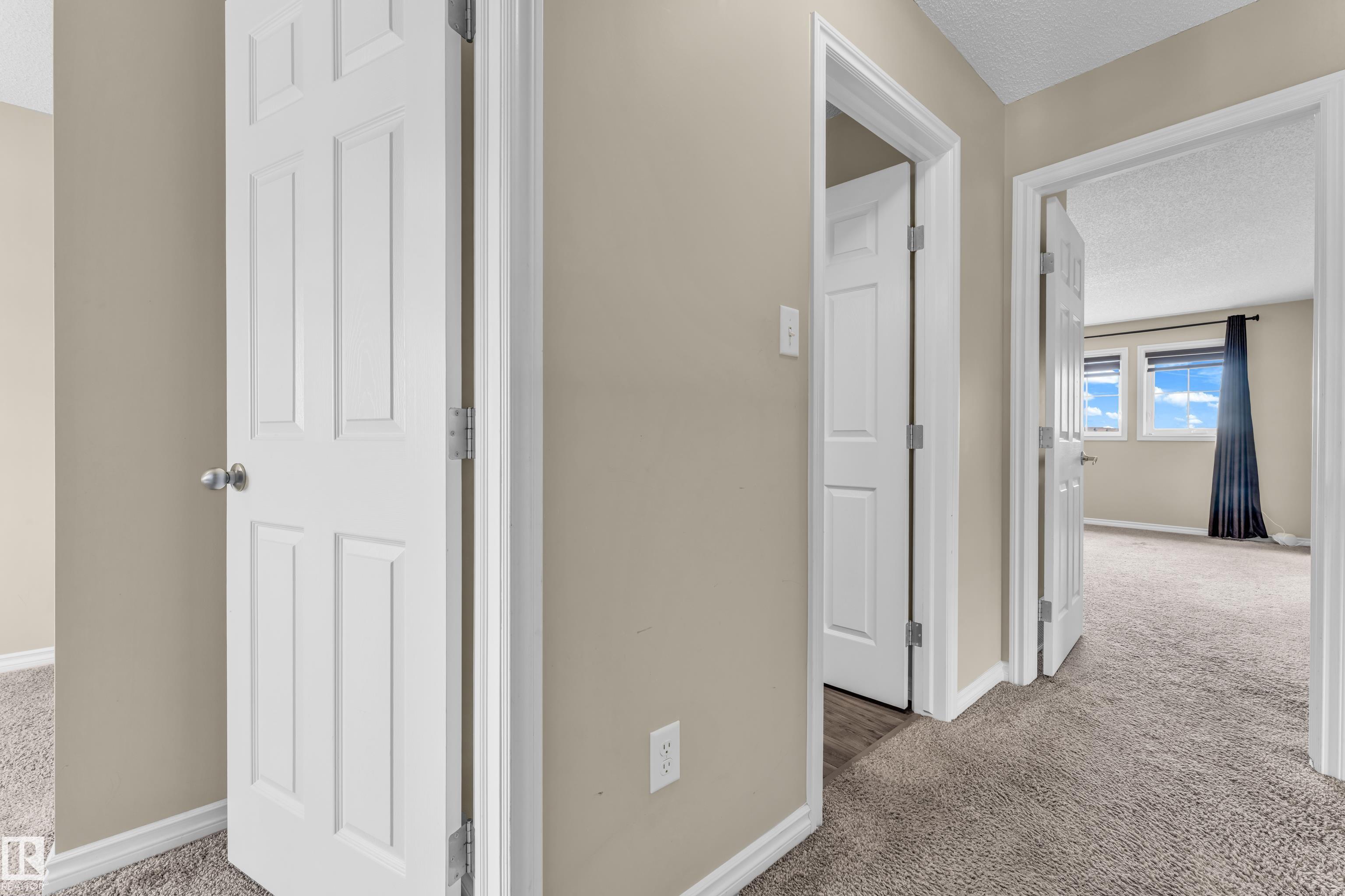 Beautifully maintained half-duplex offering excellent value in the desirable community of Laurel Green. This 2-storey home features 1,371 sq. ft. of living space with 3 bedrooms, 2.5 bathrooms, and a double front attached garage. The main floor offers a spacious layout with laminate flooring, cozy gas fireplace, stainless steel appliances, and a large pantry. The upper level includes three generous bedrooms, a full bathroom, and a bright primary bedroom with walk-in closet and 4-piece ensuite featuring double sinks. All appliances and window coverings are included. Enjoy a fully fenced yard with maintenance-free composite deck, perfect for outdoor living. Conveniently located within walking distance to Svend Hansen K-9 School and just minutes from Anthony Henday access. Quick possession available. A must see!