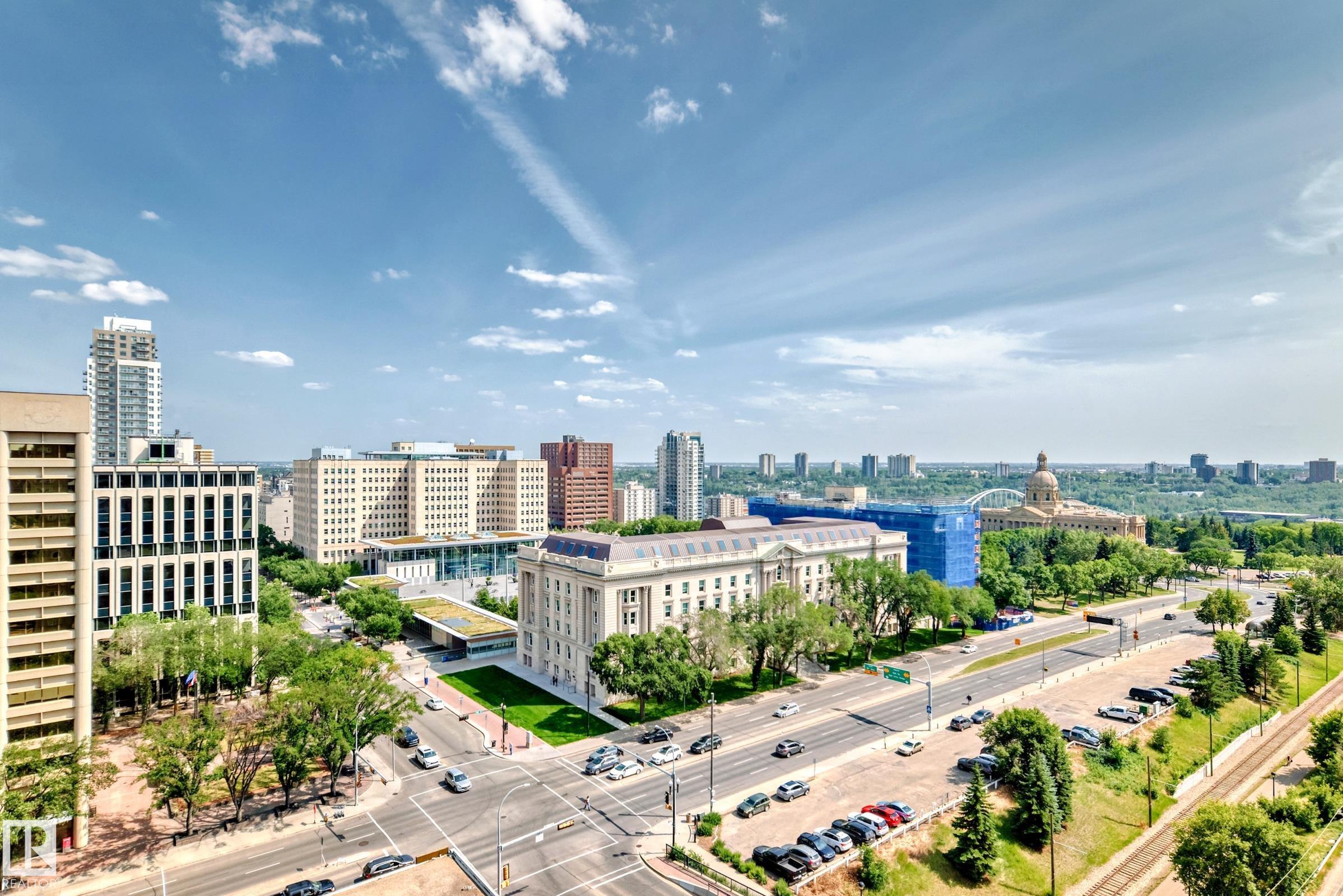 This newly-upgraded 3 bedroom, 2 full bath condo in Westcliff Arms offers fantastic views of the Legislature, city skyline, and Canada Day fireworks. This effectively managed, quiet concrete building only has 4 units per floor. This corner, 16th floor unit boasts beautiful dark flooring, upgraded kitchen cabinets, countertop, backsplash, appliances and paint. Bright and open with nearly 1100 sq ft featuring in-suite laundry, newer oversized patio door and all windows. Lots of storage in the unit, plus two extra storage cages in front of the 99-year leased underground parking, and a titled outdoor parking stall. Condo fees include heat, power, water/sewer and amenities: exercise room, party room, game room and saunas. Government Centre LRT station is right at your door, close to river valley, walking/bike paths, High Level streetcar, excellent restaurants, and much more. Perfect for families, investors, or students.