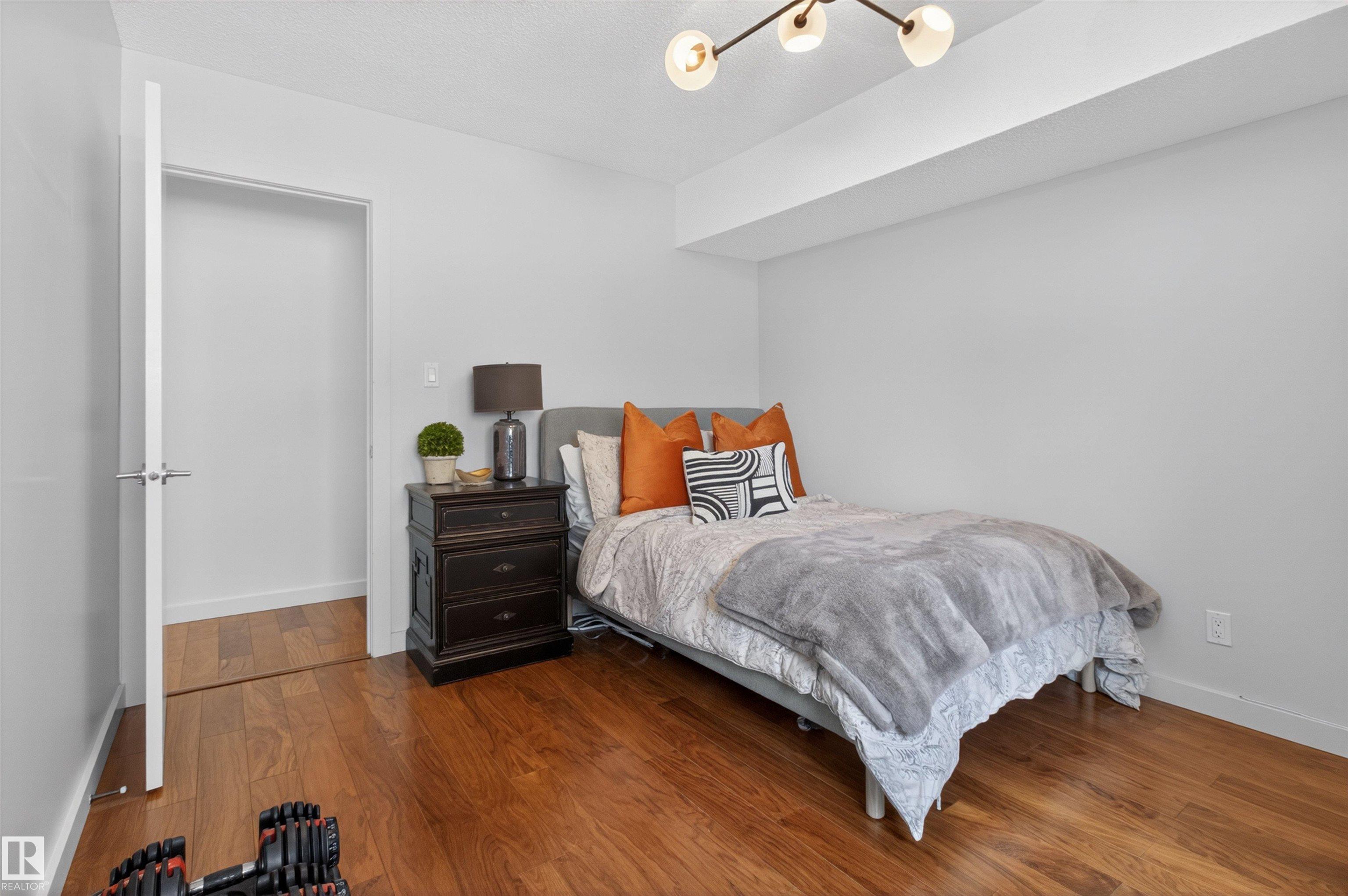 Vibrant downtown living in this fully renovated, air conditioned top floor condo offering over 1,100 sq ft of stylish space. This bright unit features 2 bedrooms, 2 bathrooms, and 2 titled heated underground parking stalls. A spacious front entry welcomes you into the open dining area, large enough to host family and friends, flowing into a functional kitchen designed for easy entertaining. The expansive living room offers plenty of room to relax and provides access to a private covered balcony. Down the hall you will find a 4 PC main bath, a generous second bedroom, and a comfortable primary suite complete with a walk in closet with built in organizers and a 3 PC ensuite. Additional highlights include in suite laundry, two large storage rooms, new AC (2023), new washer and dryer (2025), new window coverings, fresh paint throughout, new balcony flooring, and new kitchen plumbing (2026). Ideally located just steps to local cafes, restaurants, the River Valley, and a quick commute to downtown.