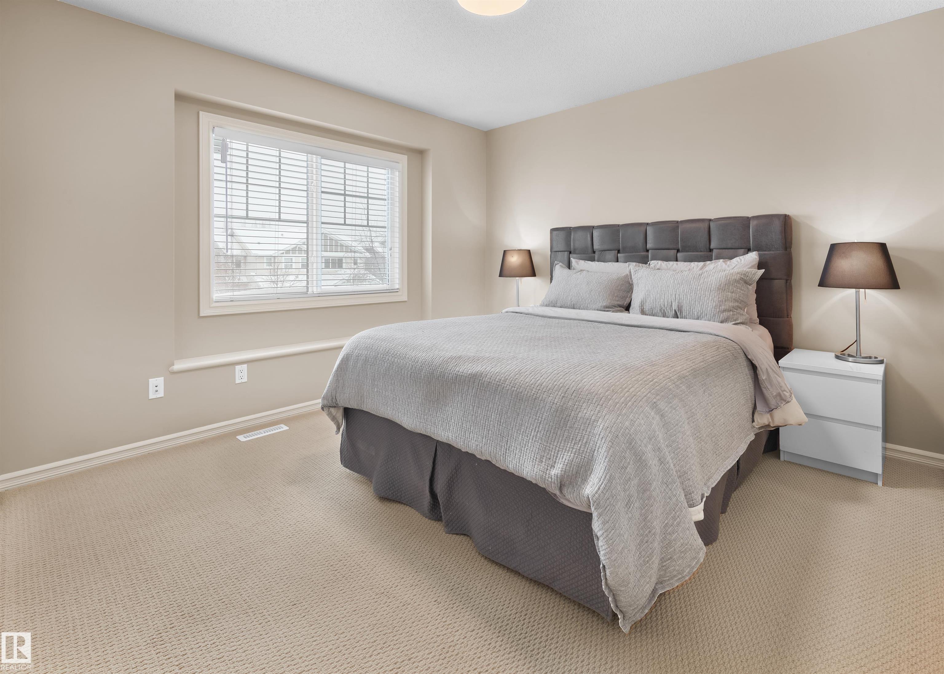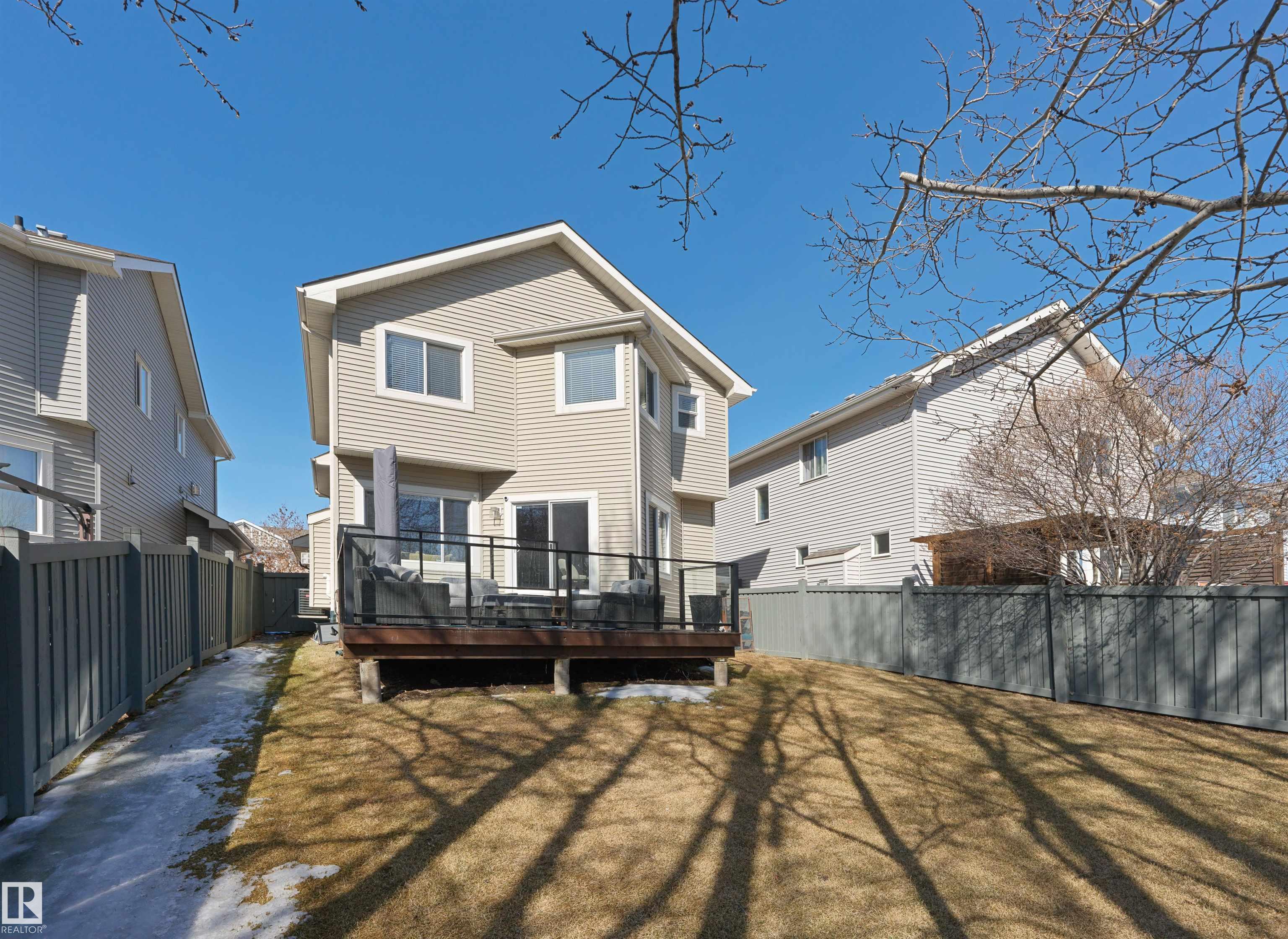 Finding a move-in ready home that actually backs onto a treed walking trail with no direct rear neighbours? That list is short. This is one of the few. This 3-bed + den, 2-storey in Copperwood has been done right: hardwood and tile on the main floor, 9-ft ceilings, gas fireplace, granite countertops, upgraded stainless steel appliances and central AC. Meticulously maintained throughout. Upstairs, the bonus room is massive with vaulted ceilings. The primary suite has a walk-in closet, soaker tub, stand-up shower and private water closet. Out back, a two-tiered deck overlooks a landscaped yard with underground sprinklers and a private treed backdrop. The basement is a blank canvas ready when you are. The location delivers: Bessie Nichols, Sister Annata Brockman (both K-9) and a planned high school just down the road, Lewis Farms Rec Centre underway, Grange District Park, Costco, shopping, dining and quick access to the Henday and Whitemud. That short list? This is the one.