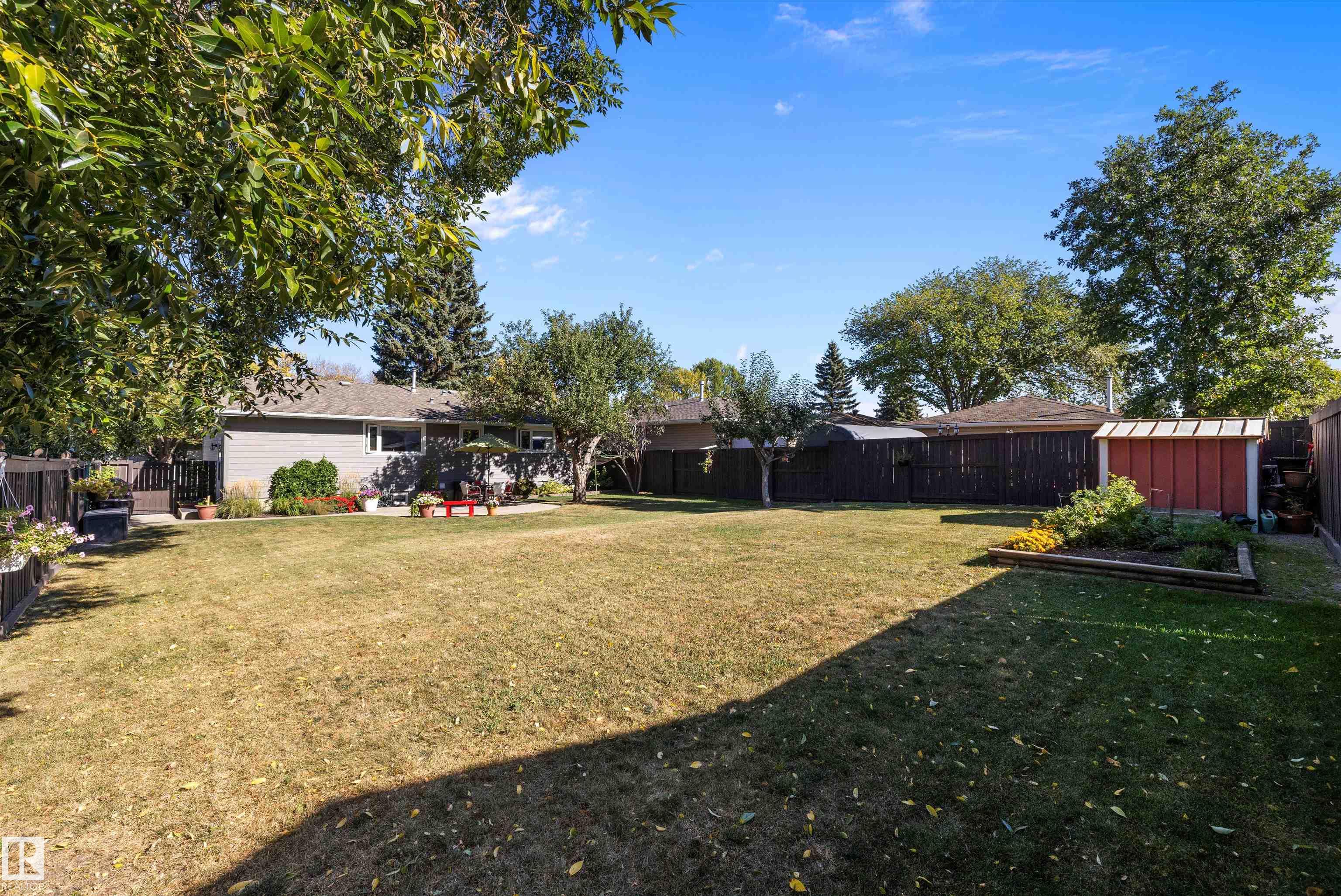 Affordable Luxury in Mills Haven! This beautiful bungalow has been meticulously looked after and has had plenty of upgrades over the years! The RENOVATED CUSTOM kitchen is a true standout, featuring granite countertops, stainless steel appliances, and a large eat-in island ideal for both everyday living and entertaining. The main floor offers well-sized bedrooms, including a primary suite with a convenient ensuite. Downstairs, the fully finished basement boasts a massive rec room with a built-in bar, a den, additional bath, dining area and plenty of storage giving you all the extra space you need! Step outside to your private backyard retreat, complete with a spacious patio with a beautiful tree providin shade, perfect for relaxing or hosting summer gatherings. Walking distance to Madonna Catholic Elementary School, quick access to a plethora of restaurants and shoppes, Anthony Henday, grocery stores including Costco and the mall! A fantastic opportunity to own a move-in-ready home in a great location!