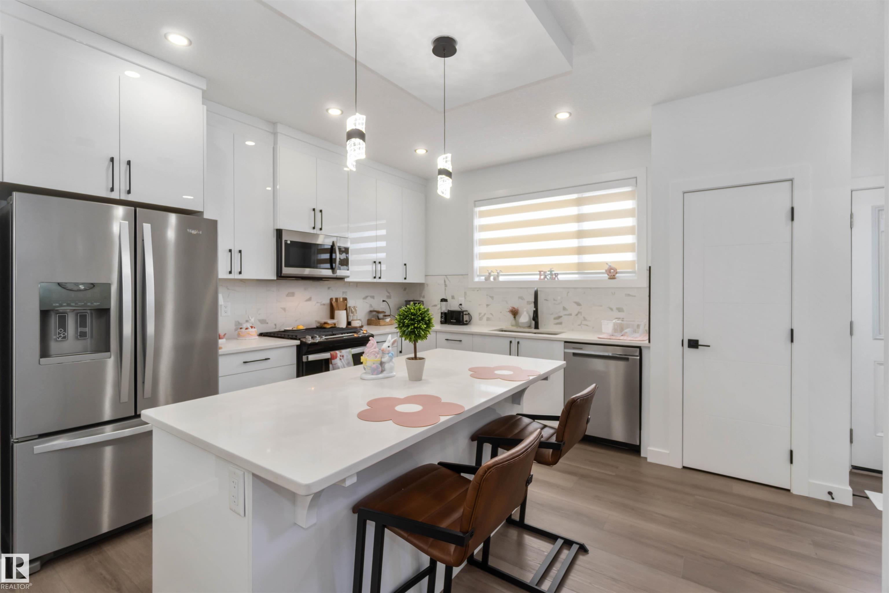 Welcome to this beautiful, bright, and nearly new home in the desirable Alces community. This well-designed property features 3 bedrooms and 2.5 bathrooms, including a primary bedroom with a great-sized walk-in closet. The convenient upstairs laundry room adds to the home’s thoughtful layout. The main floor offers an open space filled with natural light, complemented by a cozy fireplace, perfect for relaxing or entertaining. The kitchen is equipped with quality appliances, elegant marble countertops, and a stylish island that provides both functionality and a comfortable gathering space. The basement is almost finished, giving you a head start on additional living space, and includes 2 furnaces, an excellent opportunity for a future legal secondary suite. Located in a growing, family-friendly neighborhood, this home is a fantastic option for families or anyone looking for comfort, style, and potential all in one place.