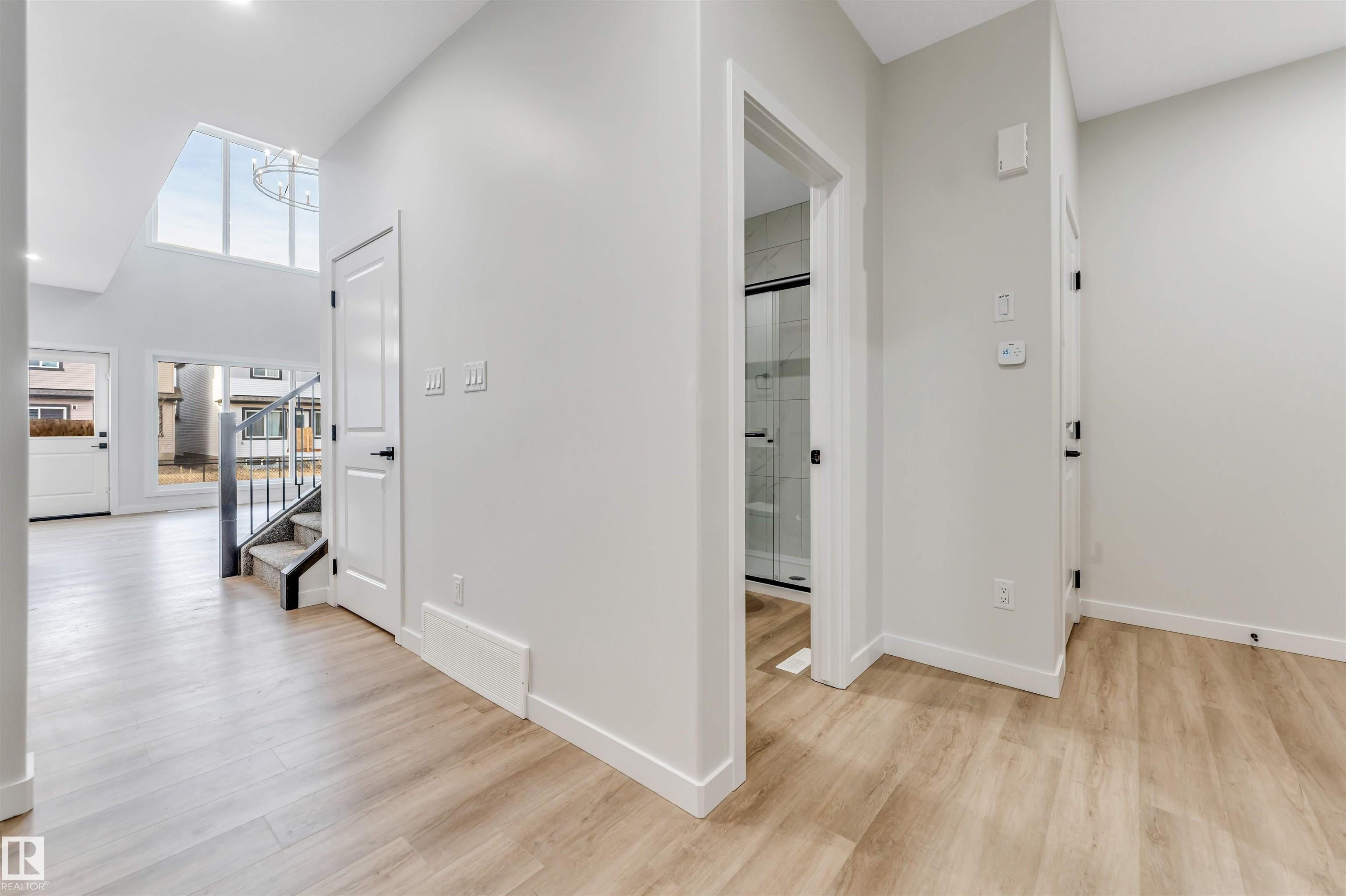 Welcome to this beautifully designed, trail-backing home by ART Homes, ideally located with quick access to Anthony Henday Drive, shopping, schools, and CFB Edmonton—offering the perfect combination of style, comfort, and convenience. This home features a bright, open-concept layout with 9-ft ceilings on both the main floor and basement. The impressive open-to-above great room is filled with natural light and showcases a modern electric fireplace with a striking feature wall—perfect for entertaining or relaxing. The main floor also includes a versatile bedroom, a full bathroom, and a chef-inspired kitchen complete with quartz countertops and full-height cabinetry. Upstairs, you’ll find a spacious bonus room providing additional living space, along with three generously sized bedrooms and a convenient upper-level laundry room. The primary suite offers a private retreat, highlighted by a spa-like ensuite featuring a tiled shower, freestanding tub, and dual vanities. Don't miss this great home!