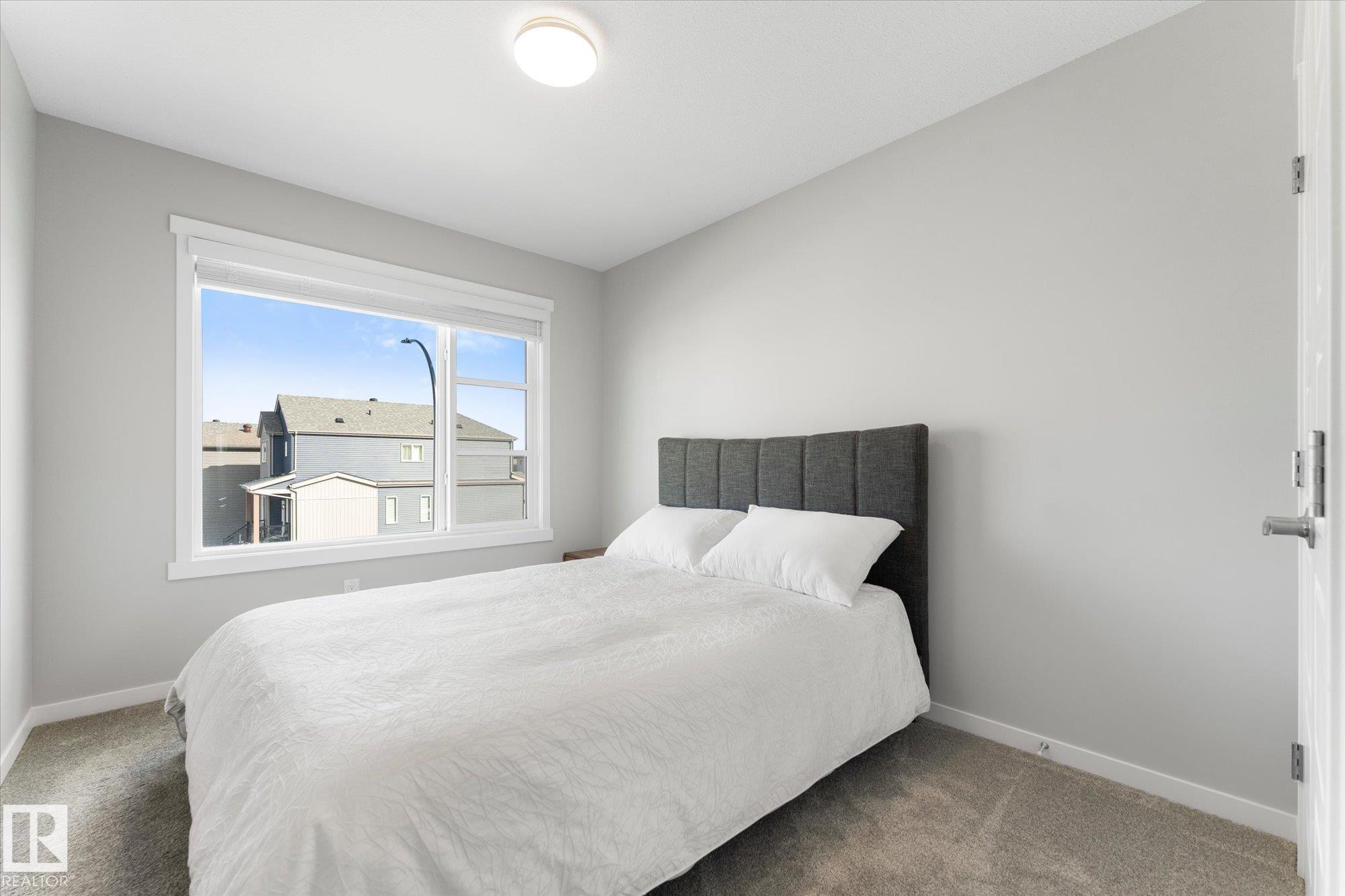 Built in 2024 by Coventry Homes, this stunning 2-storey offers over 2,100 sq ft of upgraded living space. Enjoy the comfort of central A/C and a home that is truly move-in ready from day one without the added time and expense of landscaping, fencing, and deck. The main floor features a bright, open-concept layout with upgraded flooring and a beautifully finished kitchen with quartz countertops, a large island, undermounted sink, stainless steel appliances, and a massive walk-through pantry. The spacious dining area overlooks the private backyard, while the mudroom provides convenient access to the insulated double attached garage. Upstairs offers 3 bedrooms, including a king-sized primary retreat with a stunning 5-piece ensuite featuring dual sinks, walk-in shower, deep soaker tub, and a large walk-in closet. A central bonus room and separate upper-floor laundry room complete the functional upper level. Quick access to HWY 16A and walking distance to all the amenities you will need! Welcome home!