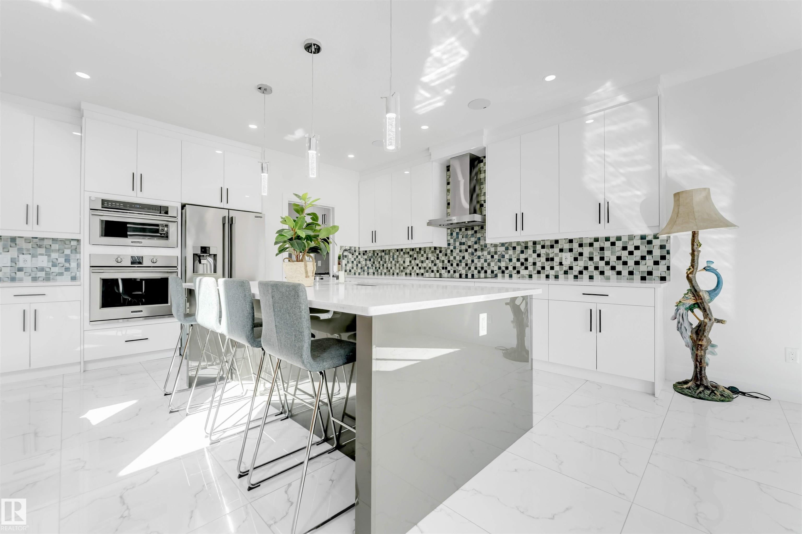 Welcome to this beautiful home featuring two Master bedrooms upstairs, Situated on a massive lot of over 9,000 sq ft. The main floor offers a stunning open-to-below living area, a spacious kitchen with a large island, and a separate spice kitchen equipped with a gas stove. Tile flooring runs throughout the main floor, which also includes a bedroom and a full bathroom. The home is equipped with upgraded appliances throughout. The second floor also features a bonus room, perfect for family living or entertainment. The second floor also includes a 3 bathrooms and 3 bedrooms one of which have jack and Jill doors and convenient laundry room with a sink. The basement includes a two-bedroom legal secondary suite with a separate entrance, ideal for generating rental income. The basement ceiling height is 9 ft, and the main floor also boasts 9 ft ceilings. Air conditioning is already installed. Gas line installed for BBQ. South backing Back yard offer two level Deck with gazebo installed.
