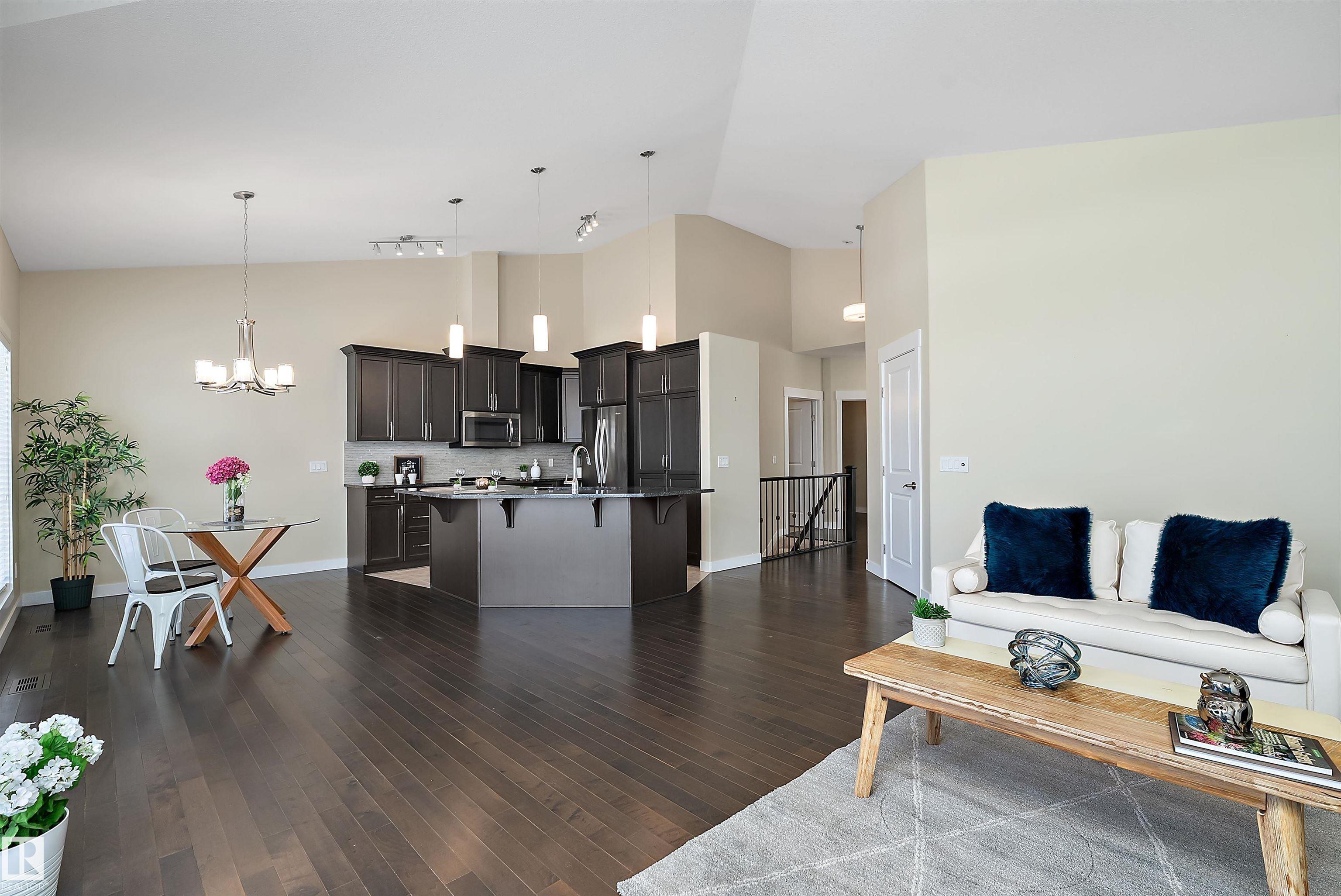 The pristine bungalow located in Rivers Edge Villas, a community for those aged 55 and above, features a beautifully finished WALKOUT basement that overlooks a serene pond. The open-concept main floor showcases vaulted ceilings and hardwood flooring, comprising a bright living room complete with a gas fireplace, a den or optional second bedroom, a laundry room, a full bathroom, and access to a spacious southwest-facing deck. The elegant kitchen is equipped with granite countertops, shaker-style cabinets, and an island with an eating bar. The generous primary suite offers 9-foot ceilings, a luxurious 5-piece ensuite bathroom, and a walk-in closet. The expansive basement includes a family room, a recreation area, a third bedroom, a full bathroom, and a storage room.
