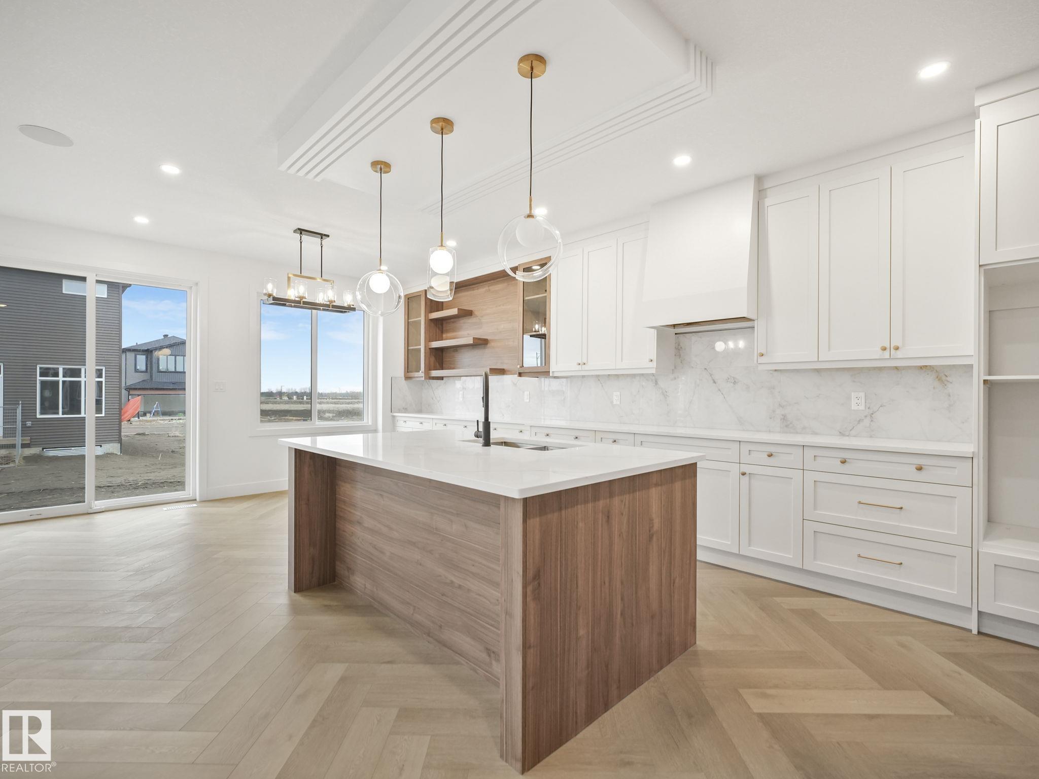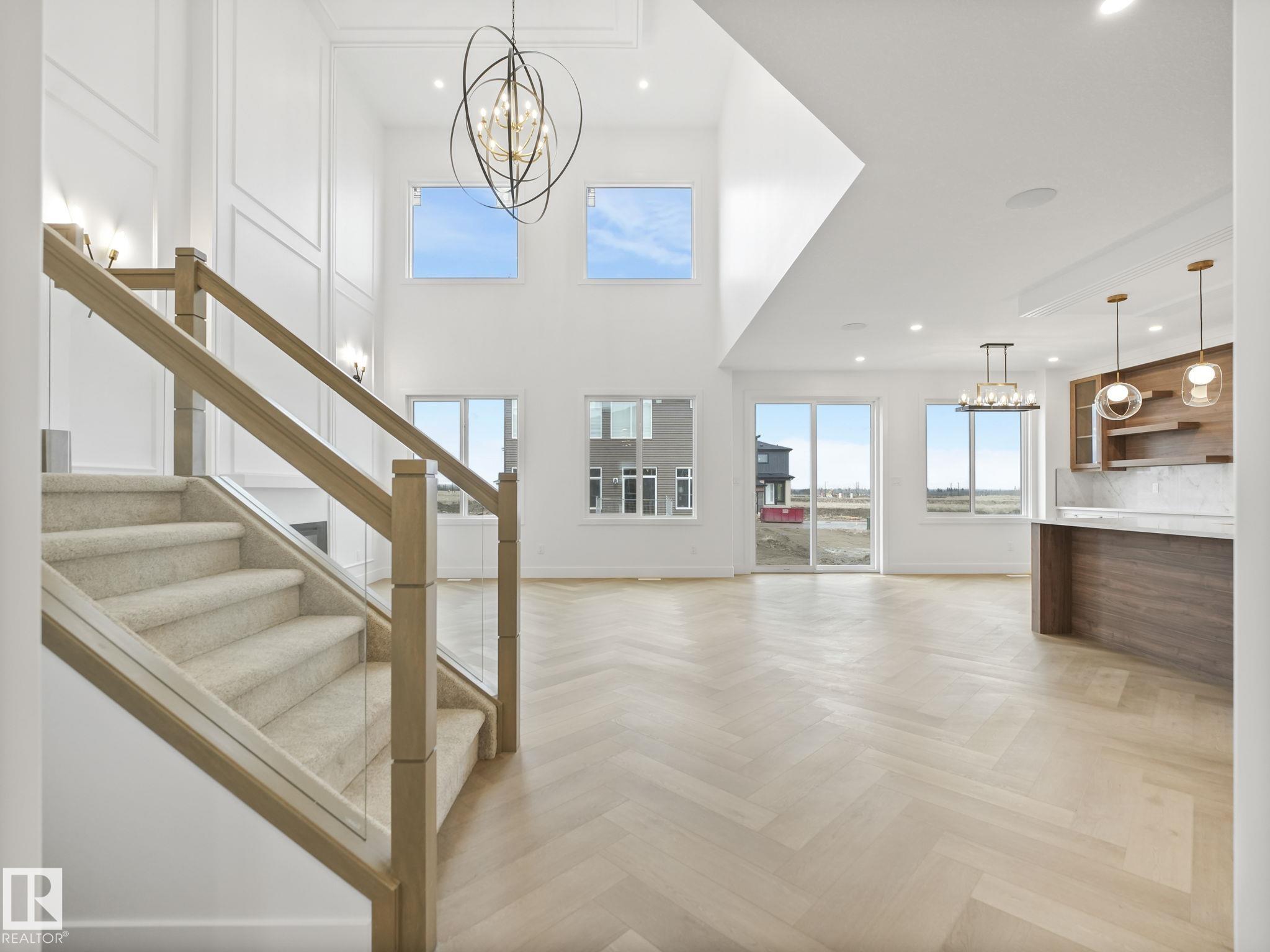 Welcome to this stunning 2,430 sq ft streetscape home in Cambrian, Sherwood Park’s fastest-growing community. Set across from a ravine and park, with walking trails just steps away, this home delivers the location and lifestyle buyers are after. Inside, the open-to-below design and abundance of windows fill the home with natural light, while glass railings and herringbone-pattern flooring bring a modern, upscale feel. The main floor is both functional and flexible, featuring a dedicated office or den, a full bath, and a convenient side entrance. The upgraded kitchen is beautifully finished with quartz countertops and elevated details throughout. Upstairs, a spacious bonus room adds even more room to live and grow, while the massive primary suite offers a true retreat with double sinks, an upgraded shower, a built-in tub, and a large walk-in closet with built-in shelving. With thoughtful upgrades, standout design, and an unbeatable setting, this home is one you won’t want to miss.