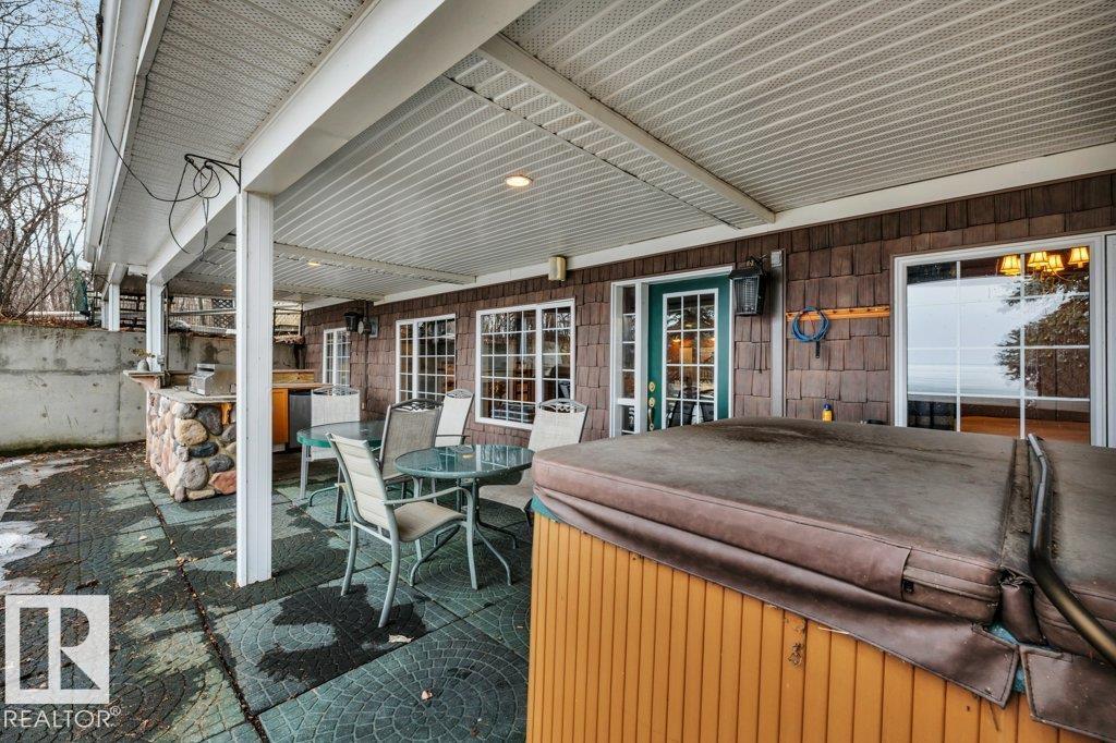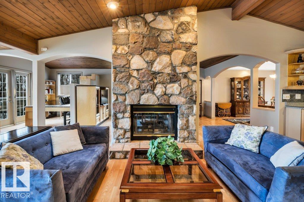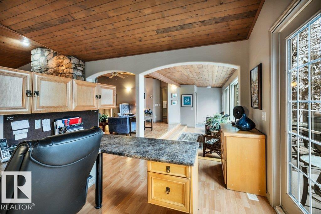 Discover the perfect blend of privacy, comfort, and lakeside living in this year-round walkout bungalow. Designed for both relaxation and connection, it features vaulted ceilings, warm wood accents, and a striking two-sided fireplace anchoring the open kitchen, dining, and living areas. Step onto the deck and take in serene lake views. The main floor offers a welcoming office near the entry, a spacious primary suite with walk-in closet and 5-pc ensuite, plus an additional bedroom for family or guests. Downstairs, enjoy a generous layout with a second living area, kitchen, workspace, private entrance, four bedrooms, and a 3-piece bath—ideal for extended family or visitors. Complete with an infrared sauna, patio with built-in BBQ, and direct lake access, this home delivers space, flexibility, and true waterfront privacy.