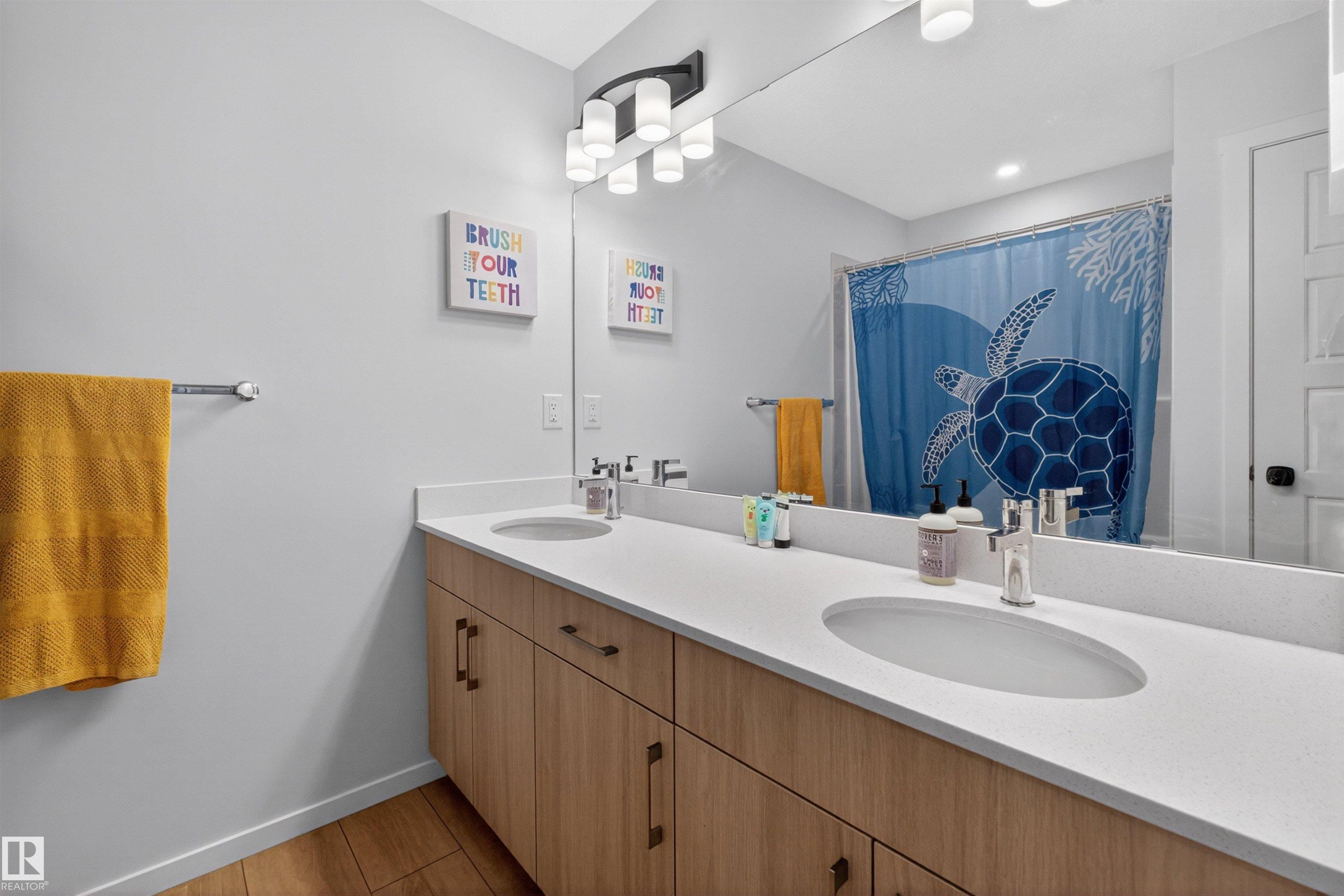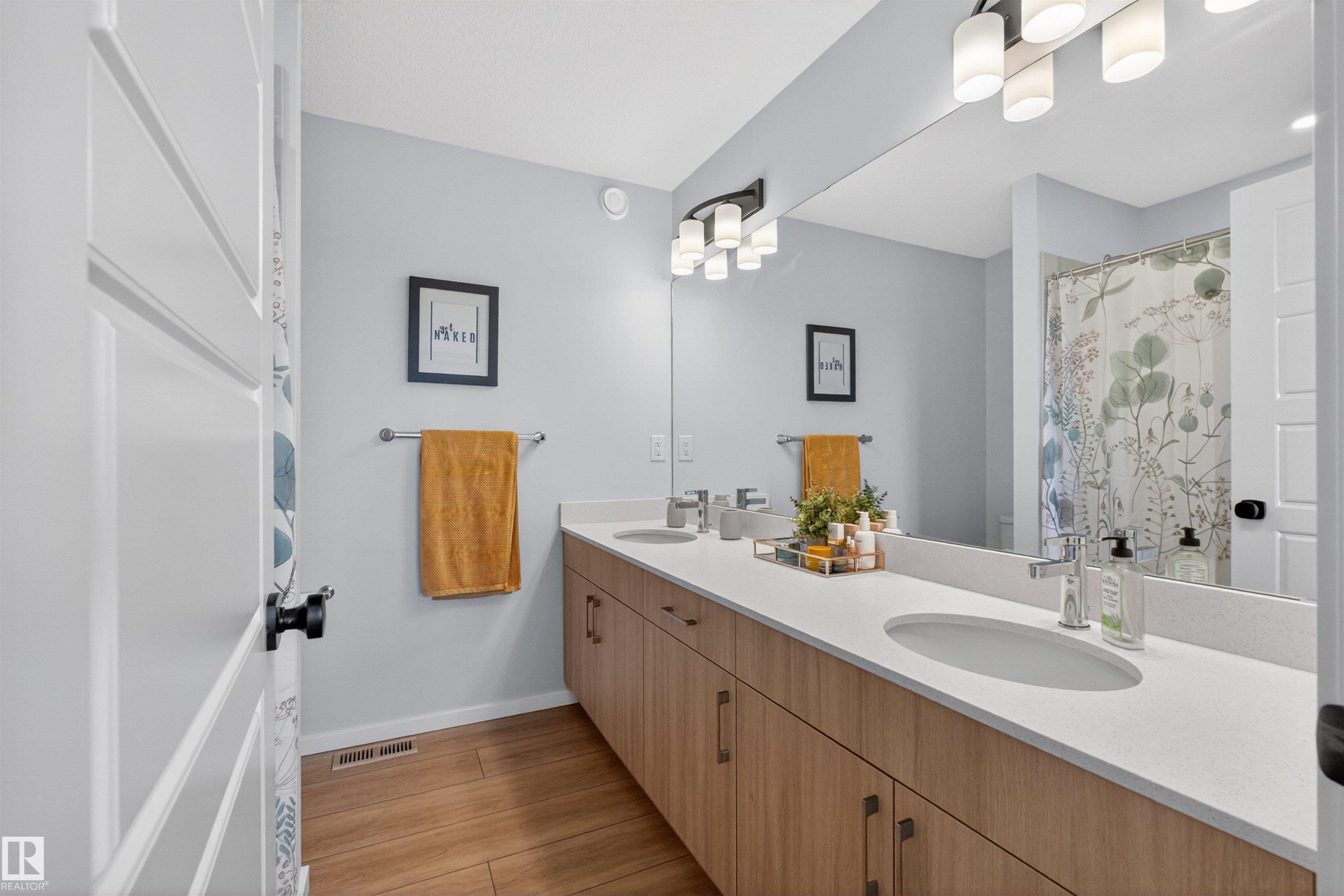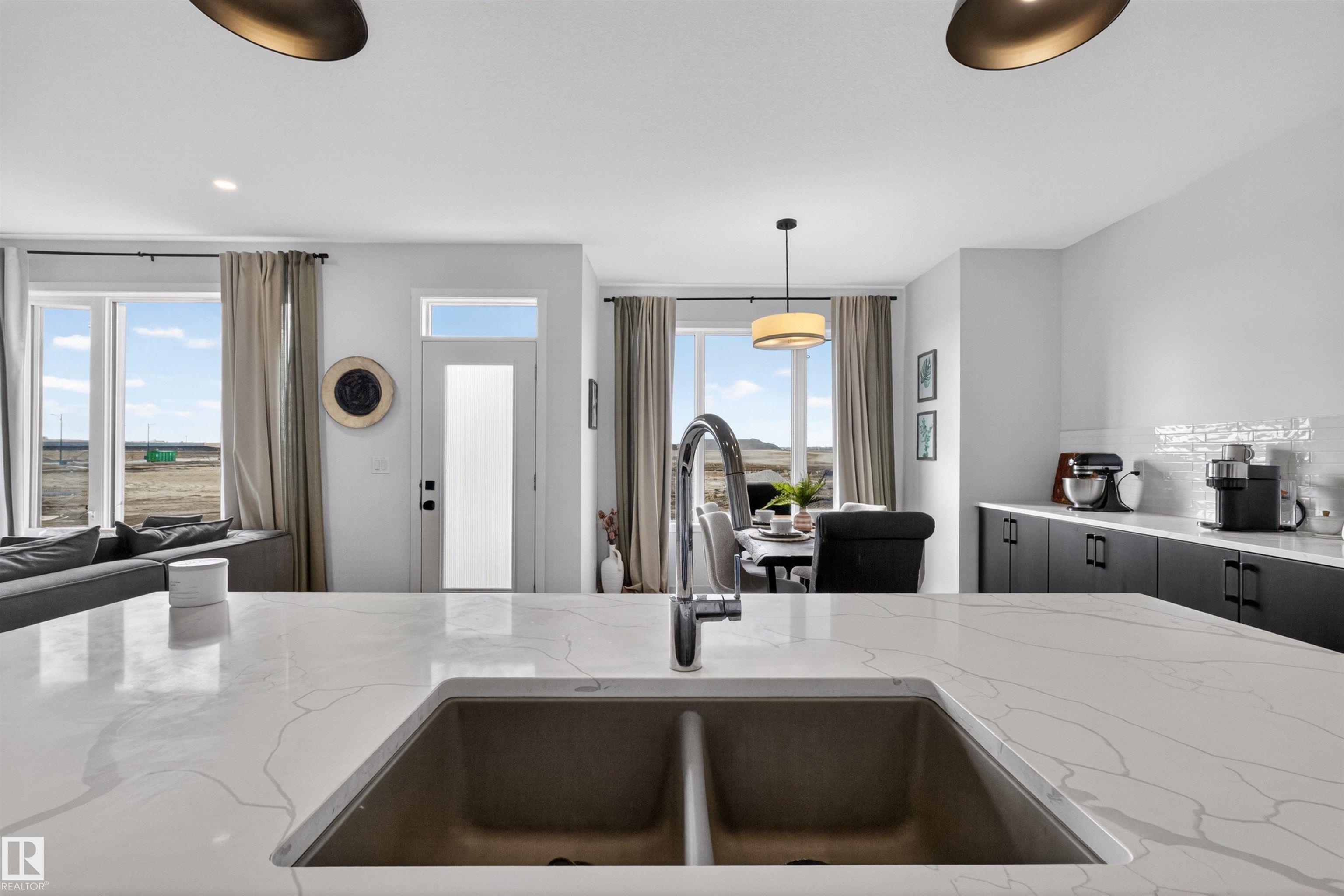 This 2-storey detached home offers over 2,300 sqft of total living space with a fully legal basement suite in the new community of Hearthstone in Sherwood Park! The main floor features a functional open layout with upgraded finishes including luxury vinyl plank flooring, quartz countertops, extended coffee bar, and textured subway tile. The space is completed with a spacious living and dining area, plus a convenient 2-piece bath beside the office/den. Upstairs you’ll find 4 bedrooms and a bonus room. The primary suite includes a 5-piece ensuite and walk-in closet, with a 5-piece main bath and upstairs laundry nearby. The legal basement suite has a separate entrance, full kitchen, living area, bedroom, and 3-piece bath, perfect for rental income or extended family living. Additional features include a double attached garage, solar panels, and quality finishes throughout. Built in 2025 and located close to schools, parks, shopping, and major routes, this is a great opportunity for families or investors.