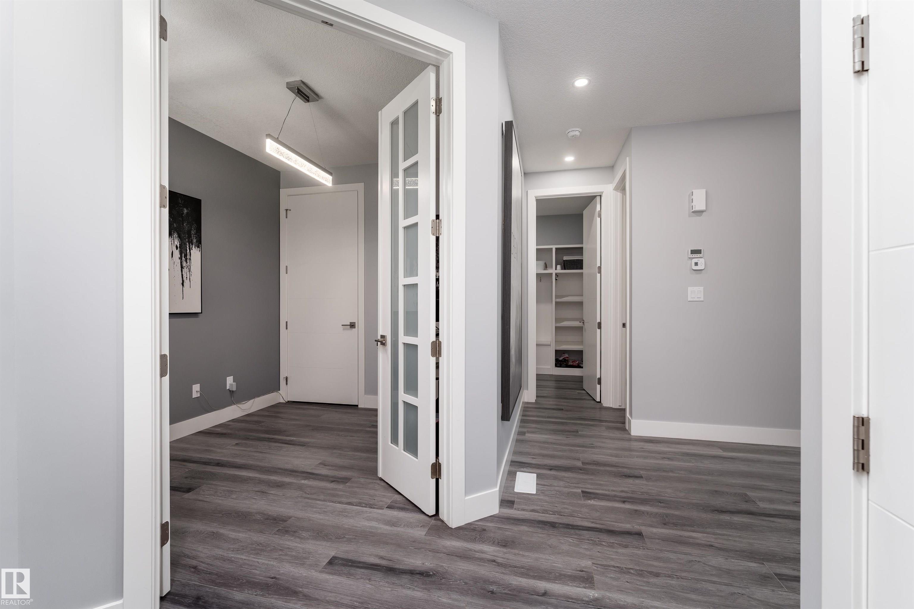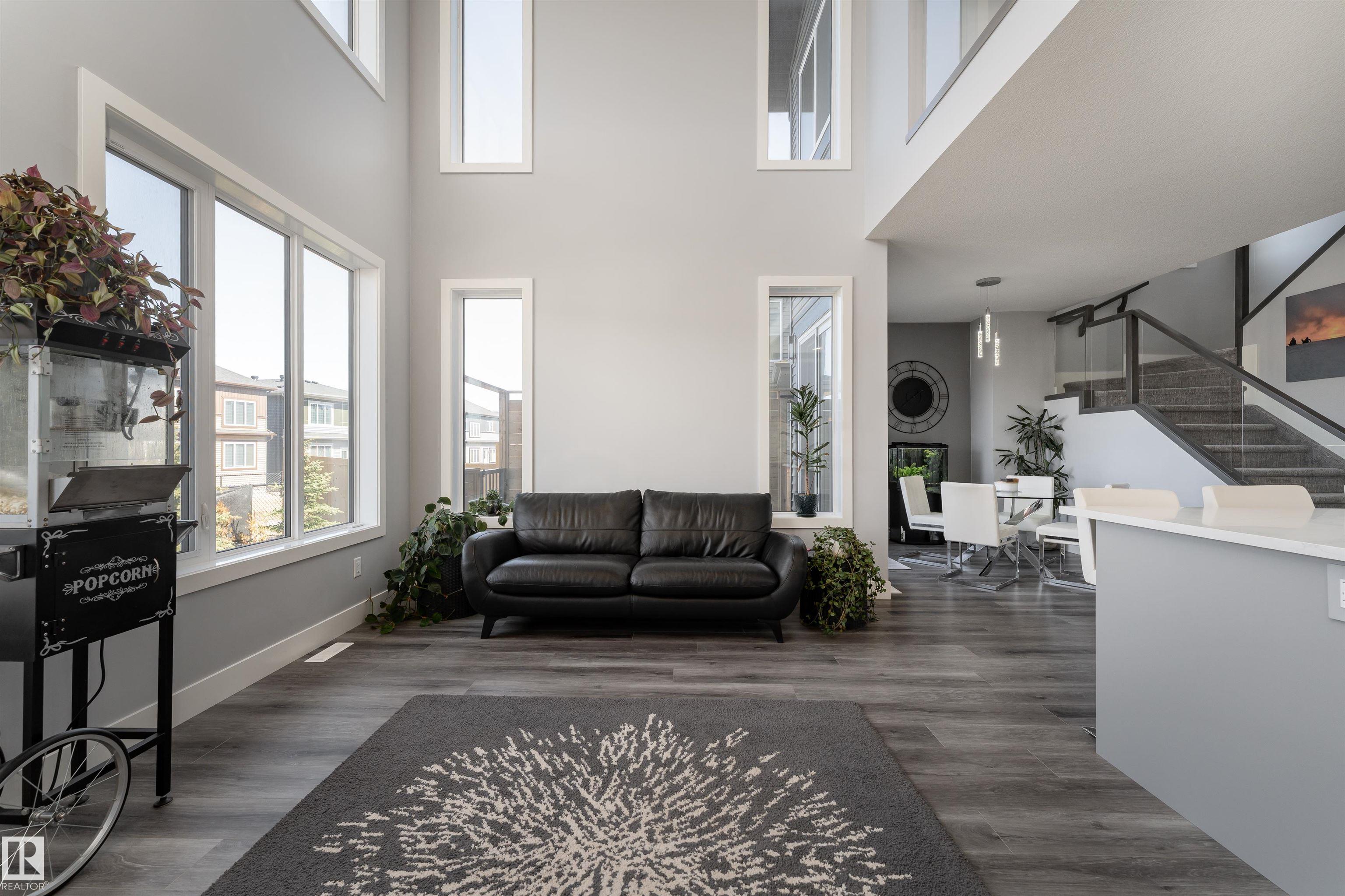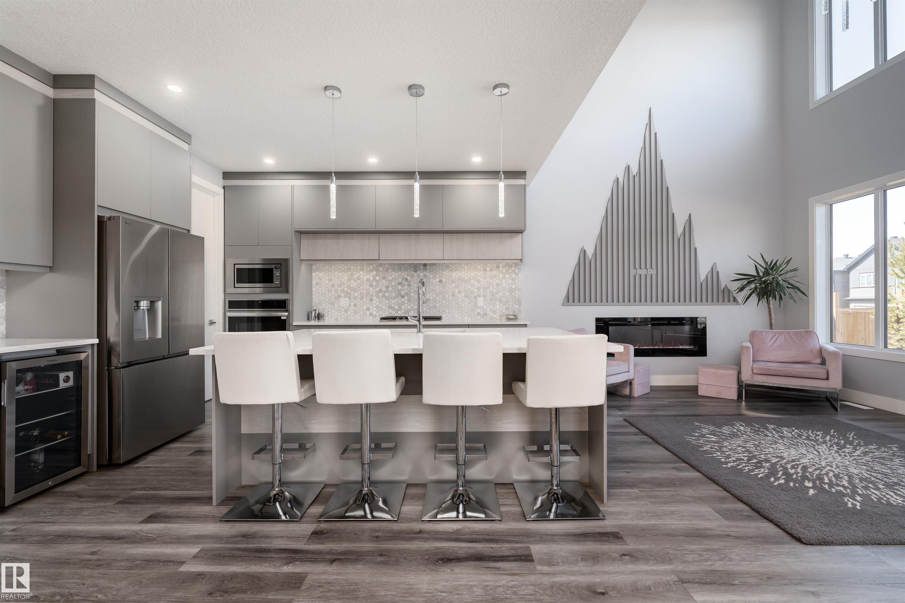 Exceptional customized home located in the up-and-coming community of Fenwyck, backing onto a walking trail. Move-in ready with a fully fenced and landscaped backyard. The main floor features a versatile bedroom currently used as an office, along with 9 ft ceilings and open-to-above design filled with natural light from large windows. The chef-inspired kitchen boasts a gas cooktop, built-in oven, walk-through pantry, and a massive quartz island with matching countertops and modern finishes. Upstairs, you’ll find three additional bedrooms including a spacious primary retreat with a spa-like ensuite. High-end finishes and hardware are showcased throughout, complemented by glass railings, triple-pane windows, closet organizers. Built with 2x6 exterior walls, this home offers improved insulation and long-term durability. A separate side entrance provides future suite potential. This is a gem of a home that shows 10/10, with a bright, airy feel throughout and outstanding craftsmanship evident in every detail.