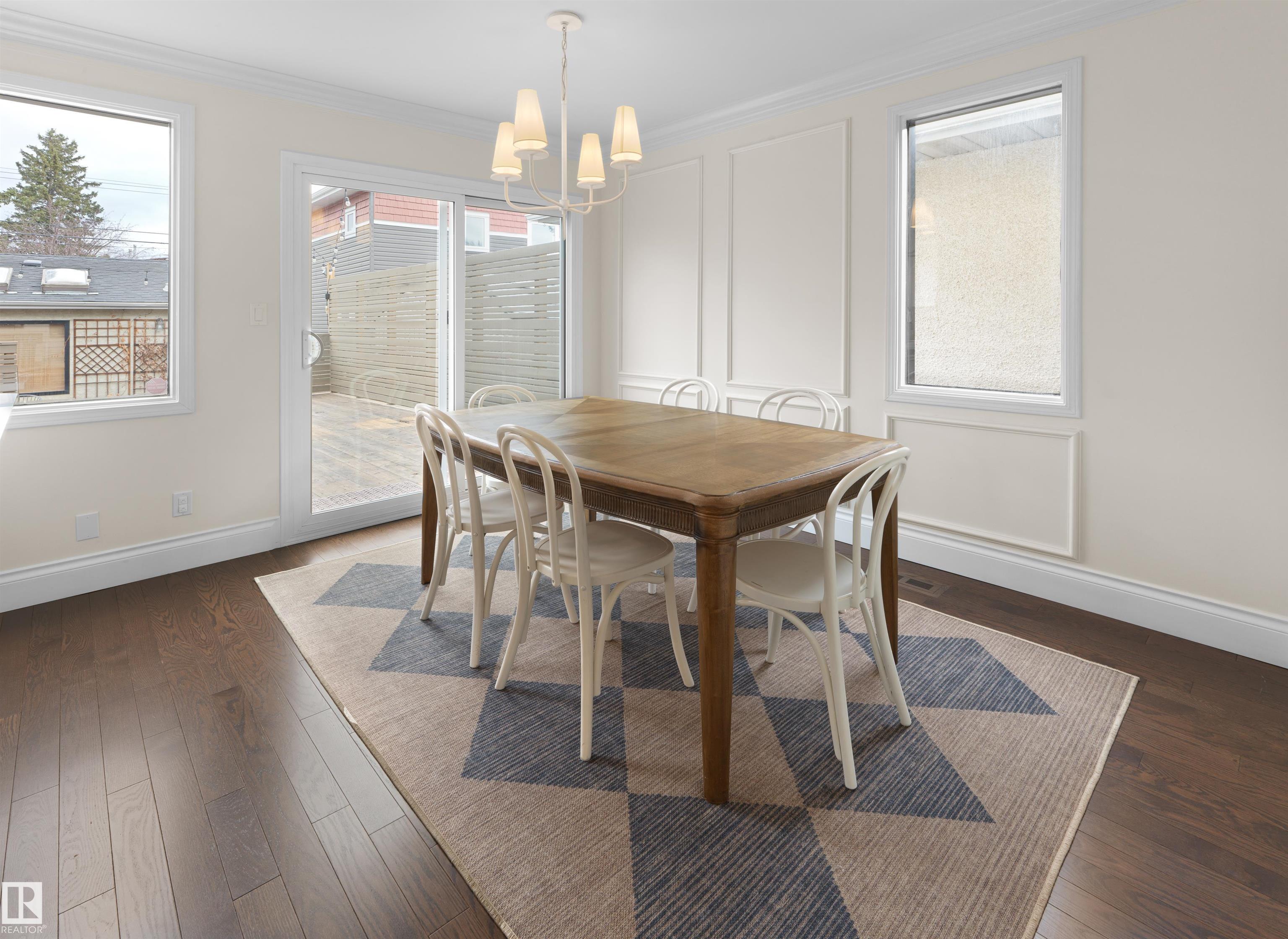 Steps to Mill Creek Ravine, this King Edward Park corner lot home is the one you've been waiting for. Hardwood throughout, soaring natural light & a stunning white quartz kitchen w/ Viking gas range open to the dining space & private deck for effortless indoor/outdoor living. Main floor also offers a large living room, 2pc bath & family room w/ fireplace. Upstairs: primary bedroom w/ his & hers closets, reading nook, two more generous bedrooms, laundry & renovated 4pc bath w/ heated floors. Basement features a bright rec room w/ full kitchen, large bedroom, full bathroom, den/storage & private side entrance. Outside: tiered backyard w/ beautiful deck, mature landscaping & oversized detached double garage. Mechanically loaded: two furnaces (2025), A/C (2024), hot water tank (2024), new exterior water & sanitary lines (2025), & aluminum cladding on all doors & windows (2025) . Homes like this don't come up often in King Edward Park. The owners have loved it. You will too.