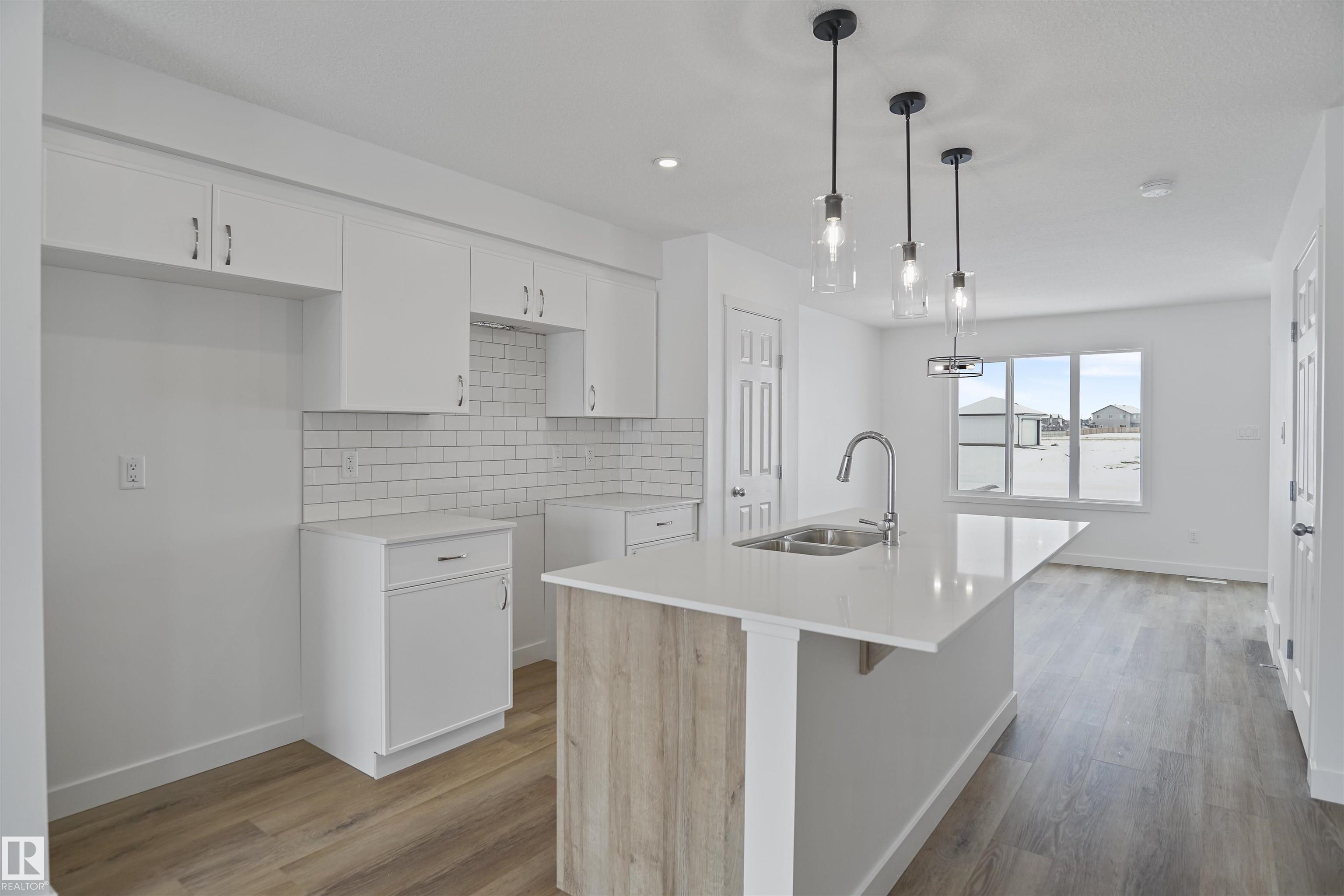 Welcome to the Dakota built by Pacesetter Homes and located in Forest Ridge community. This home has a well design and higher-end finishes such as luxury vinyl plank flooring flows throughout the great room, kitchen, and breakfast nook, creating a warm and inviting atmosphere for family living and entertaining. The kitchen is a chef's dream, featuring elegant two-toned cabinets with an upgraded door profile, quartz countertops, a stylish tile backsplash, and a large island with a flush eating bar. An under-mount stainless steel sink adds both functionality and aesthetic appeal. A 2 -piece powder room is located off the breakfast nook near the rear entry. Upstairs, the primary retreat offers a spacious walk-in closet and a luxurious 4-piece ensuite with double sinks, providing a private oasis. The second level also features two additional bedrooms and a main 4-piece bathroom, perfect for families. ***under construction photos and colors may vary, To be complete by May 2026 **