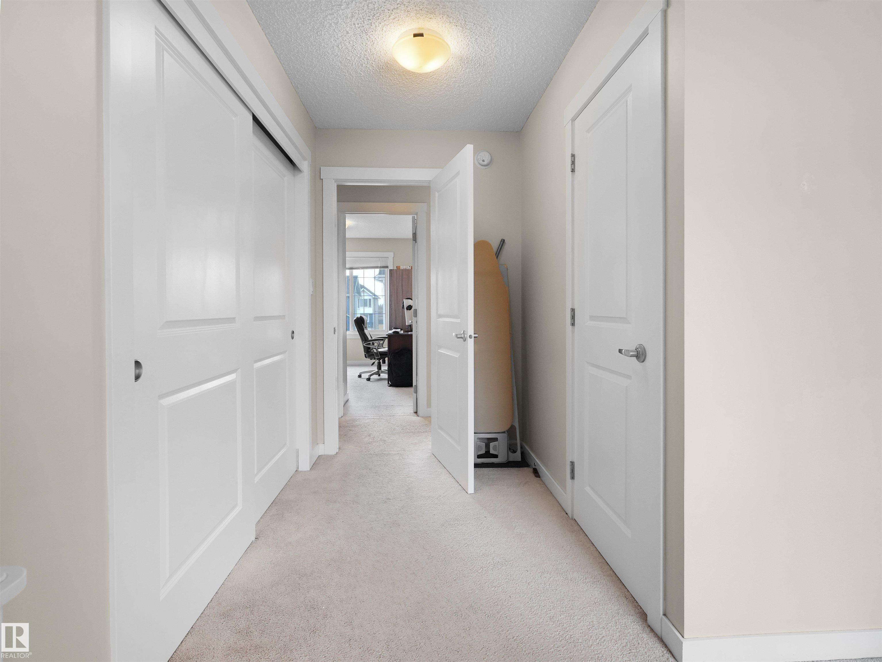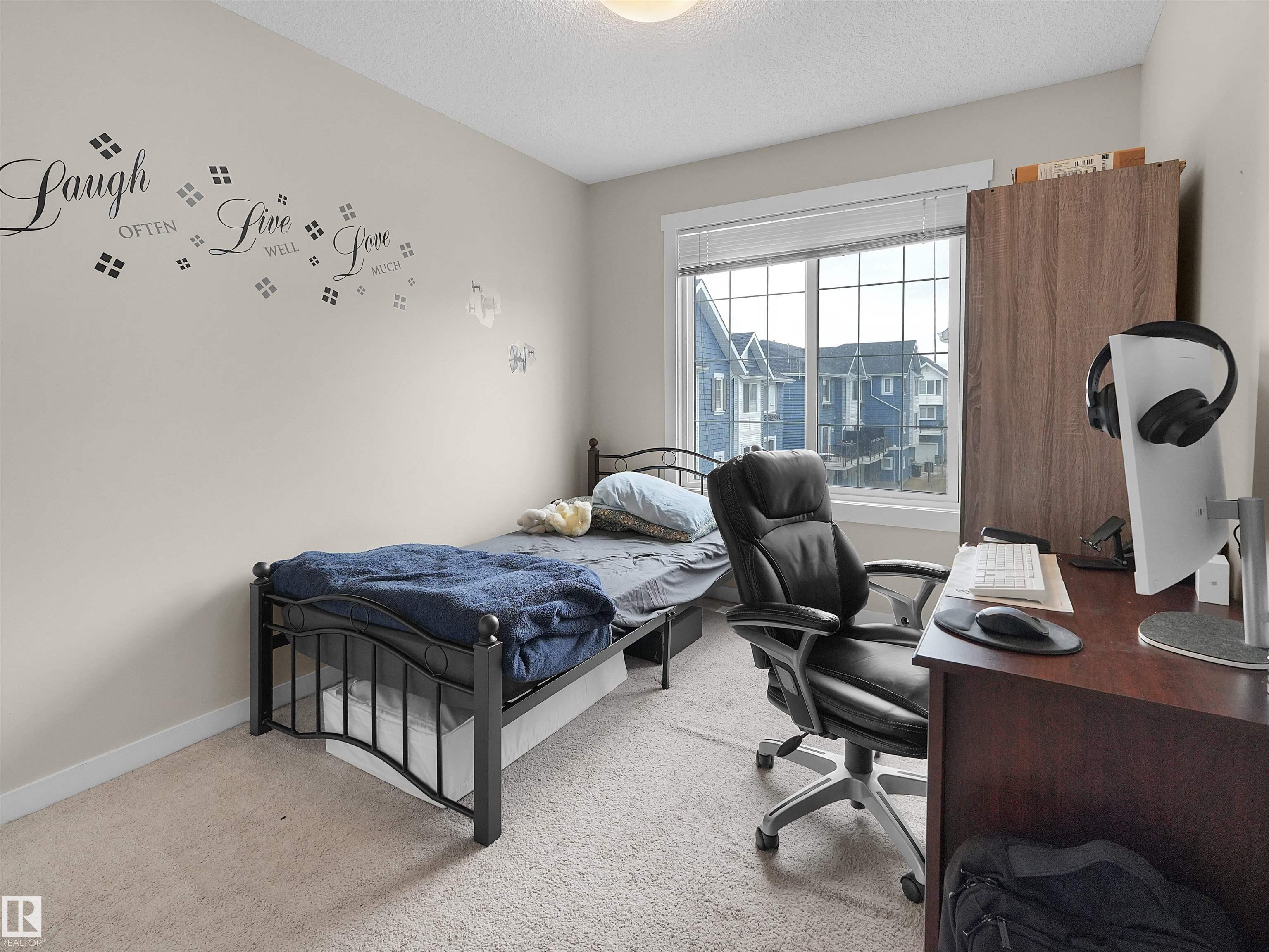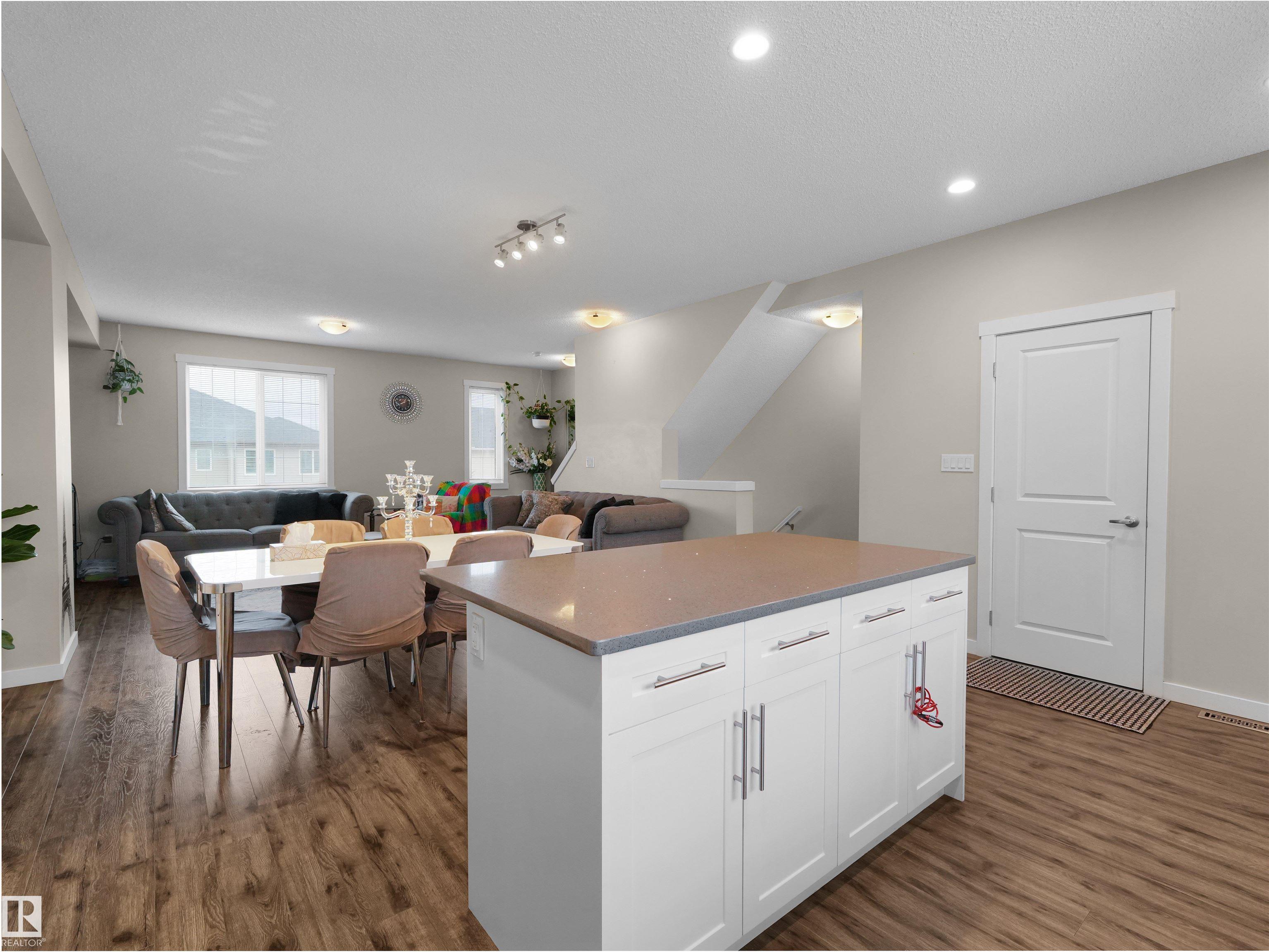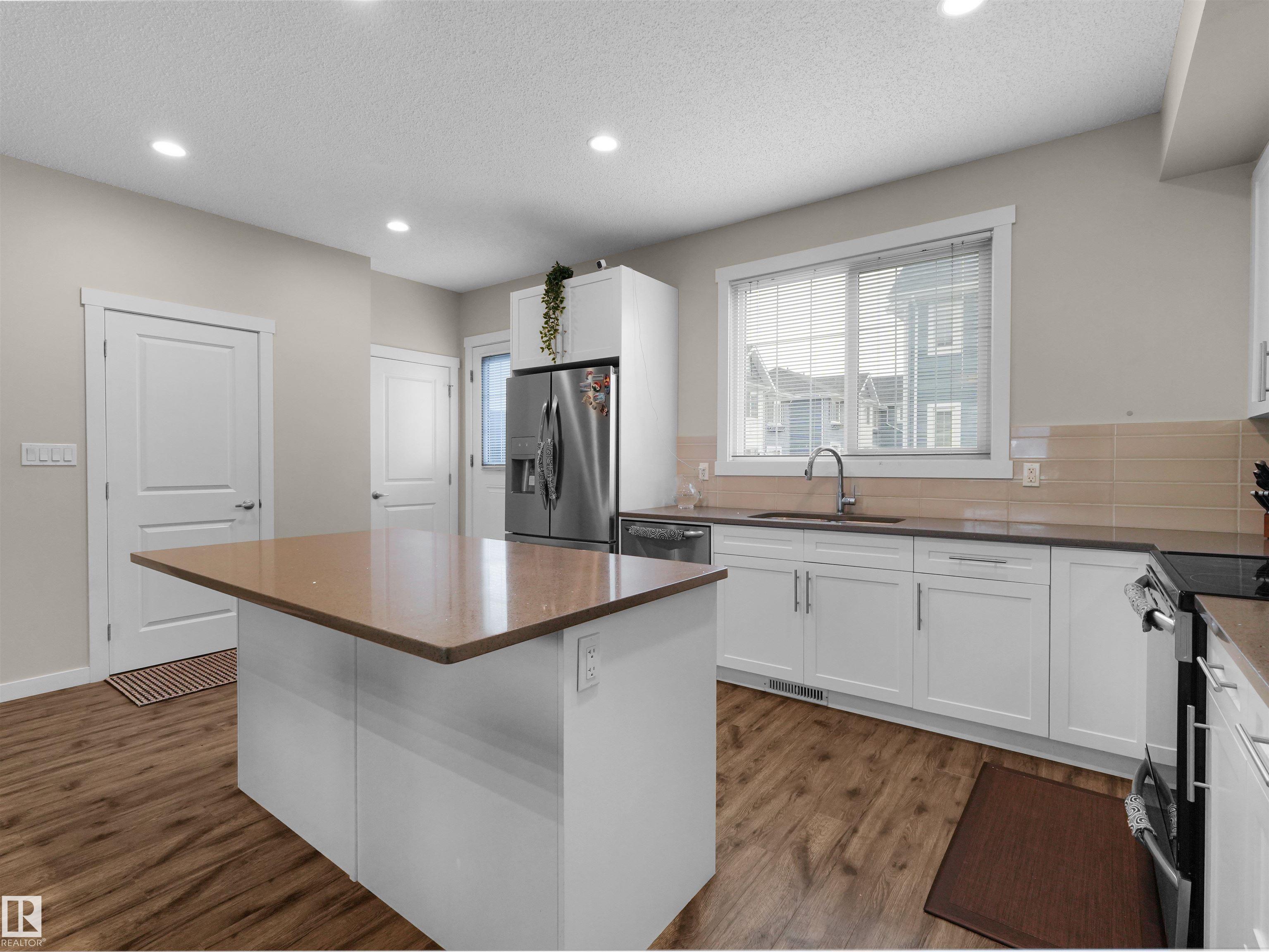 In the beautiful community of Allard, this 3-storey townhouse is a former showhome featuring a modern & open-concept with premium upgrades throughout. Built in 2018, this luxurious home offers 1693 sqft of living space. The main level includes attached double garage & a office space. The second level has 9-foot ceilings, bright & spacious living area, gorgeous kitchen complete with S/S appliances, quartz countertops, tiled backsplash, soft-close cabinetry & vinyl plank flooring. Large windows fill the home with natural light and the Balcony deck is perfect for summer BBQ. Upstairs you will find a spacious primary suite with a private ensuite bathroom, along with 2 additional bedrooms and a full bathroom. the laundry is also located on the upper level for convinience. This maintained complex is within walking distance to all amenities, including K–9 & high school, and future access to the South Hospital and LRT expansion. With low condo fees, this home is ideal for first-time buyers with low monthly cost.