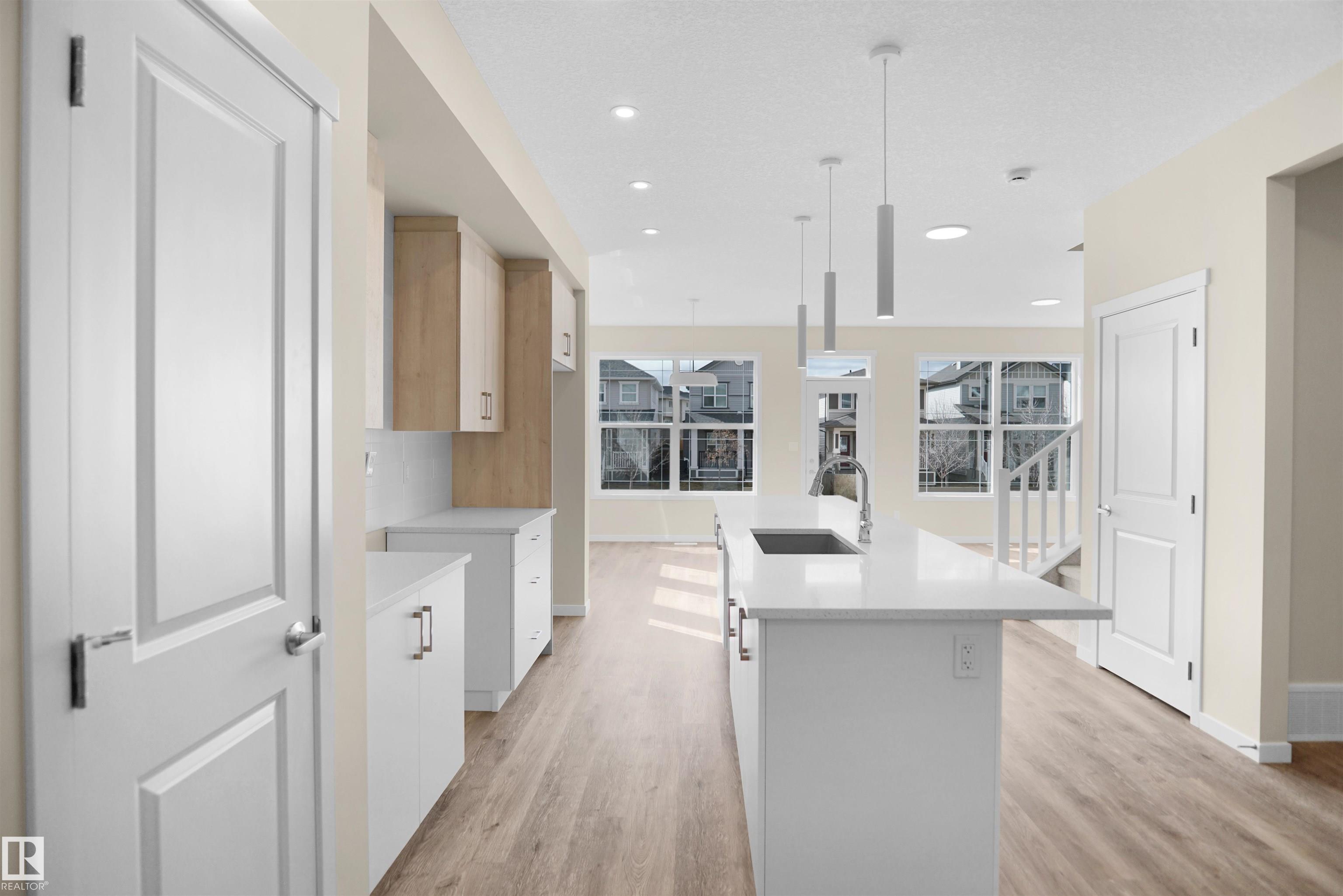Welcome to this stunning "Tilsa" model by Hopewell, thoughtfully designed with modern upgrades and exceptional functionality throughout. Situated on a desirable corner lot, this home is filled with natural light thanks to additional side windows and features a sunny south-facing backyard perfect for relaxing or entertaining. The home offers a convenient side entry and a 9’ foundation wall in the basement, creating a bright and spacious lower level with excellent future development potential. The painted basement floor, wet bar sink rough-in, and backflow prevention valve for a future 3-piece bathroom add even more flexibility. Step into the main floor and experience elevated design, highlighted by a stylish two-tone kitchen with an upgraded layout, complete with a sleek chimney hood fan and five LED pot lights for a clean, modern ambiance. The lifestyle room is anchored by a beautiful Cascade electric fireplace with integrated media wiring, making it the perfect space to unwind.