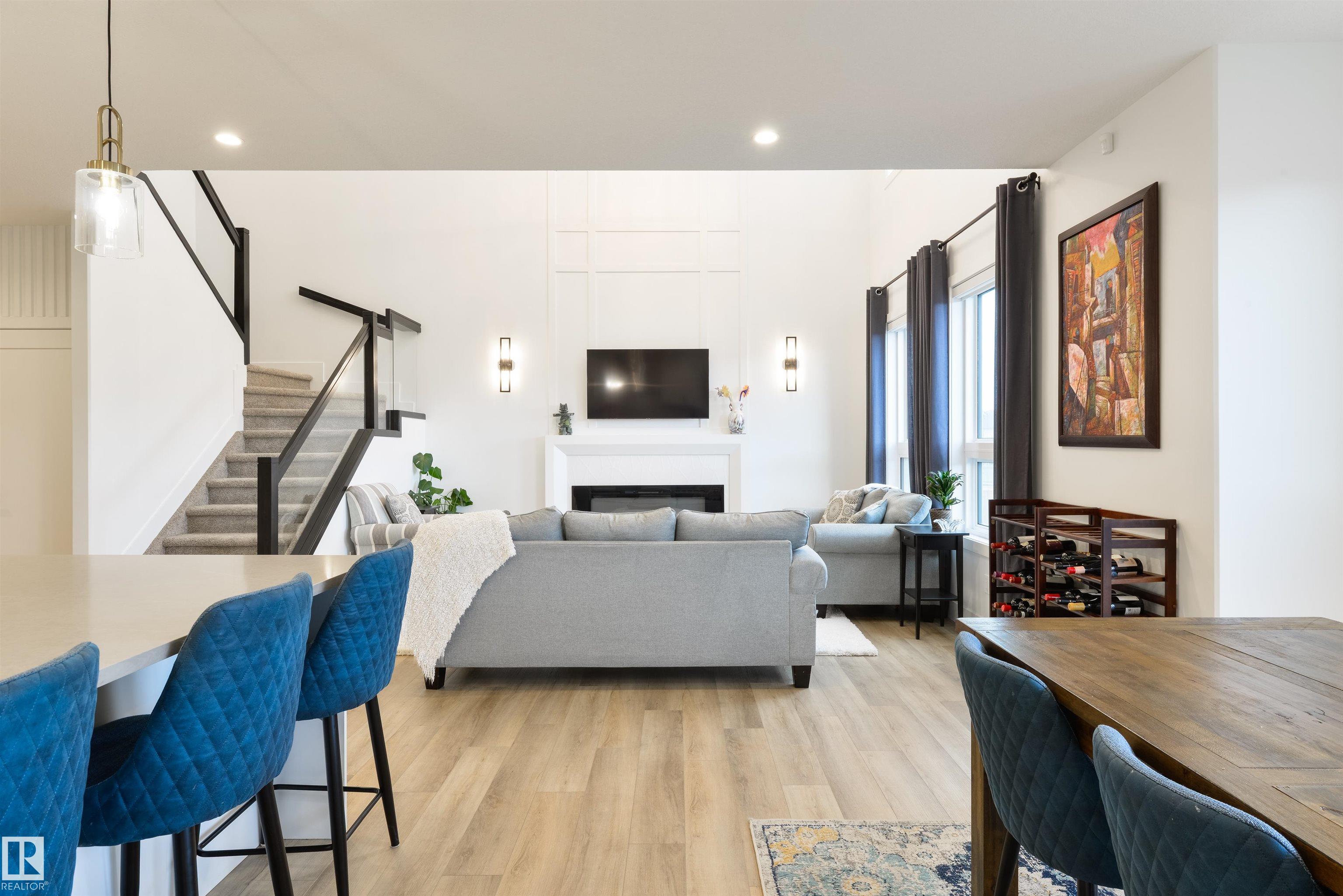 Morning coffee on the deck. Evenings in the hot tub. Weekends that don't involve a single renovation project. Step inside to 9' ceilings, LVP flooring, & a dramatic great room w/ electric fireplace & soaring open-to-below design. At the heart of the home, the Chef’s kitchen feat. quartz counters, full-height cabinetry, oversized island, & a walk-through pantry leading to the mudroom & 2pc bath. A private den at the back of the home offers a quiet workspace away from the action. Upstairs, a spacious bonus room w/ tray ceilings & recessed lighting sits alongside three bedrooms & a 4pc bath, while the oversized primary retreat delivers a true escape w/ its tiled glass shower, freestanding tub, dual sinks, & private access to the laundry. The finished basement adds a 4th bedroom, 3pc bath, large rec room, wet bar, & 9' ceilings. Add a 2-tiered deck, hot tub, central A/C, triple attached garage, & convenient side entrance - all steps from trails & playgrounds - and the only thing left to do here is move in!