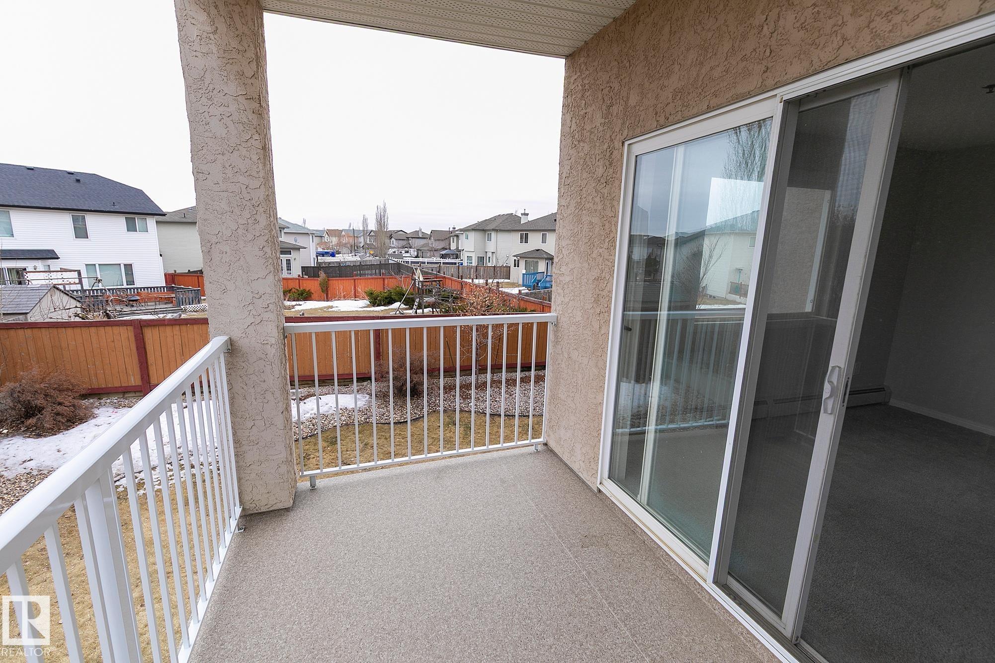 END UNIT with southeast exposure giving you plenty of natural light! This corner 2 Bedroom, 2 Bathroom condo is a very roomy 861 SqFt in size & is in immaculate condition. Just move in with no work required! Features a covered parking stall which not all owners in this building have. The view is VERY private from the deck - surrounded by mature trees, away from the parking lot. New Paint throughout. The kitchen is very functional with plenty of cabinets & a large island. A dining area compliments the kitchen nicely. The living room has massive windows & is situated away from the bedrooms. The large master bedroom features a full 4 piece ensuite & a walk-through closet. The insuite laundry & plenty of closets/storage are the finishing touches to this great property. Close to parks, schools, public transportation, shopping & the Meadows Community Recreation Centre & The Meadows Library!