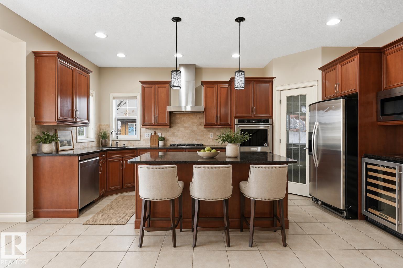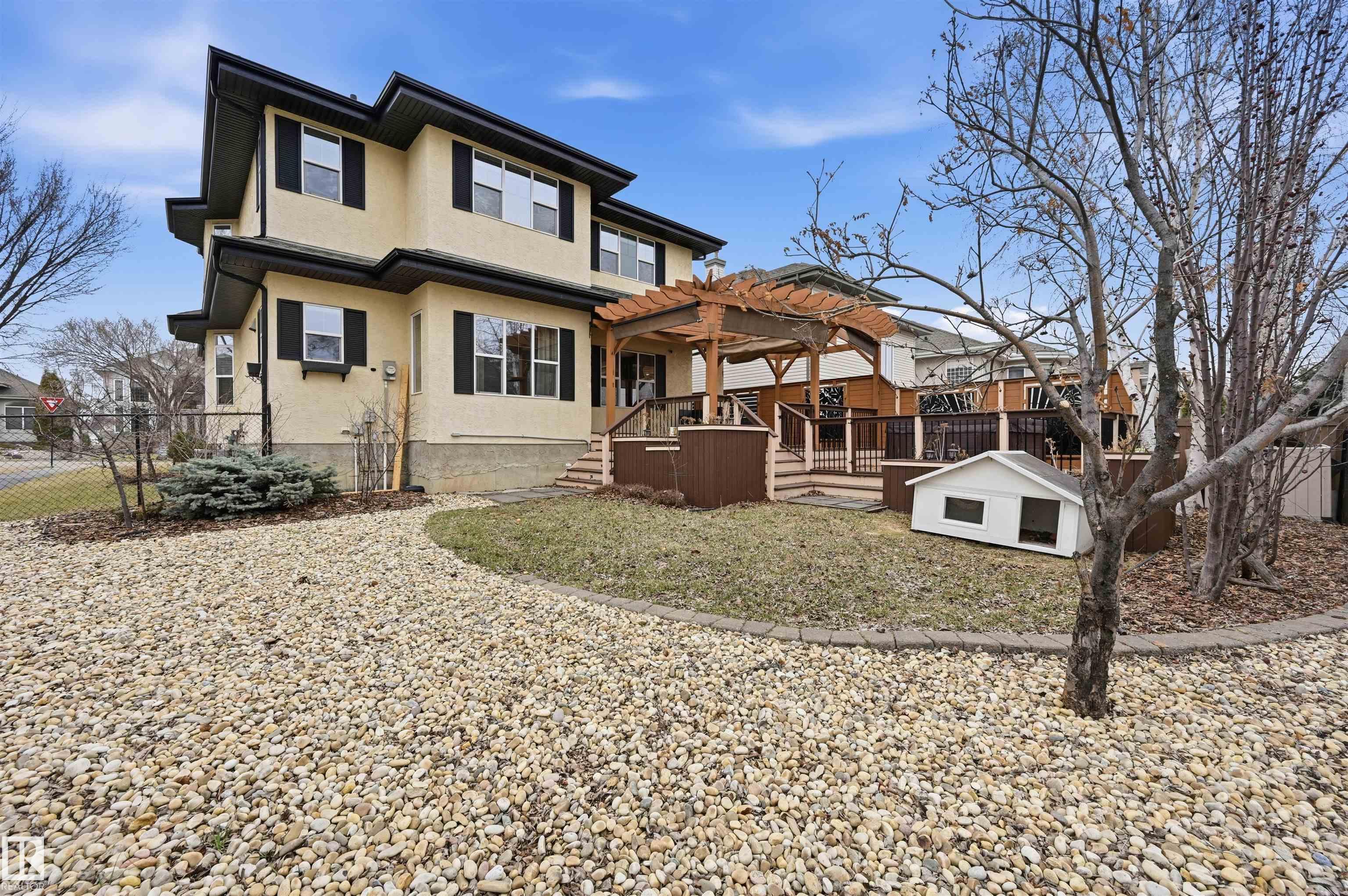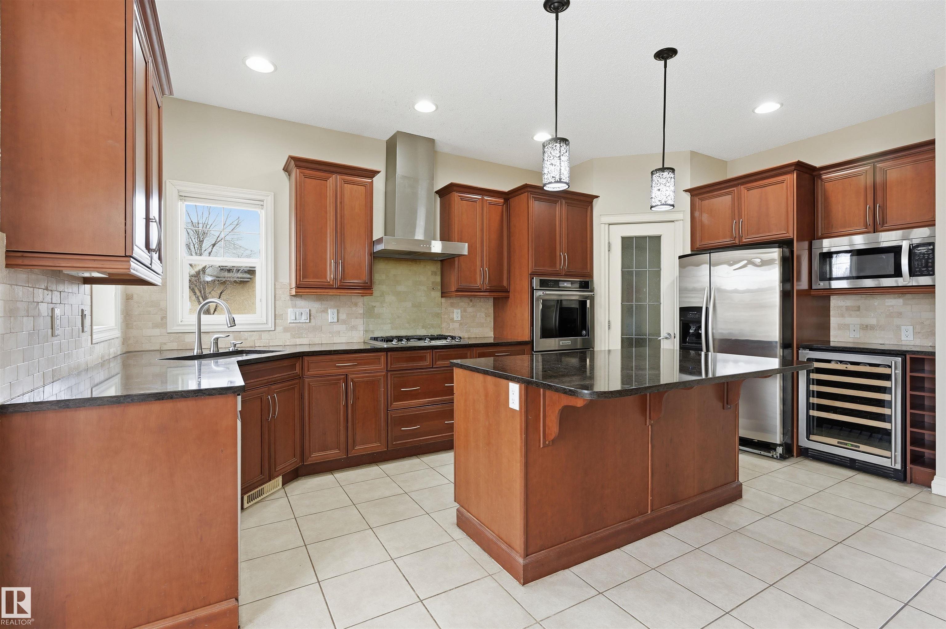 Desirable SW Hodgson corner lot. Nestled across from Hodgson Wetland Park & just steps to Whitemud Creek Ravine. PROFESSIONALLY PAINTED April 2026. Grand vaulted foyer w/ plenty of natural light & large office (or bdrm) upon entrance. Kitchen features stainless steel appliances (Kitchen Aid wall oven/Dacor stove) & walk-in pantry. Cozy living rm w/ gas fireplace. Main level complete w/ 3PC BTHRM & spacious mudrm w/ laundry. Upstairs boasts a huge bonus room, 2 spare bdrms & spacious primary retreat w/ ensuite & walk-in closet. Basement finished w/ 4th bdrm, full bthrm, rec space & flex area. This corner lot offers partial park views from the yard + has plenty of deck space to enjoy w/ pergola & hot tub. Cozy front porch & oversized garage w/ SIDE ENTRANCE. Features: 9' ceiling, hot water on demand & AC. Great school designations & proximity to Hodgson Park & ravine walking trails. Terwillegar Rec Centre, transit & easy access to major arteries. Plus shopping & dining at nearby neighborhood squares!